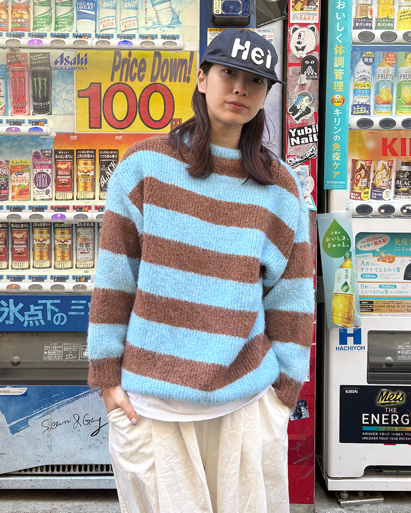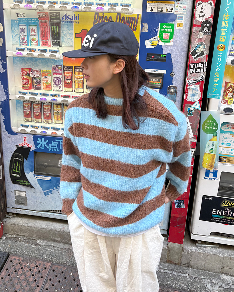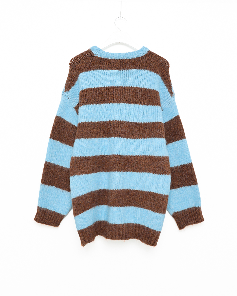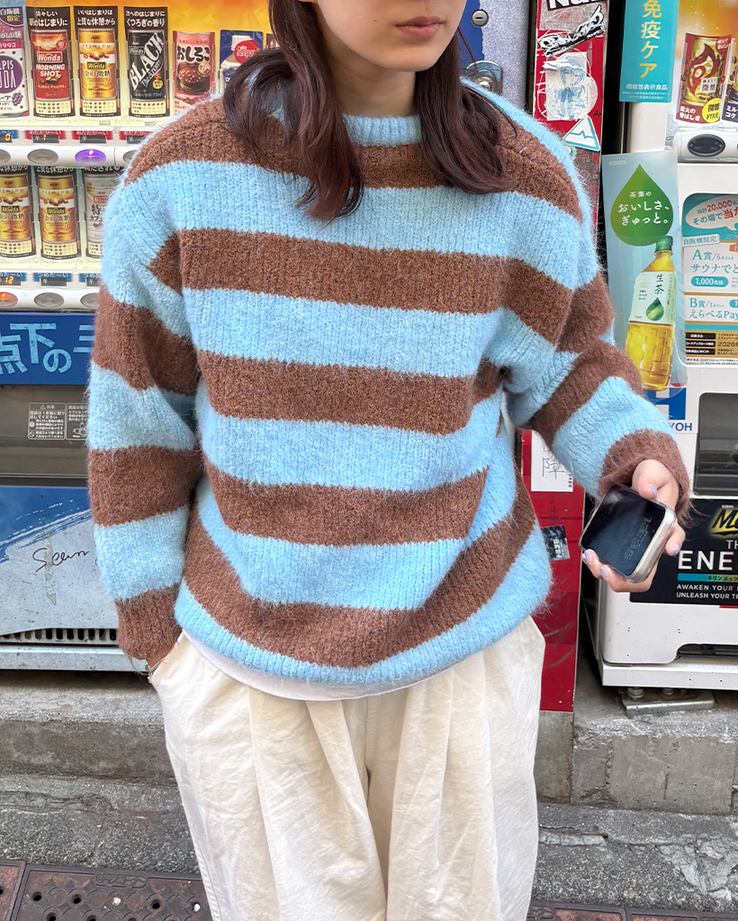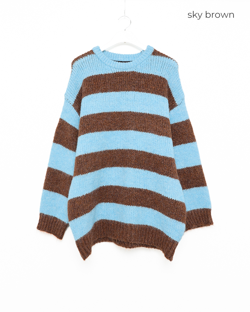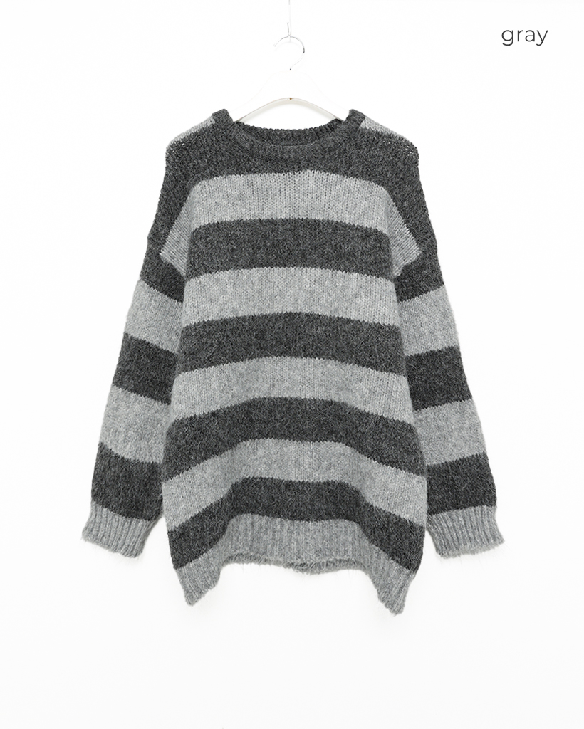 オーバーサイズボーダーラウンドネックニット