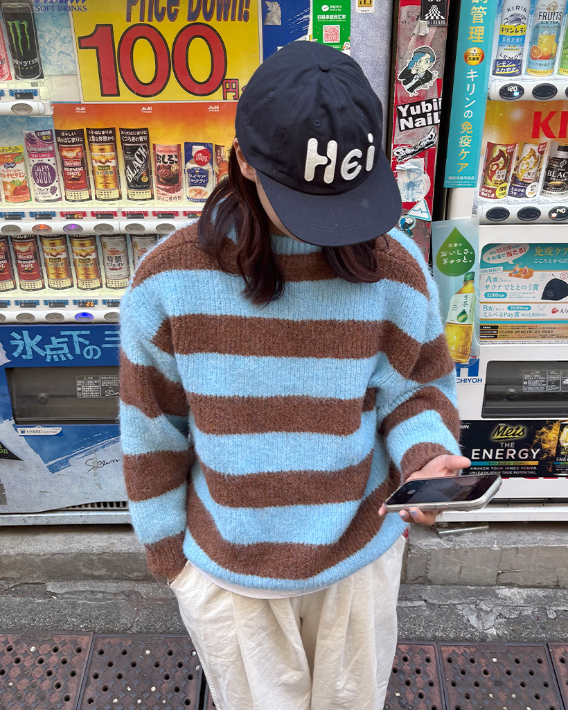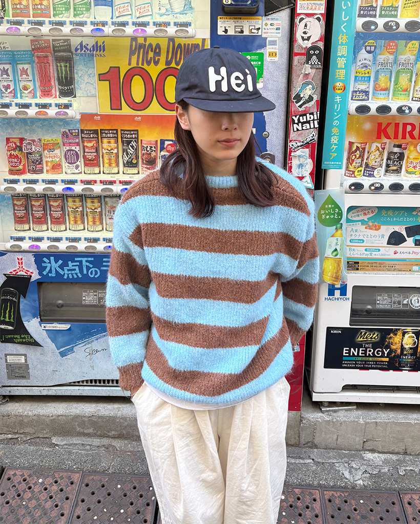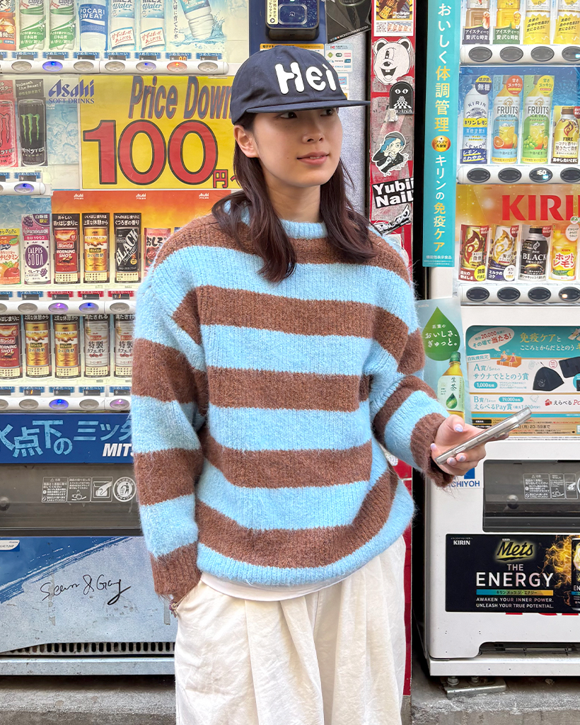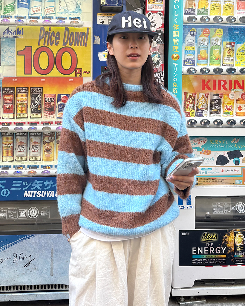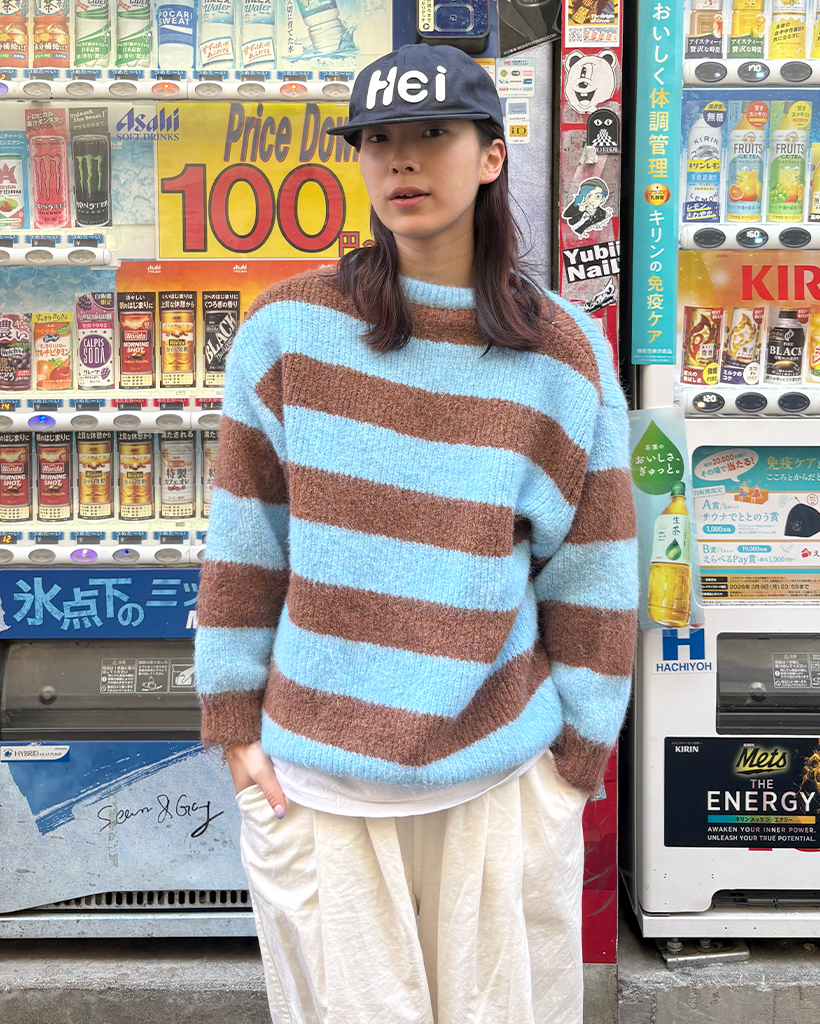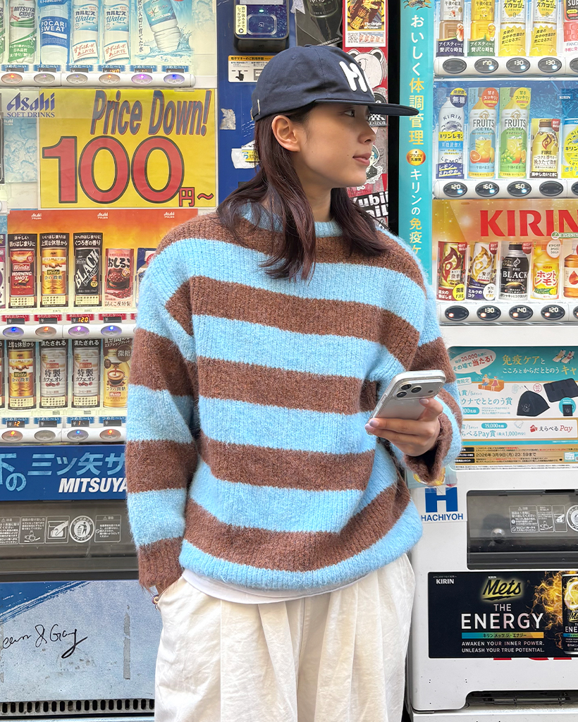 オーバーサイズボーダーラウンドネックニット