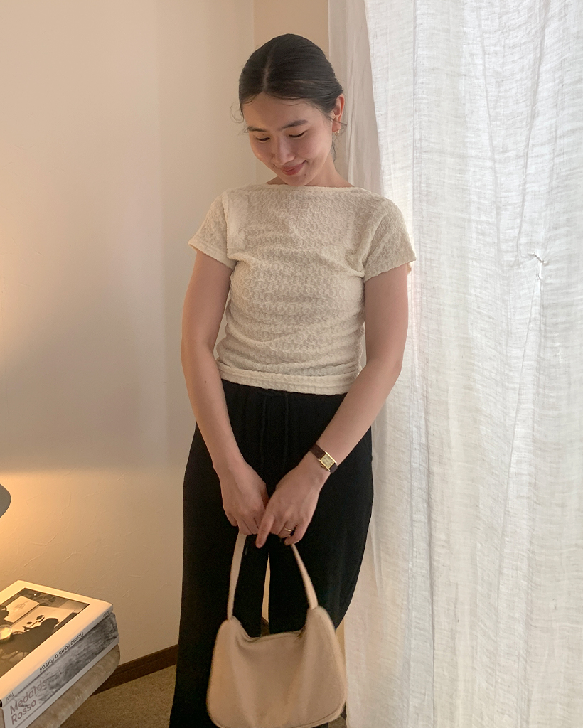 #サヤカ#158cm#ウェーブ#シンプル#フェミニン#ヴィンテージ