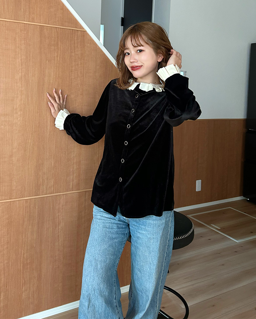 フリルディテールレイヤードブラウス