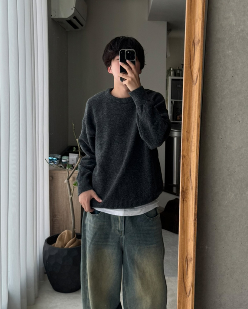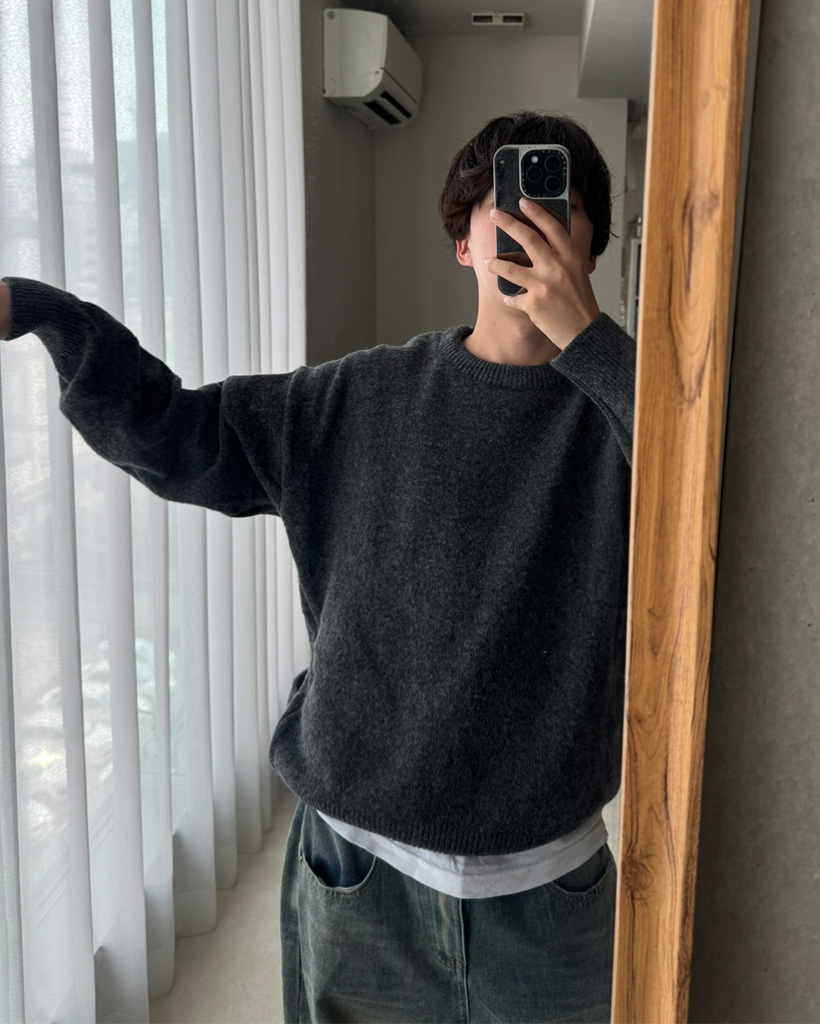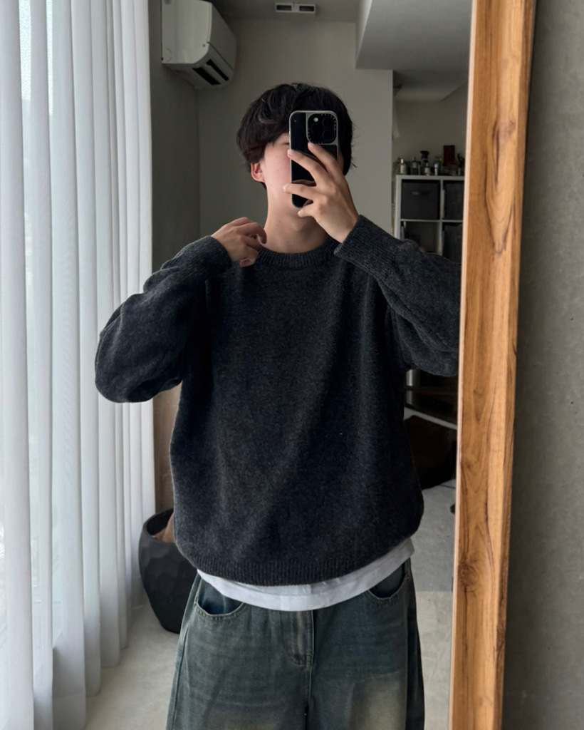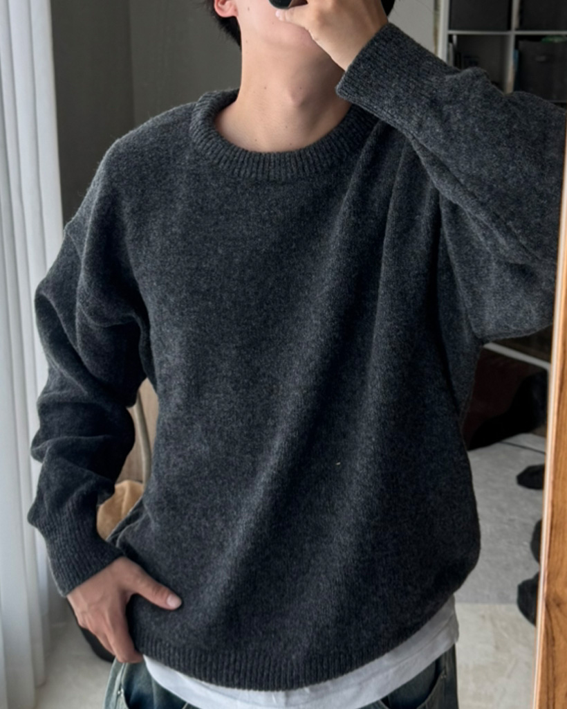 (ユニセックス)オーバーフィットラウンドニット
