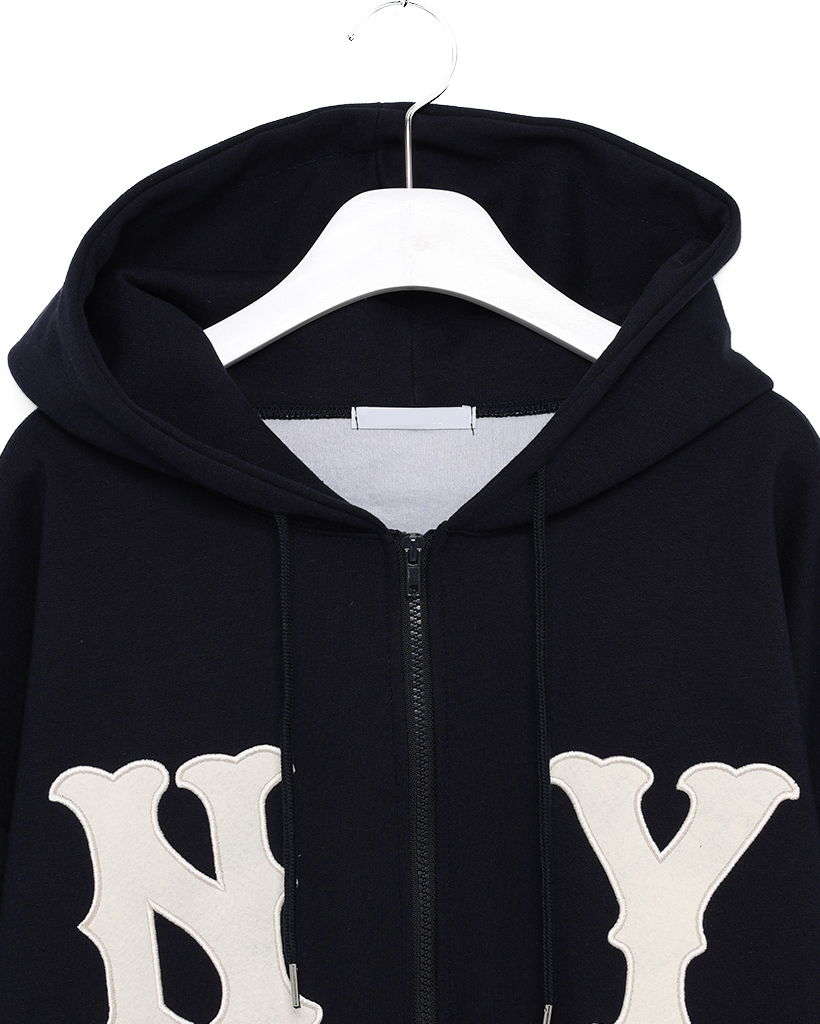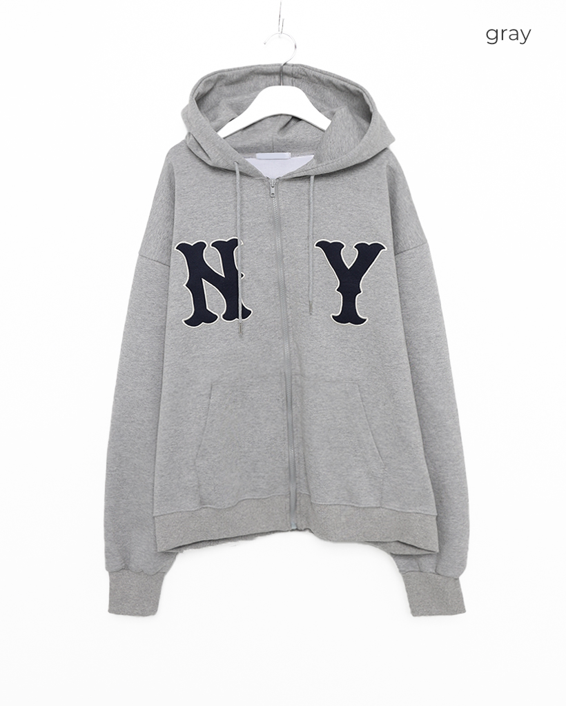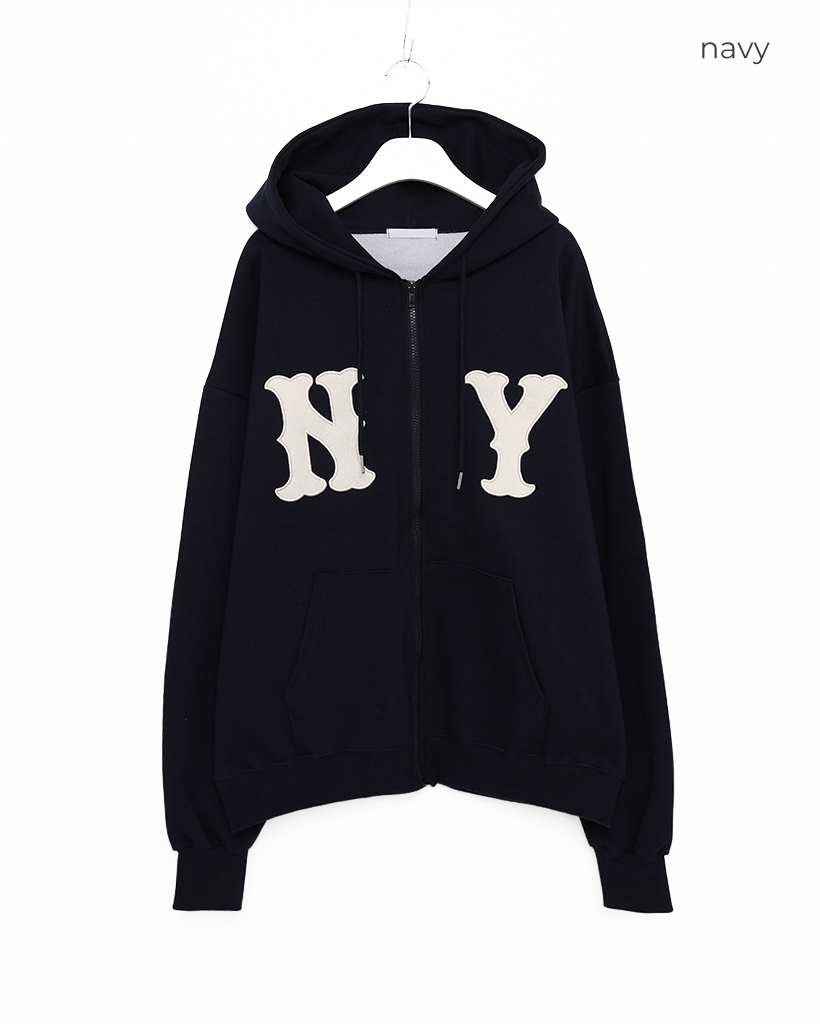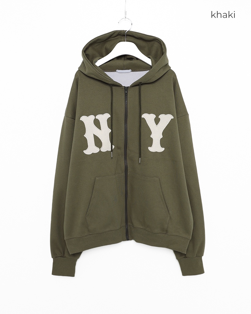 (ユニセックス) NYユニークビッグパッチジップアップフードパーカー