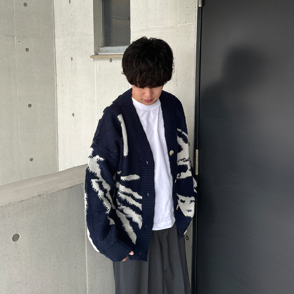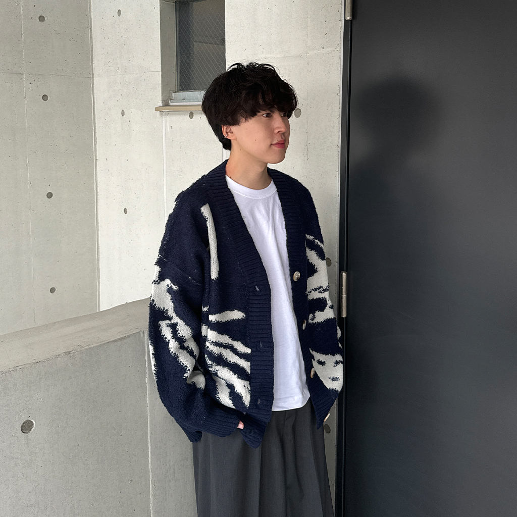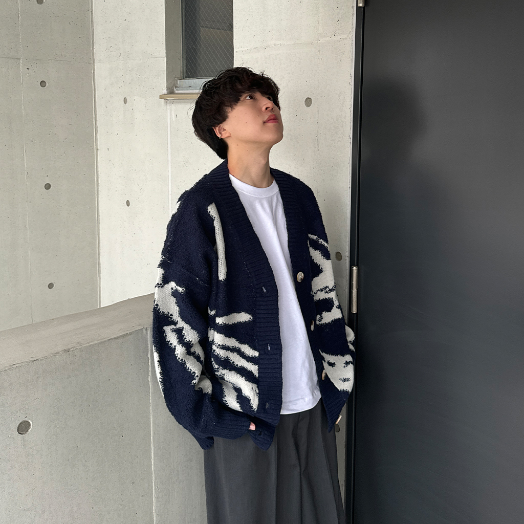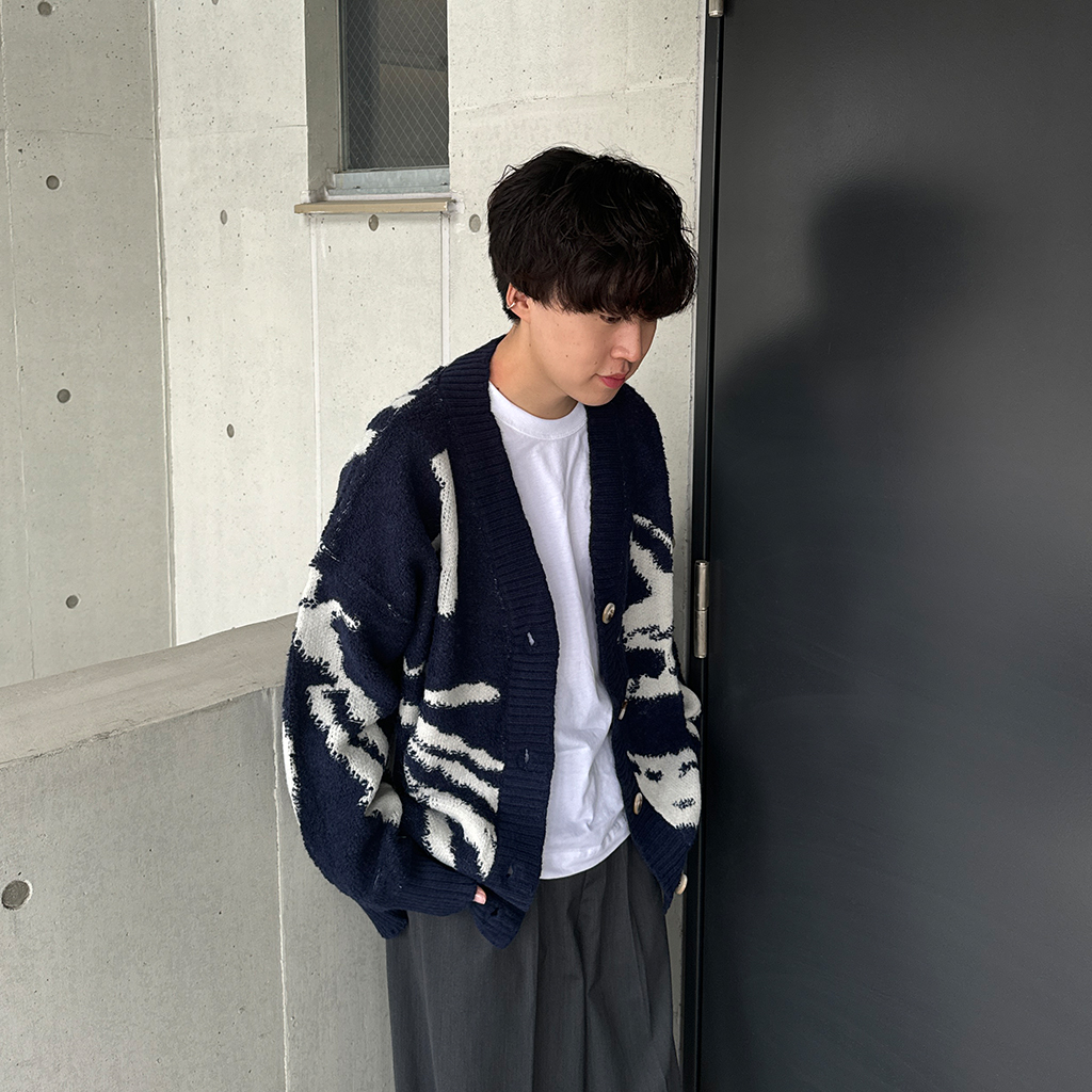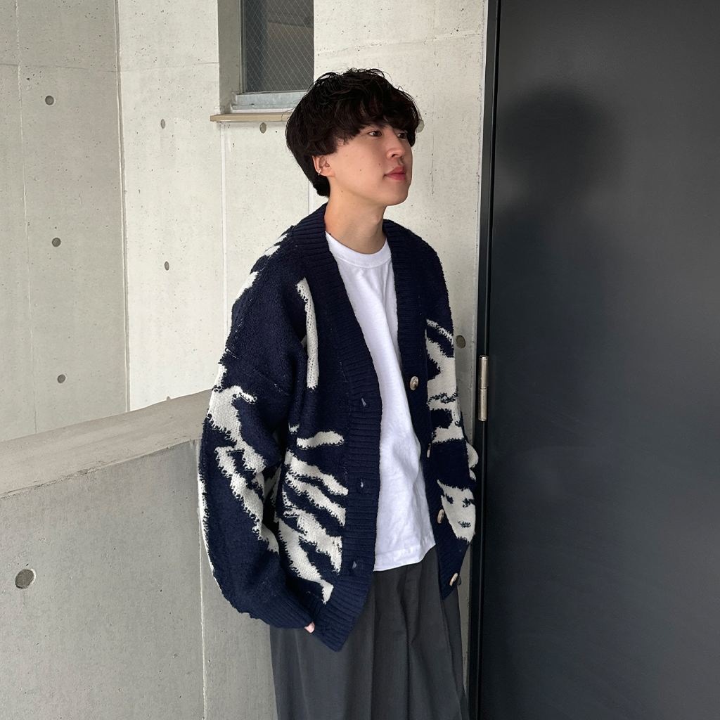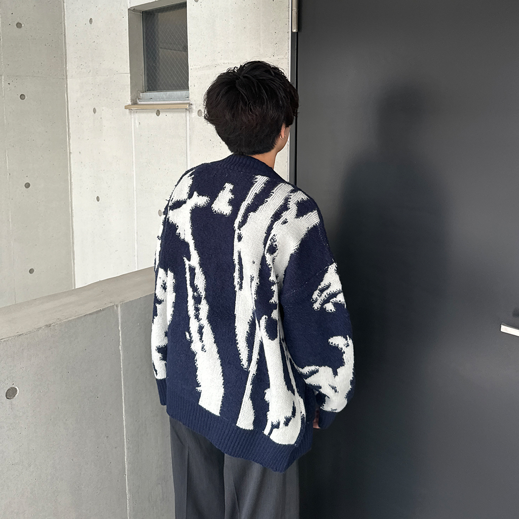 (ユニセックス) オーバーサイズプリントVネックカーディガン