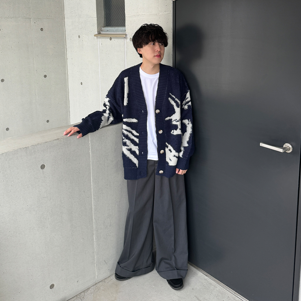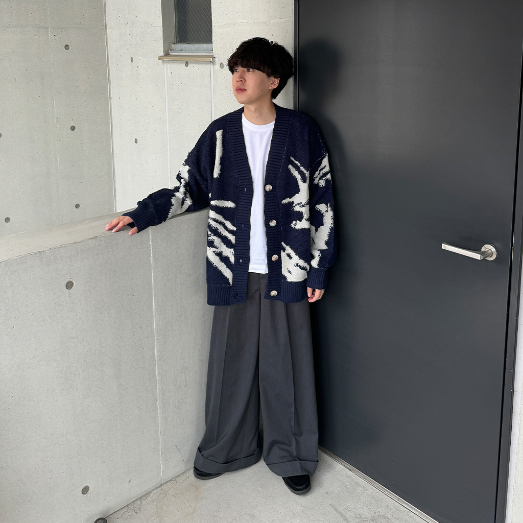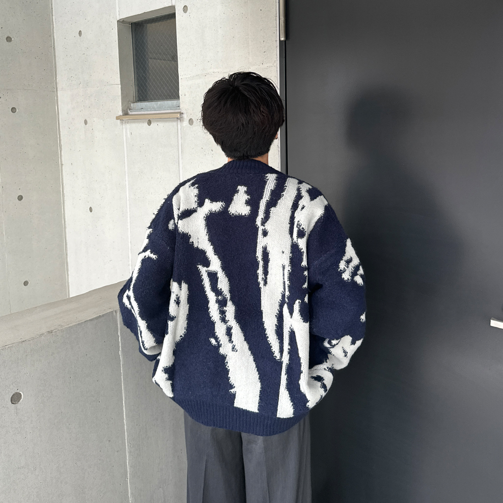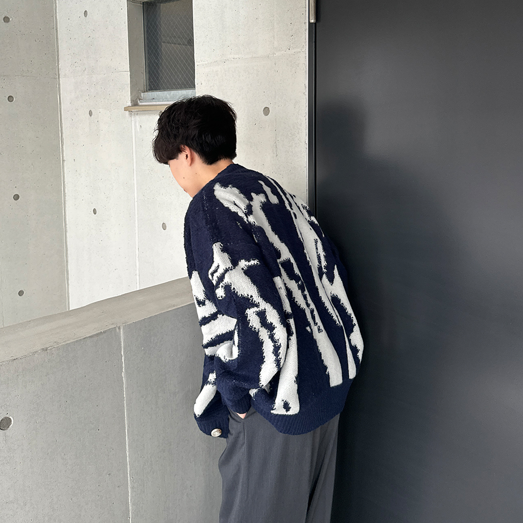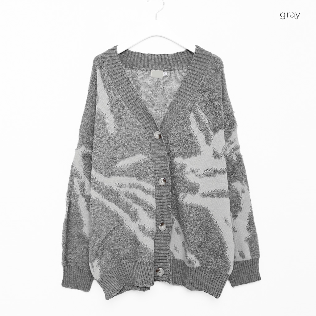 (ユニセックス) オーバーサイズプリントVネックカーディガン