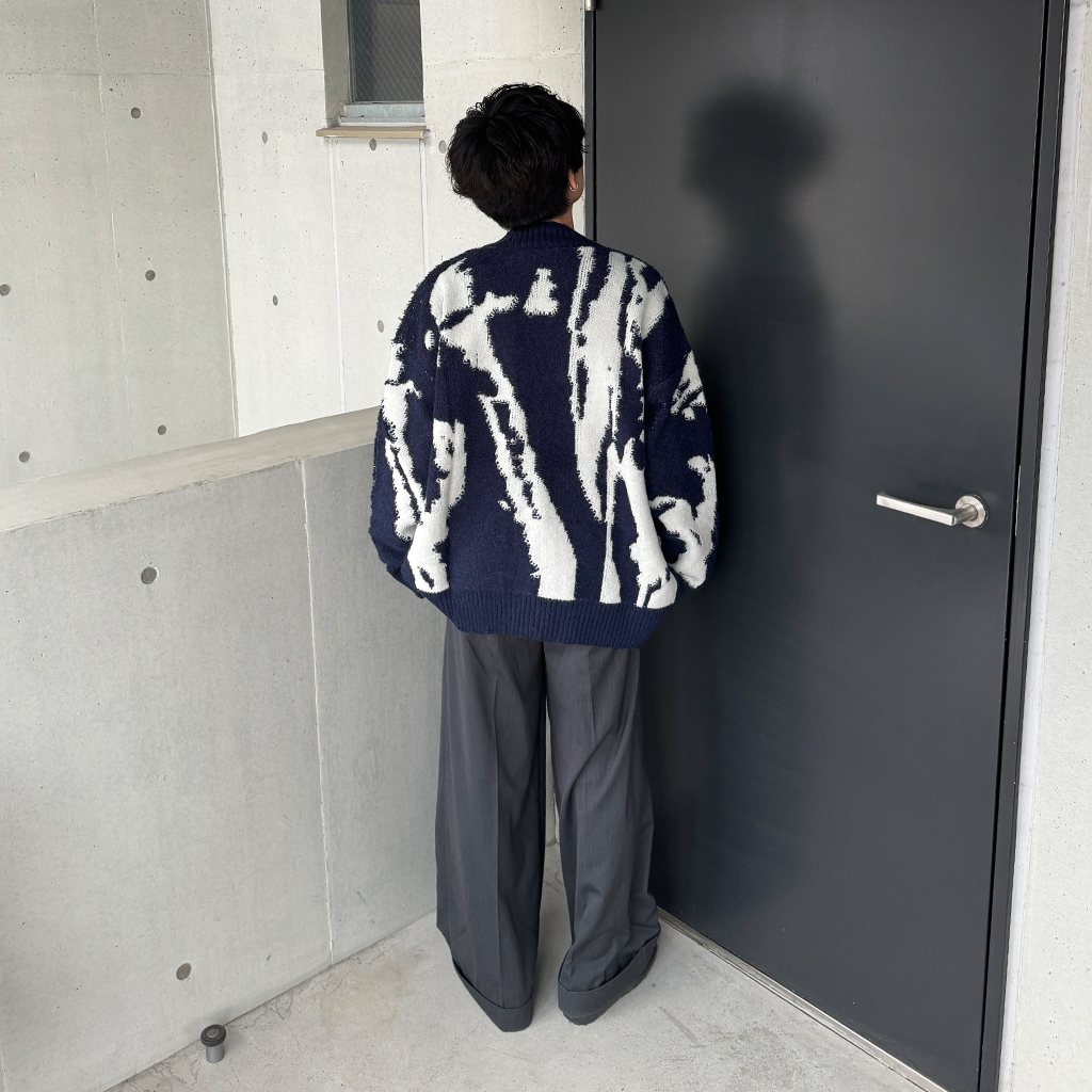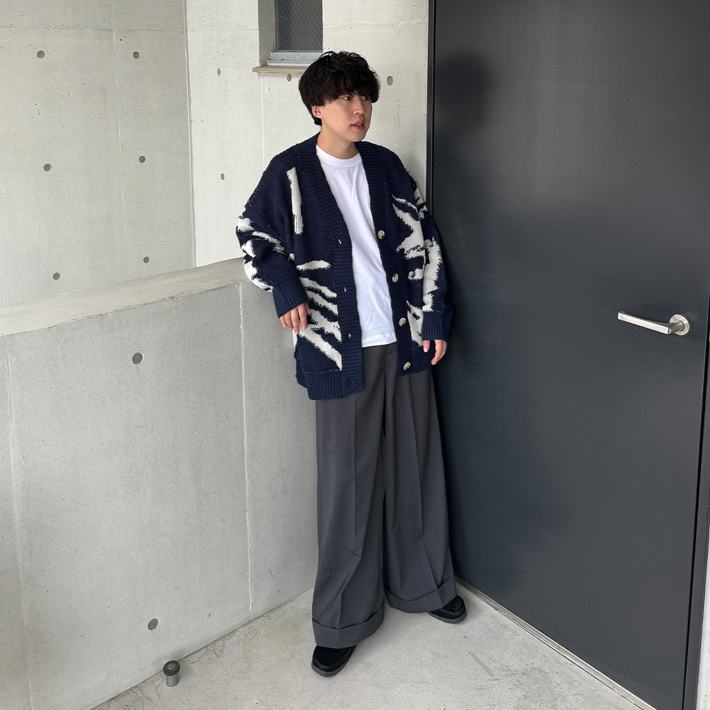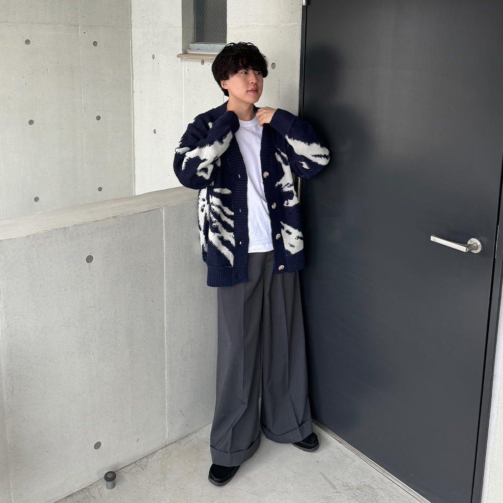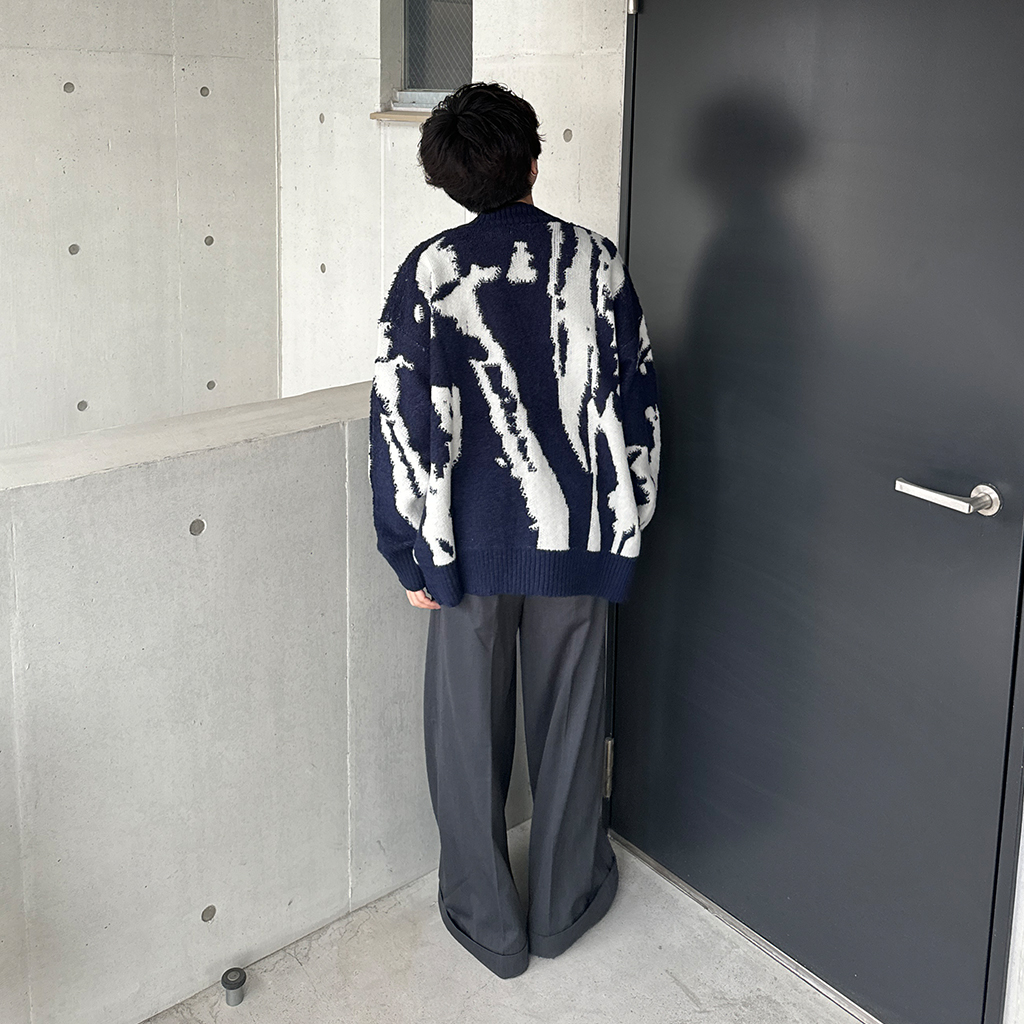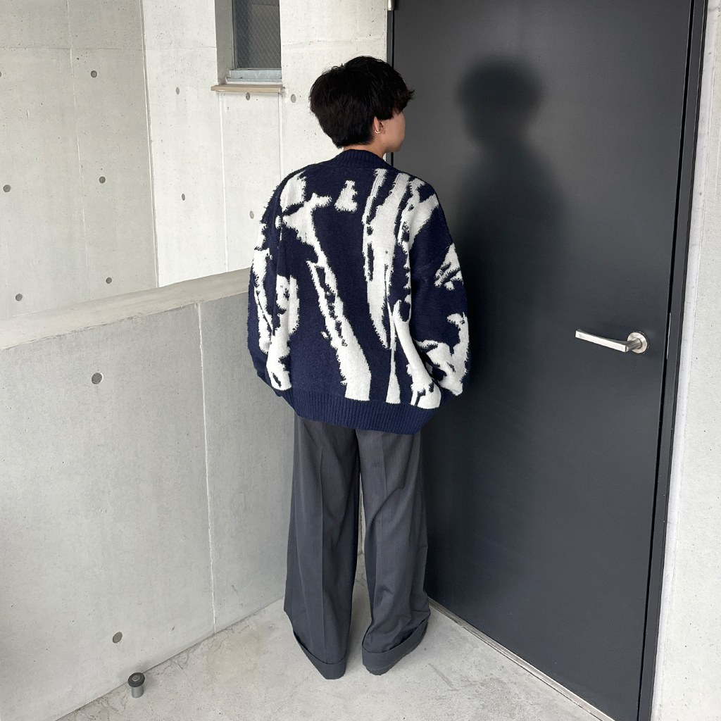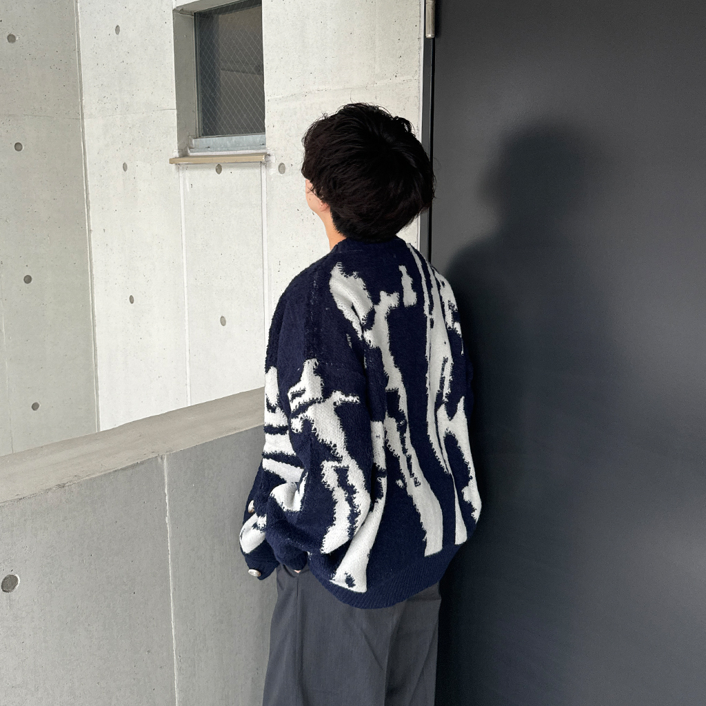 (ユニセックス) オーバーサイズプリントVネックカーディガン