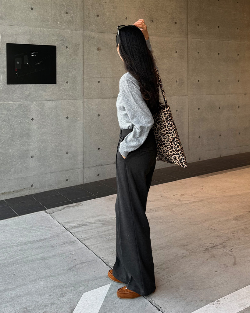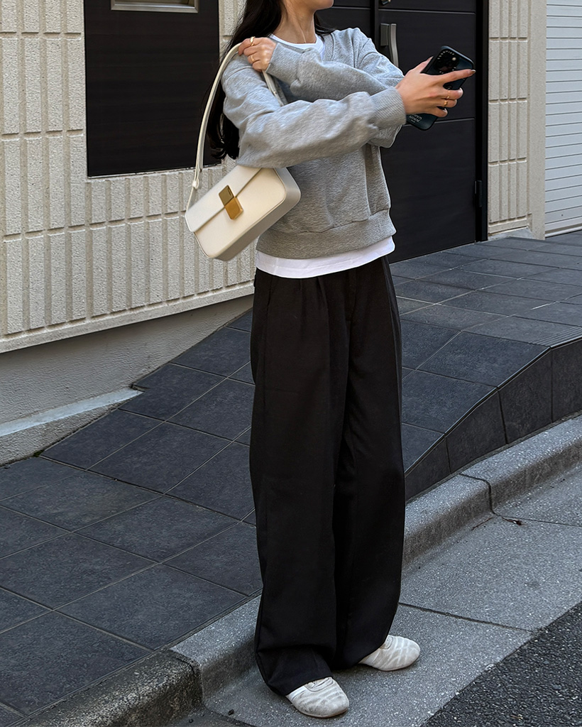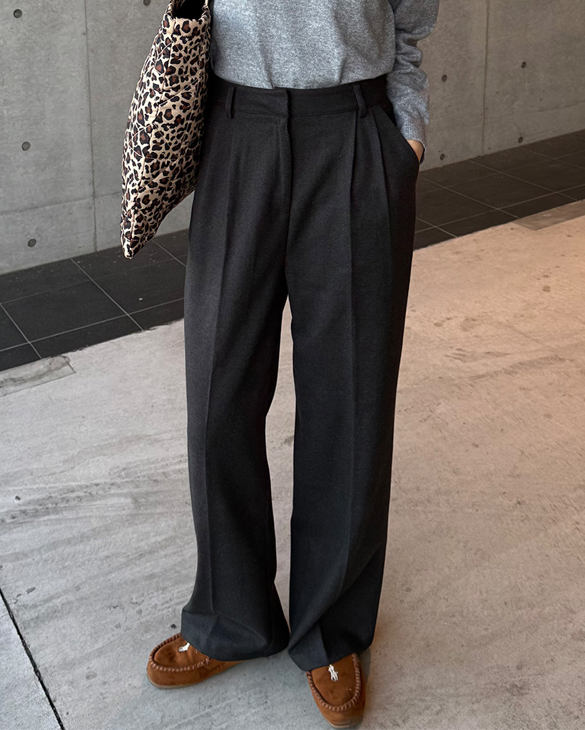 タック入りワイドスラックスパンツ