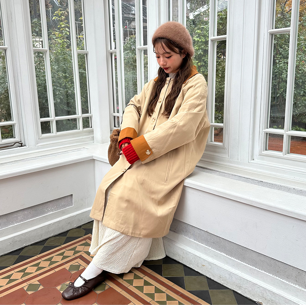 カラースリーブバイカラートレンチコート