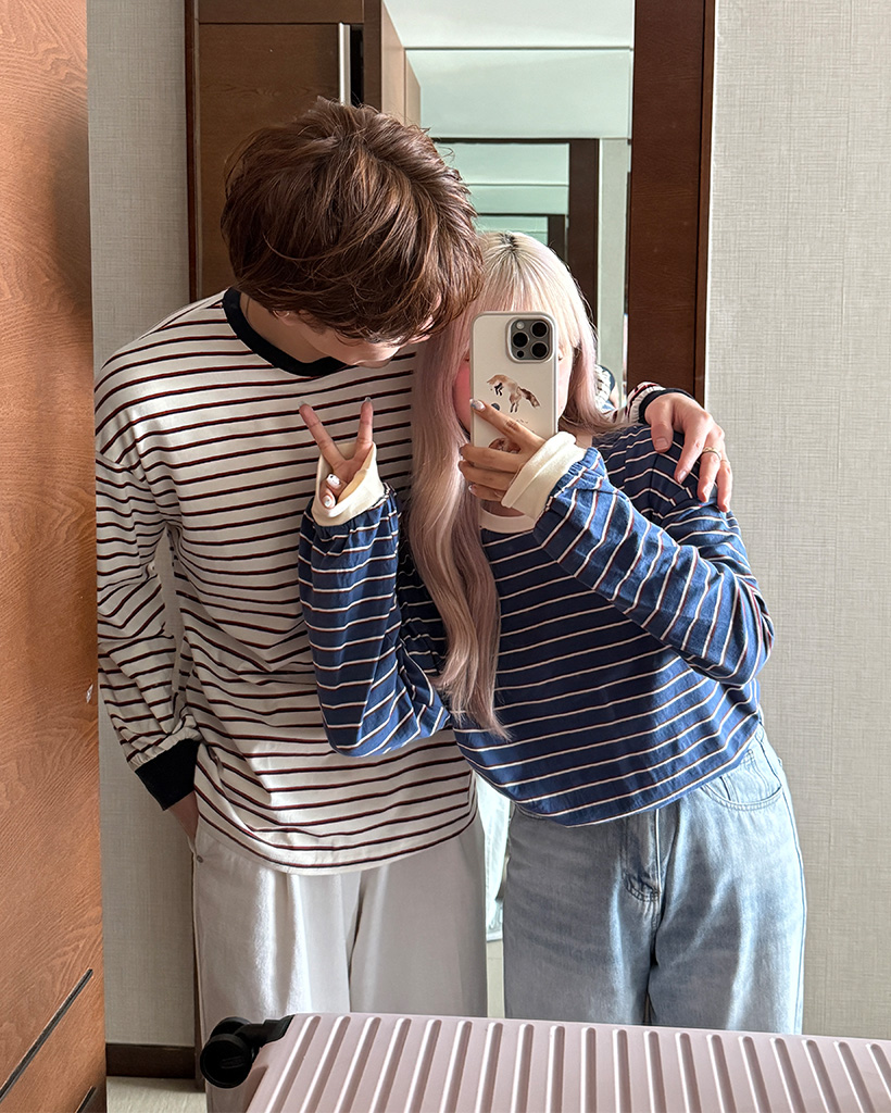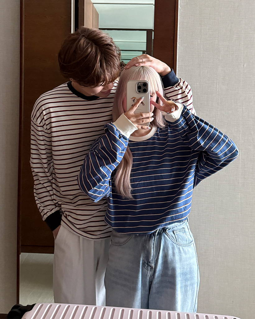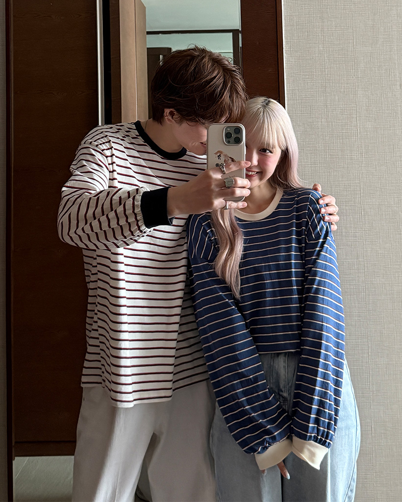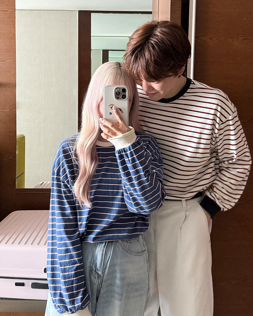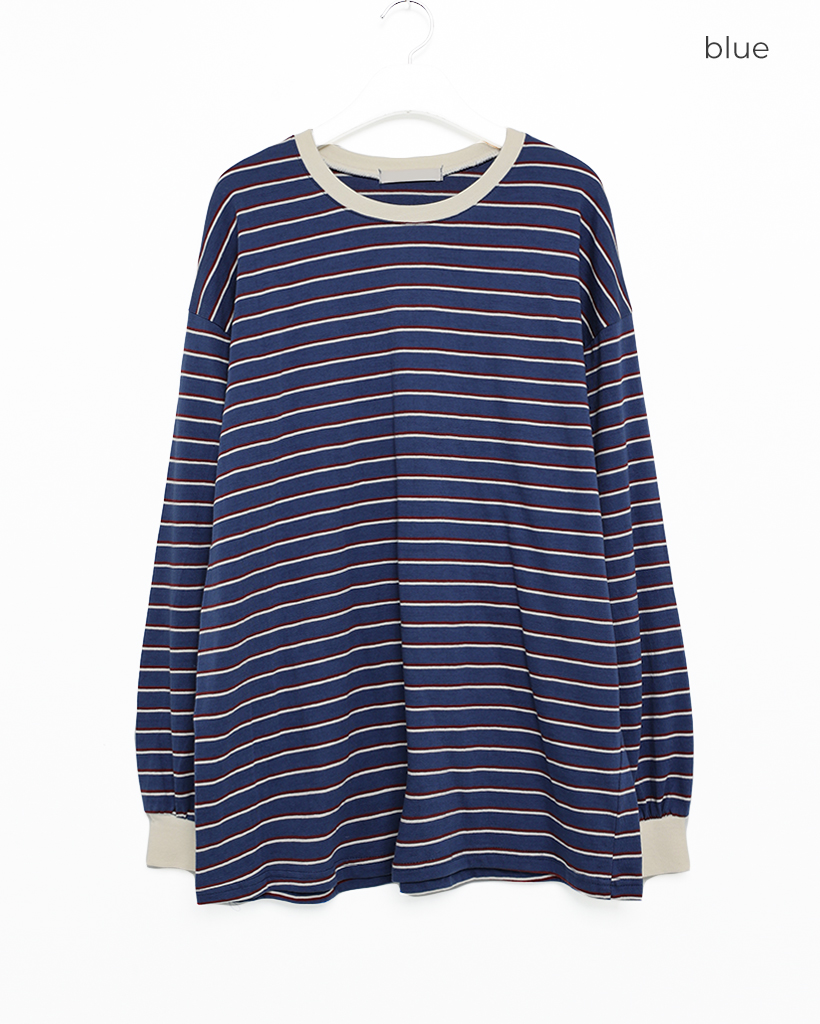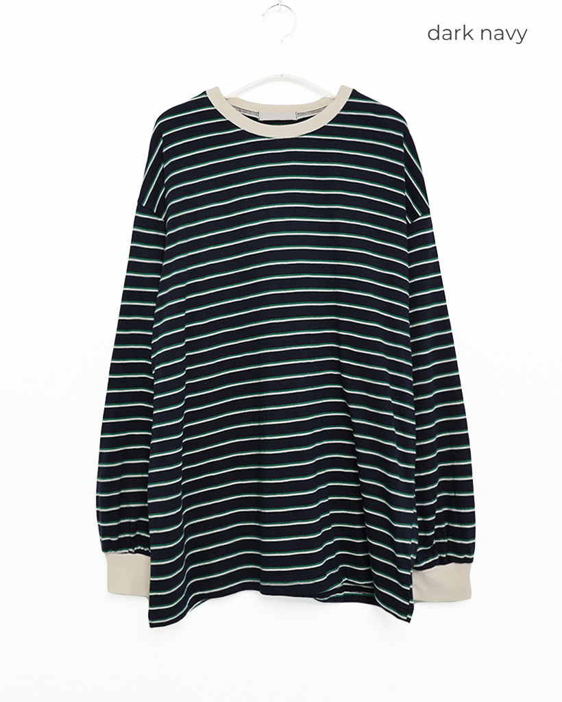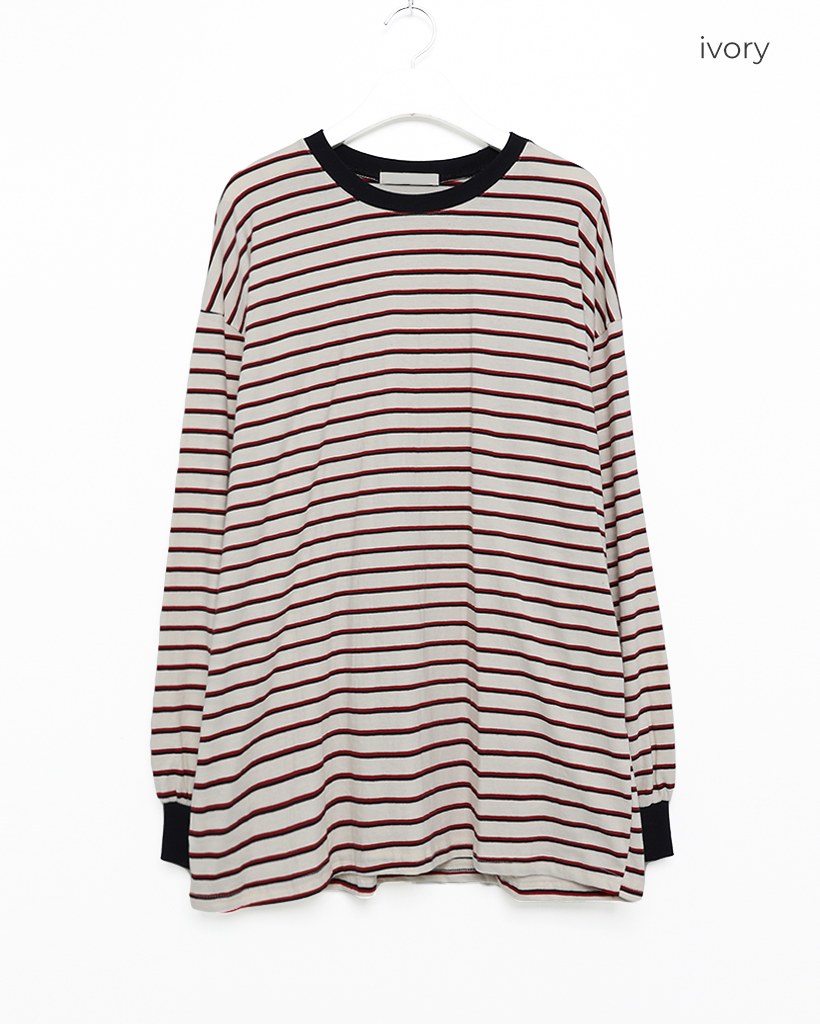 (ユニセックス)カラーボーダー長袖Tシャツ