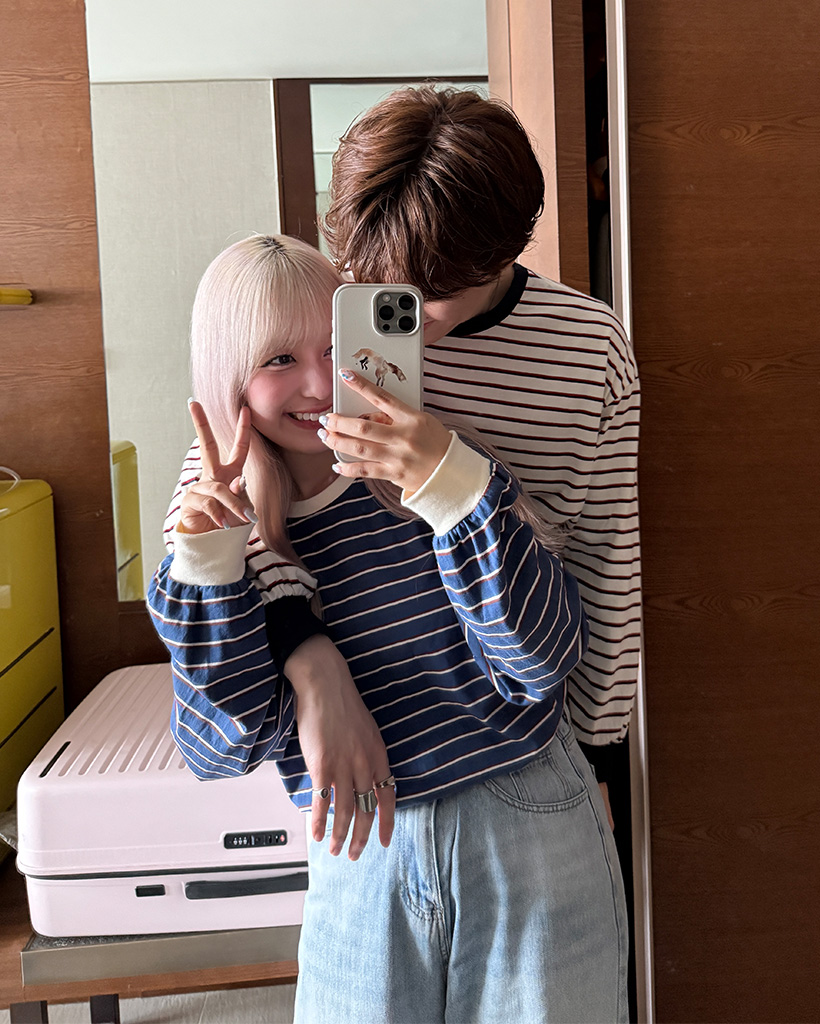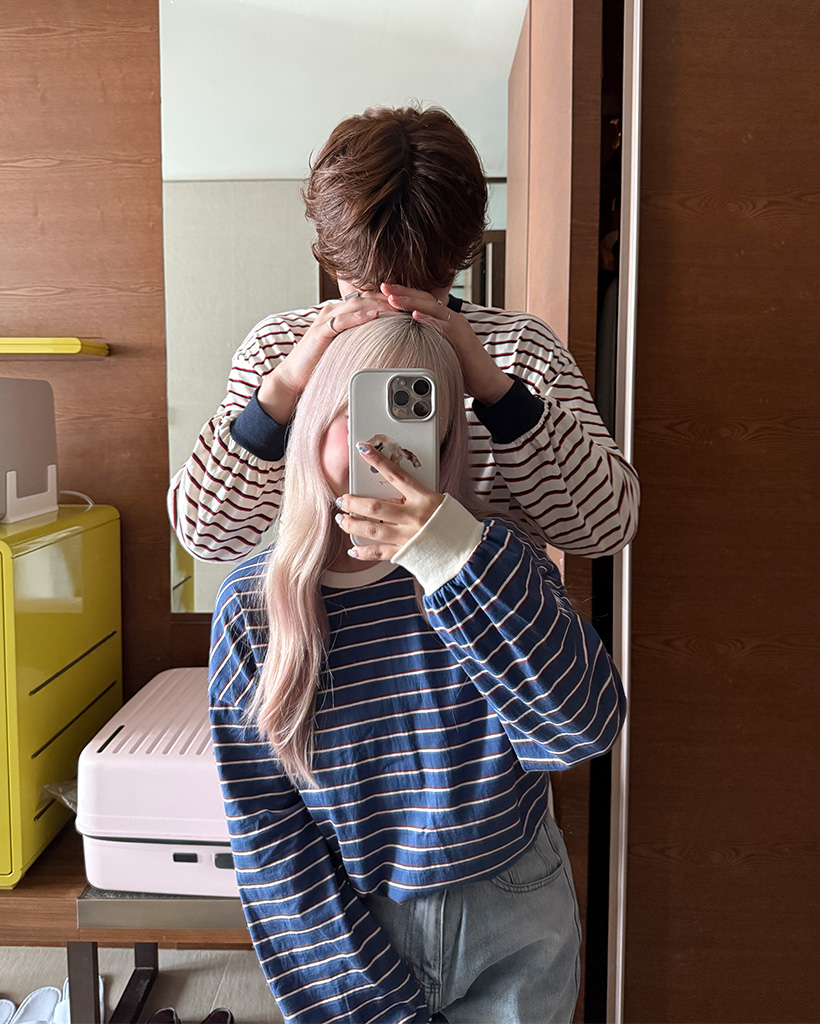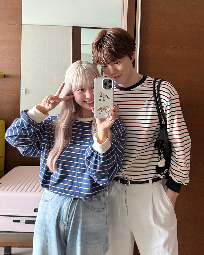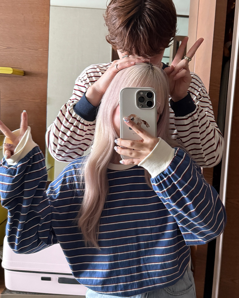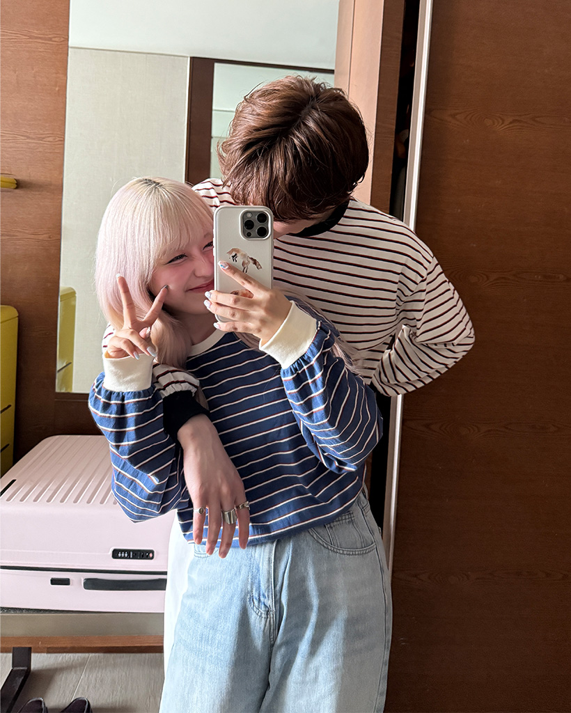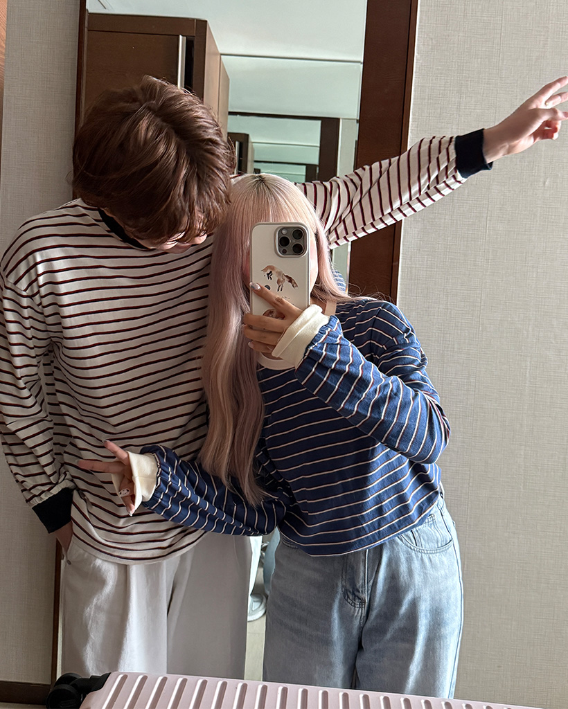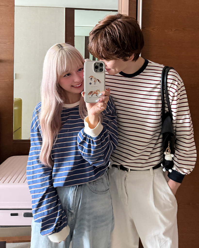 (ユニセックス)カラーボーダー長袖Tシャツ