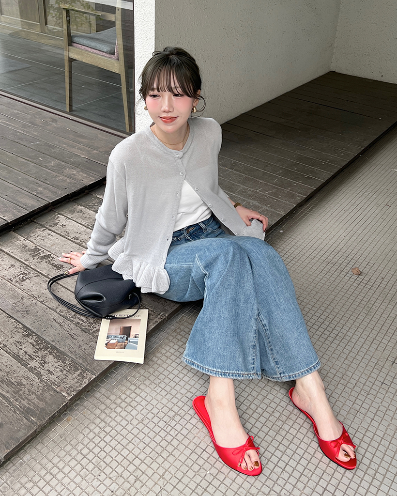フリルラウンドネックカーディガン