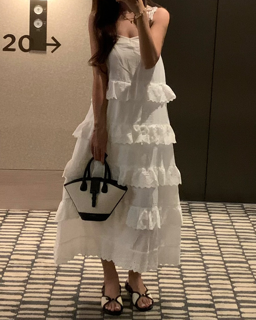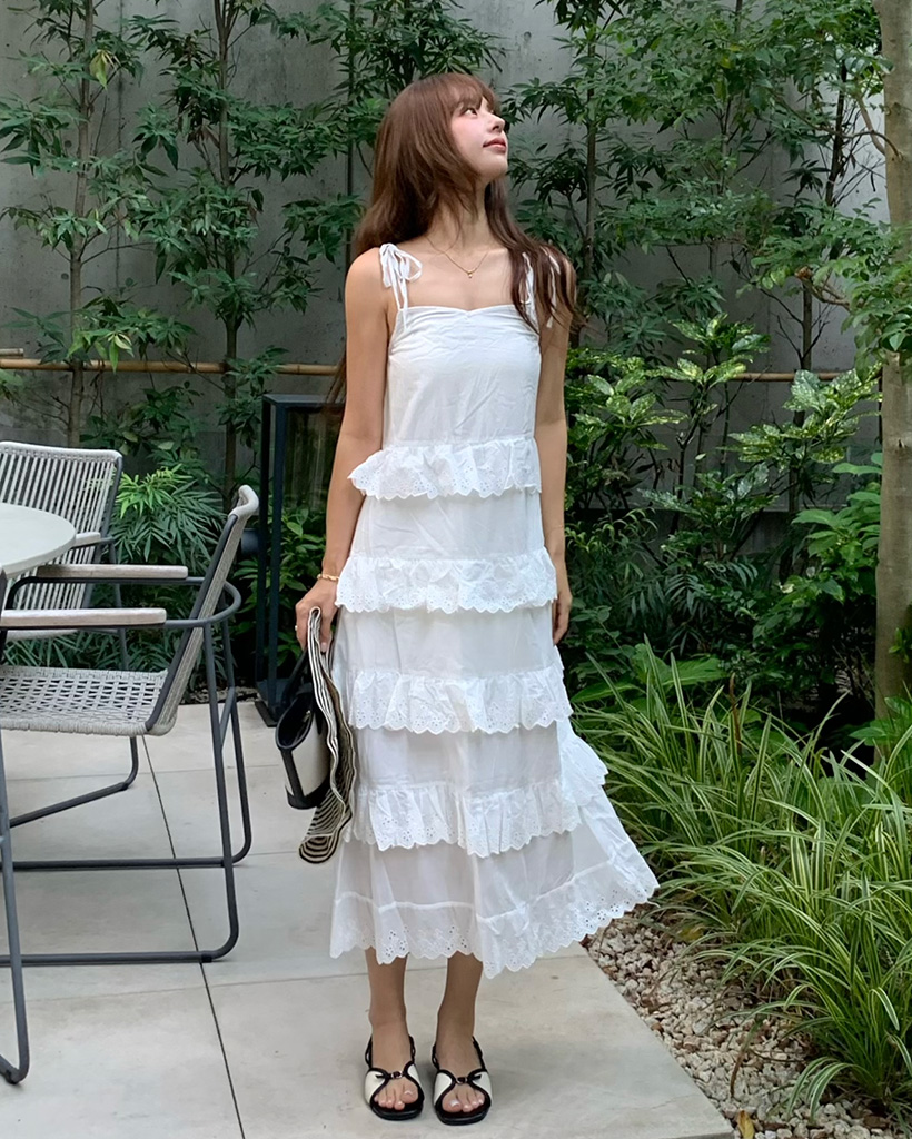 レースロングキャミソールワンピース