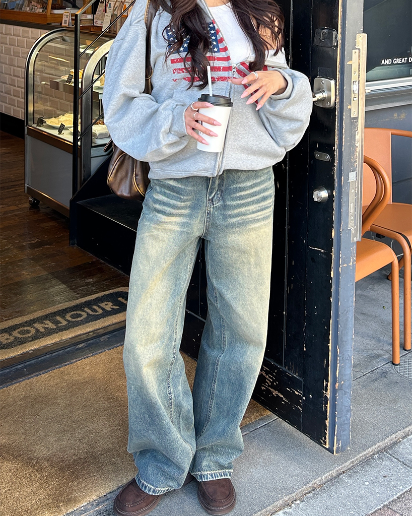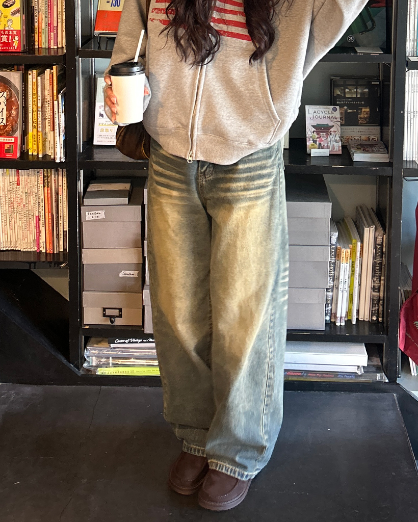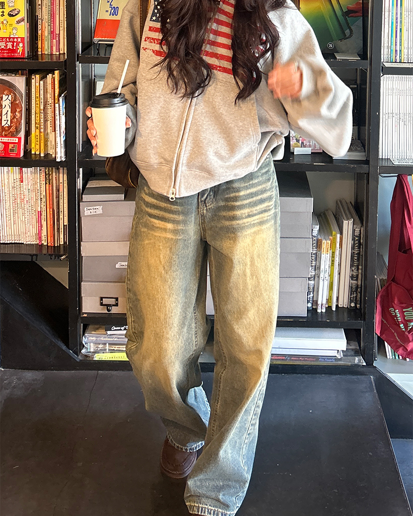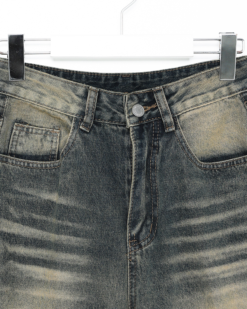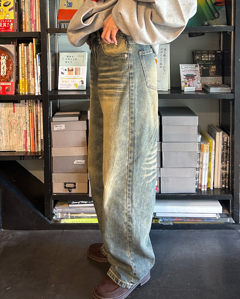 ビンテージヒゲウォッシングストレートデニムパンツ