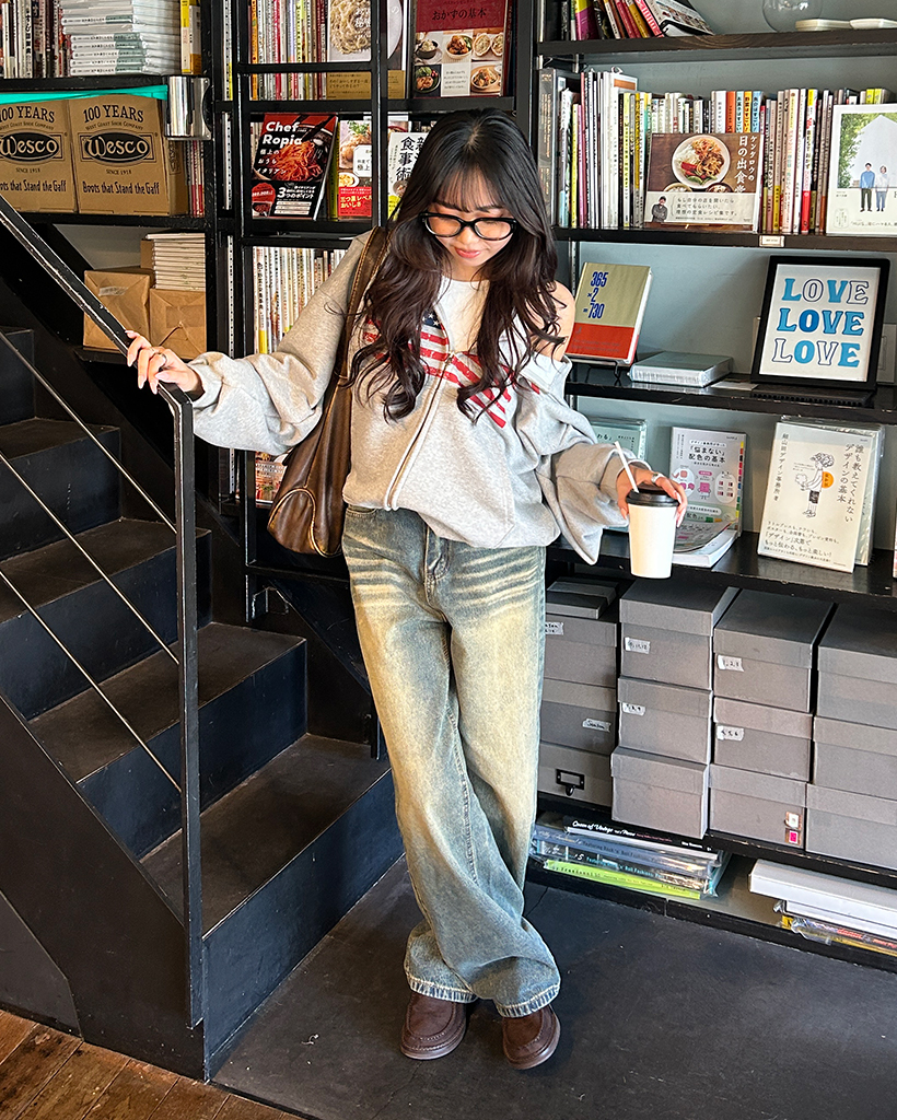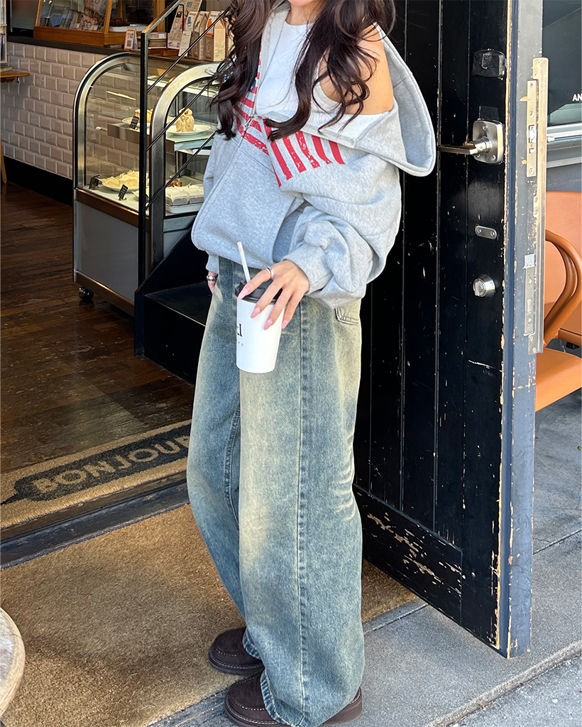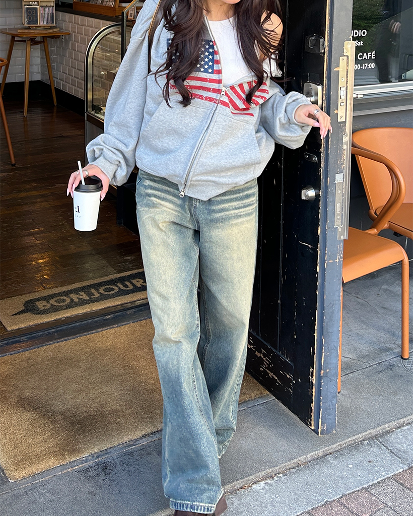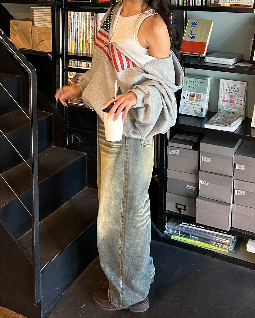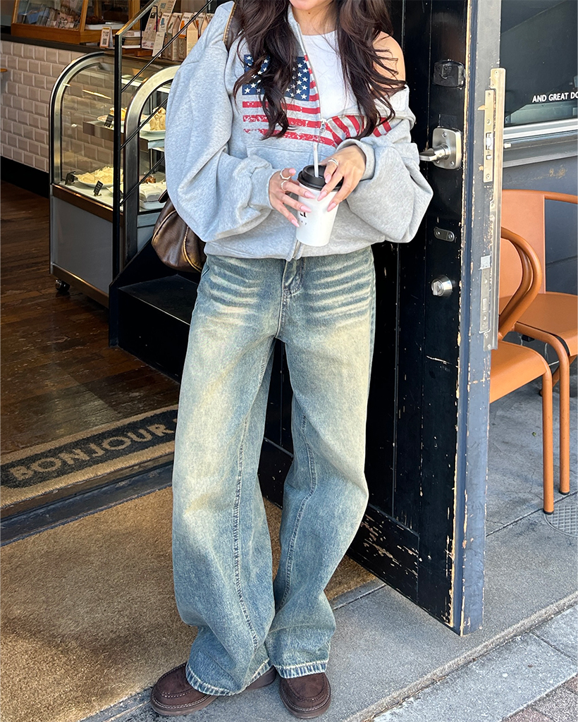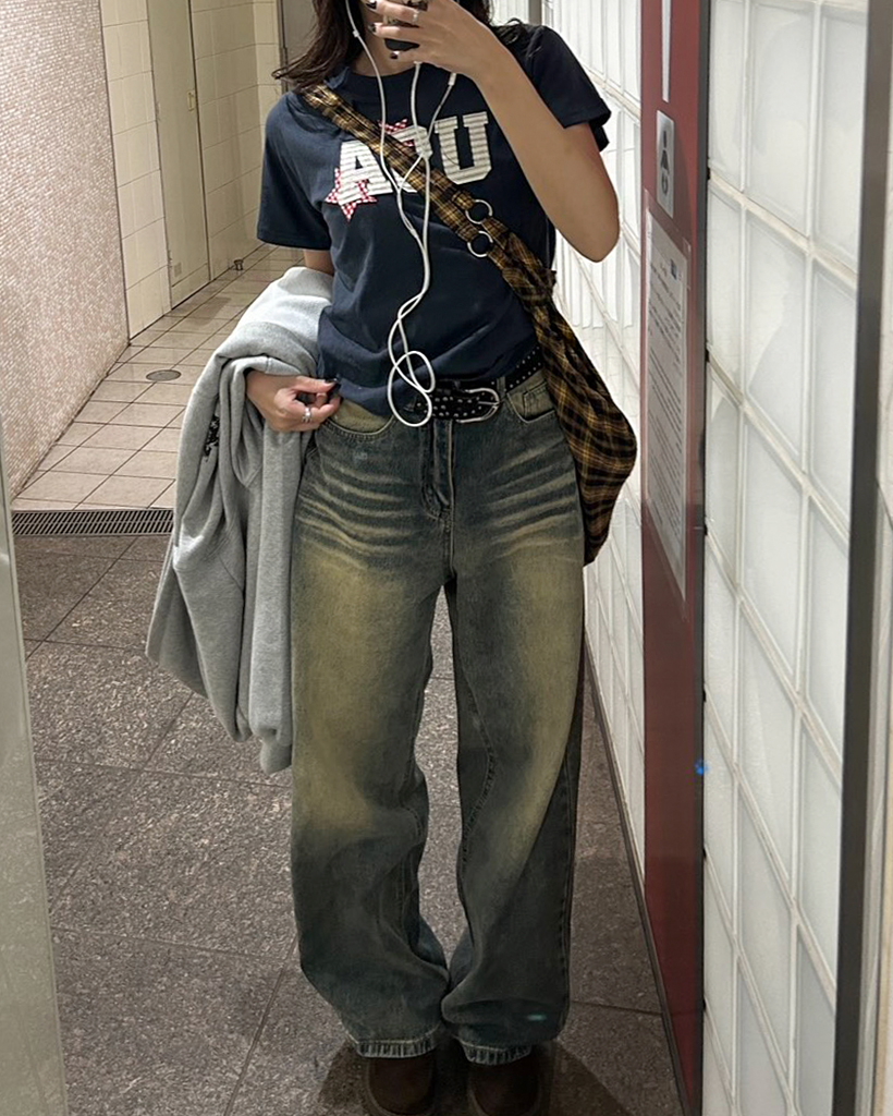 ビンテージヒゲウォッシングストレートデニムパンツ