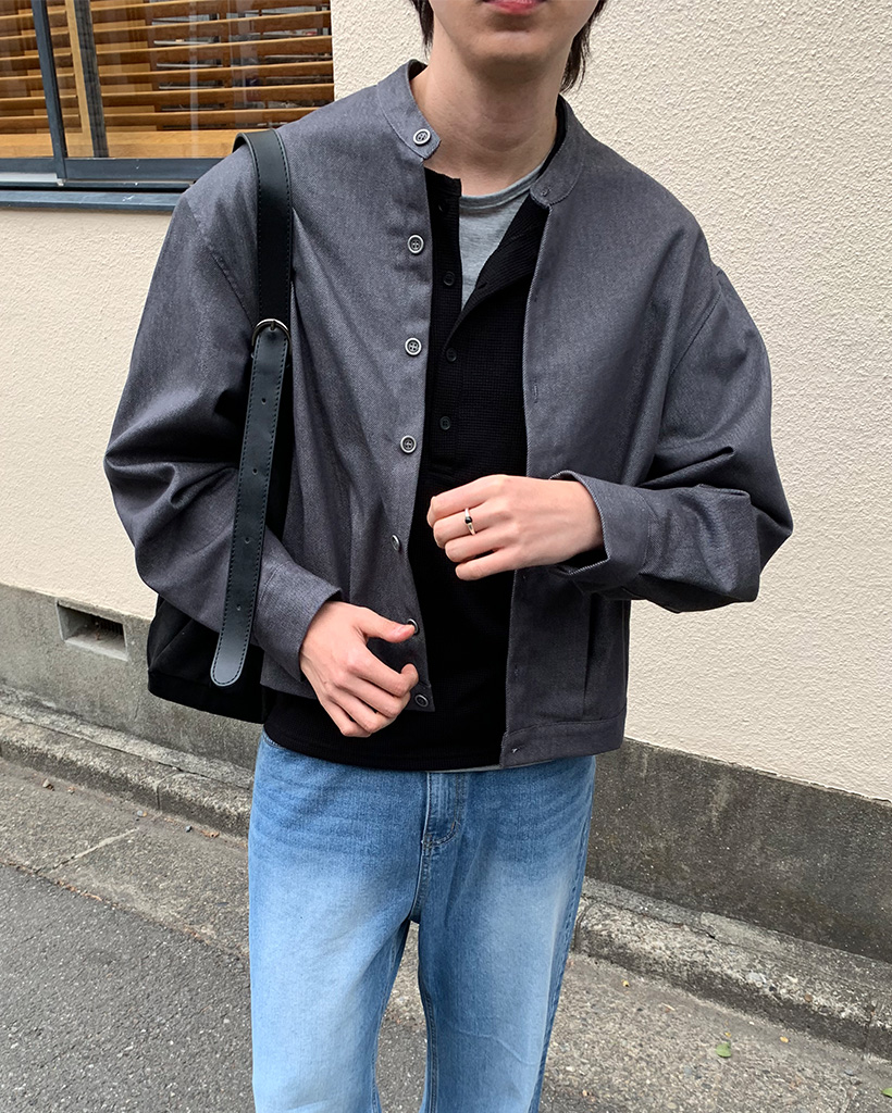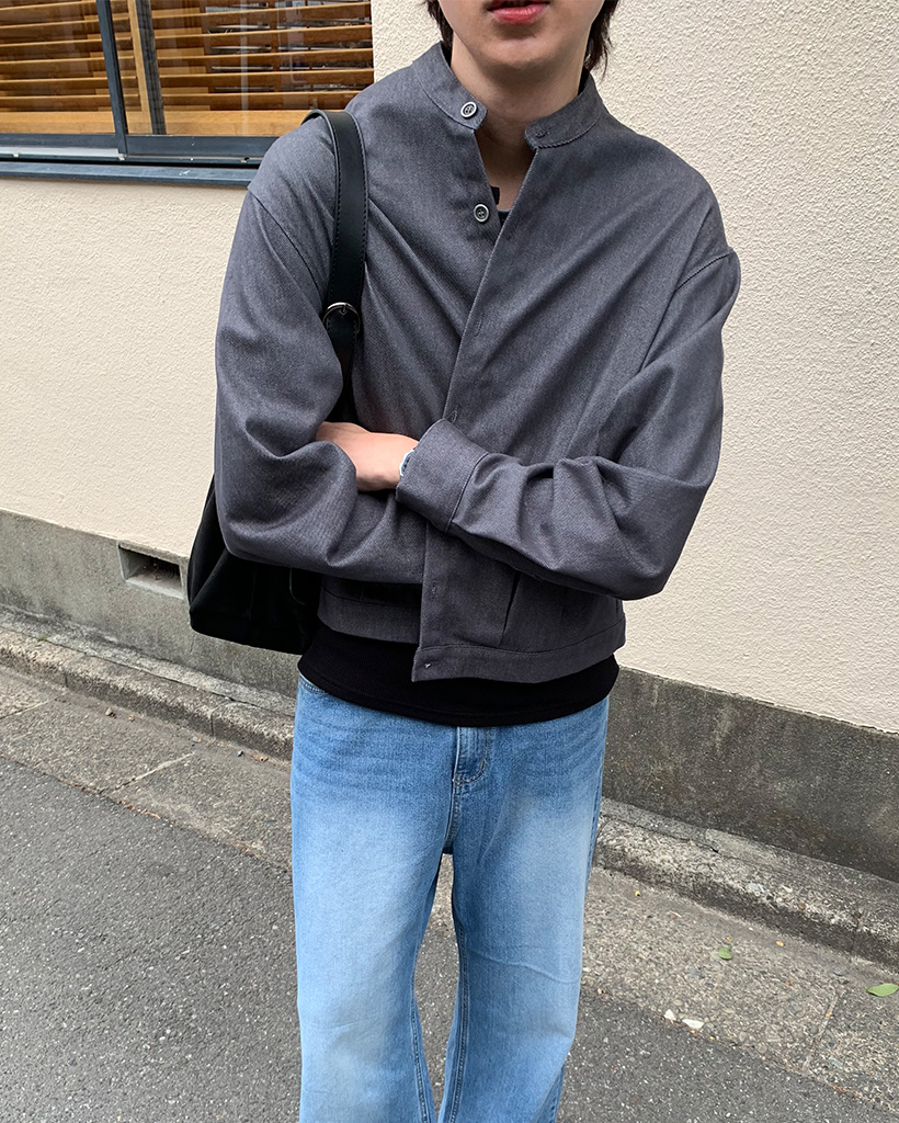 (ユニセックス)チャイナネッククロップフィットジャケット