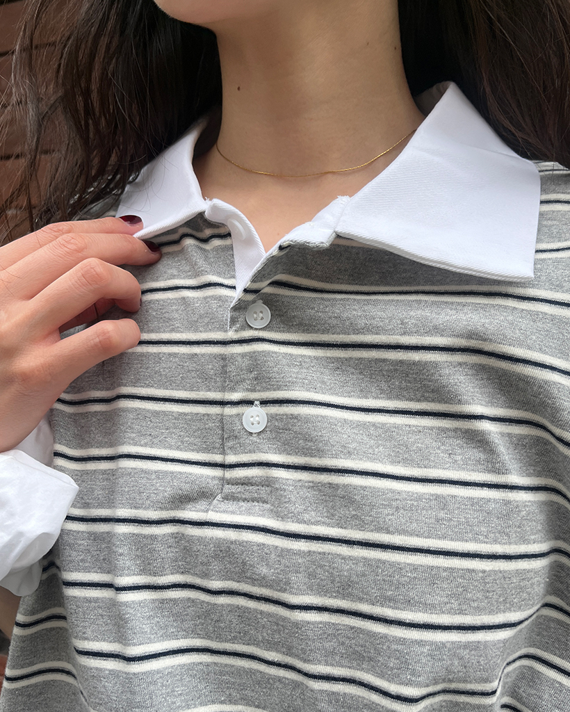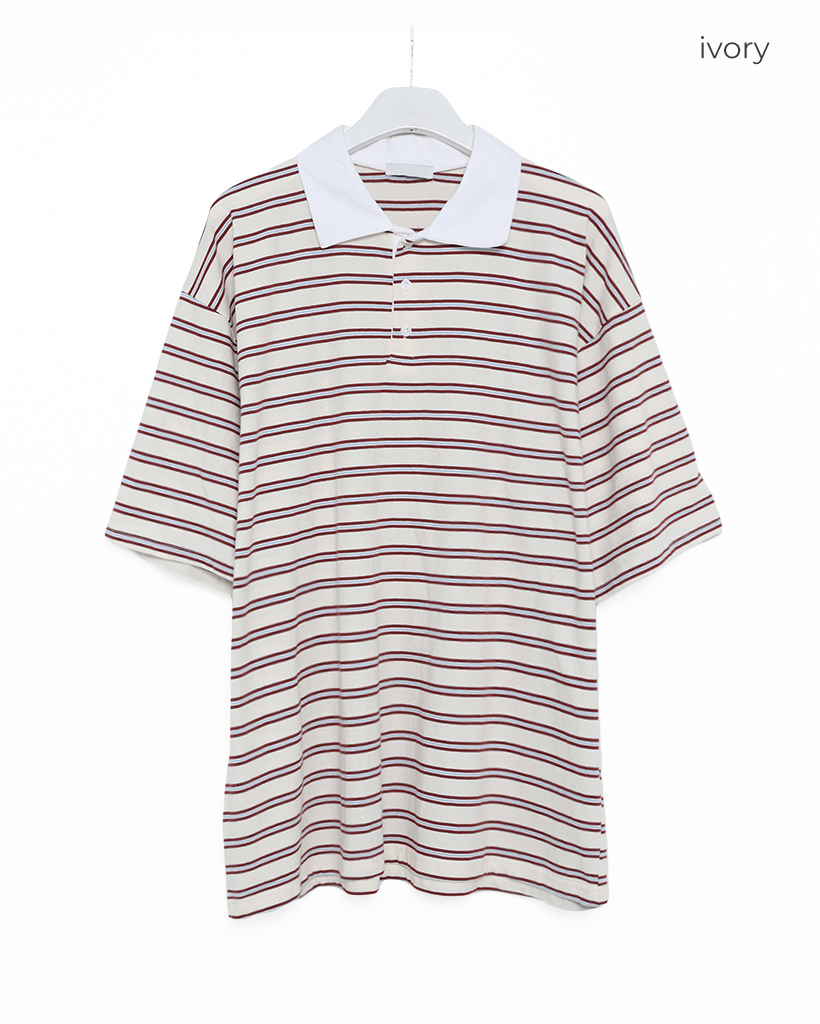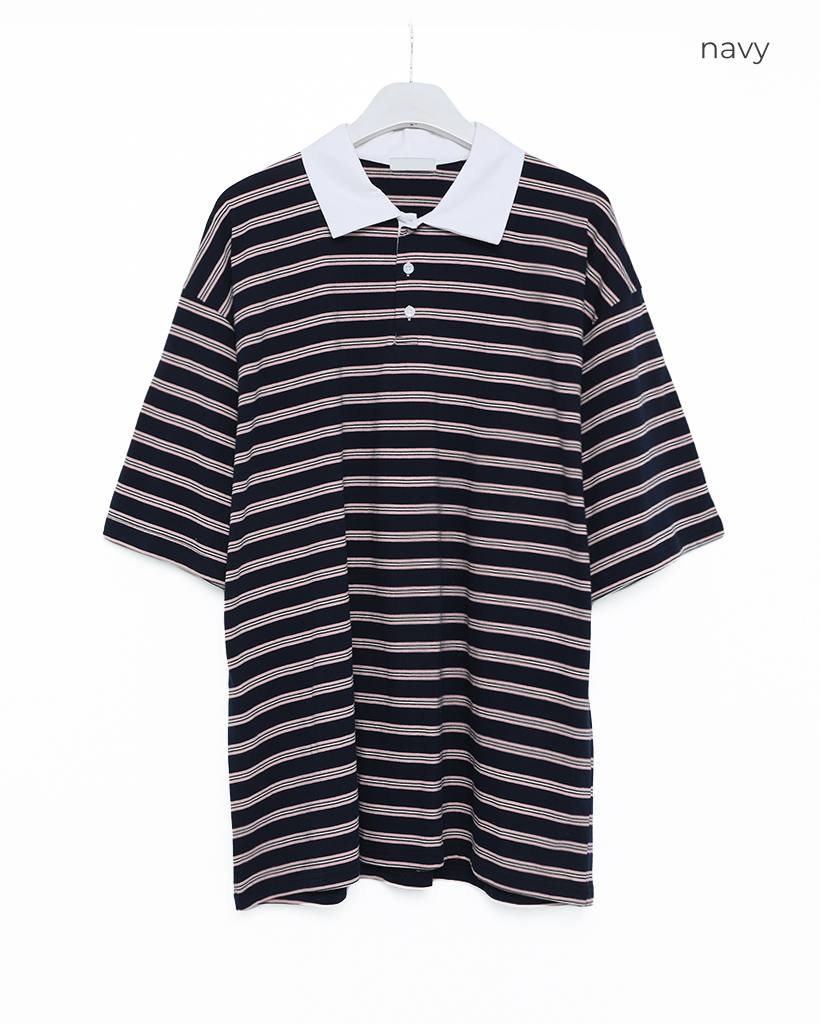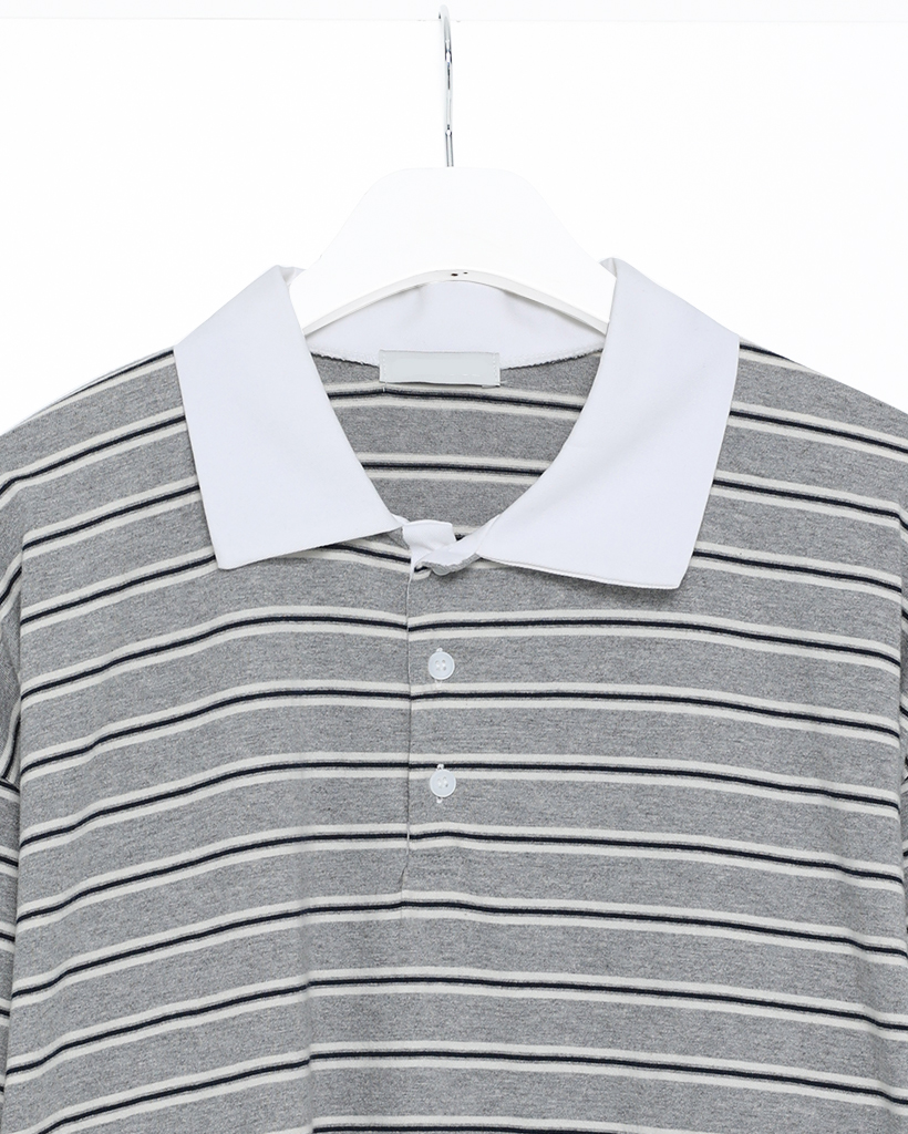 (ユニセックス)ダブルボーダーポロネックTシャツ