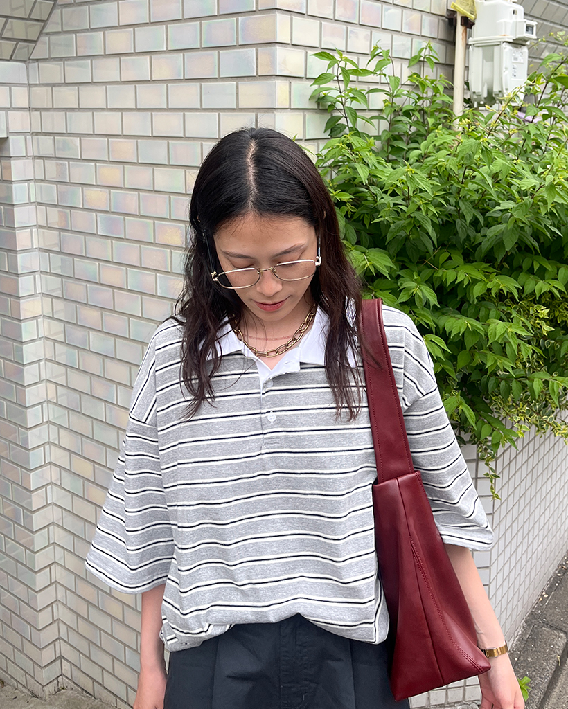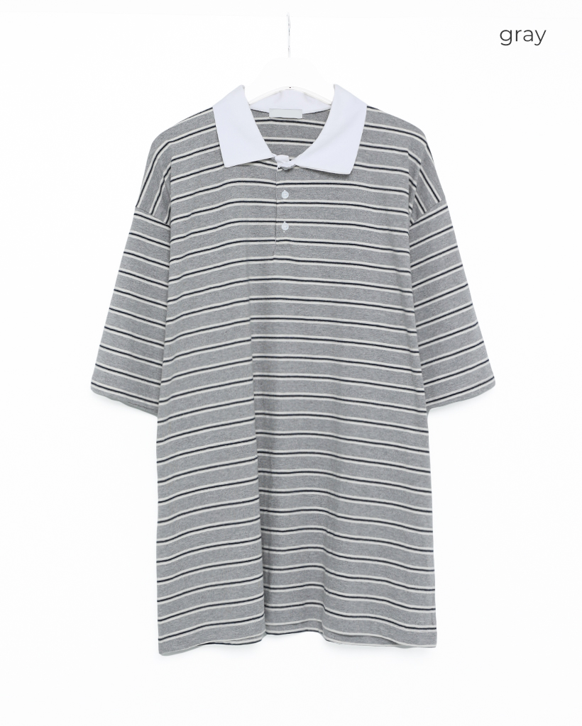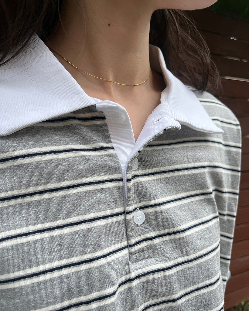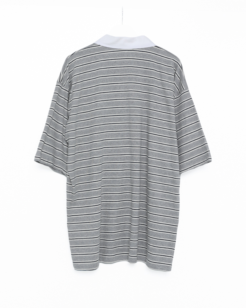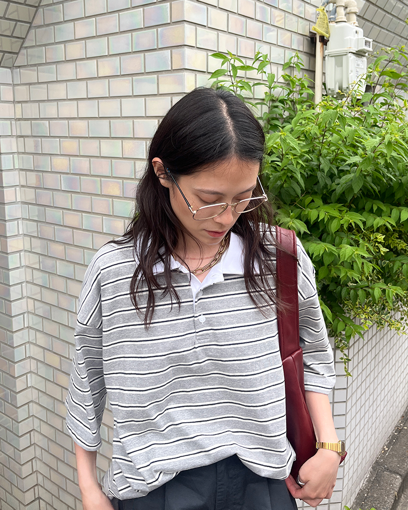 (ユニセックス)ダブルボーダーポロネックTシャツ