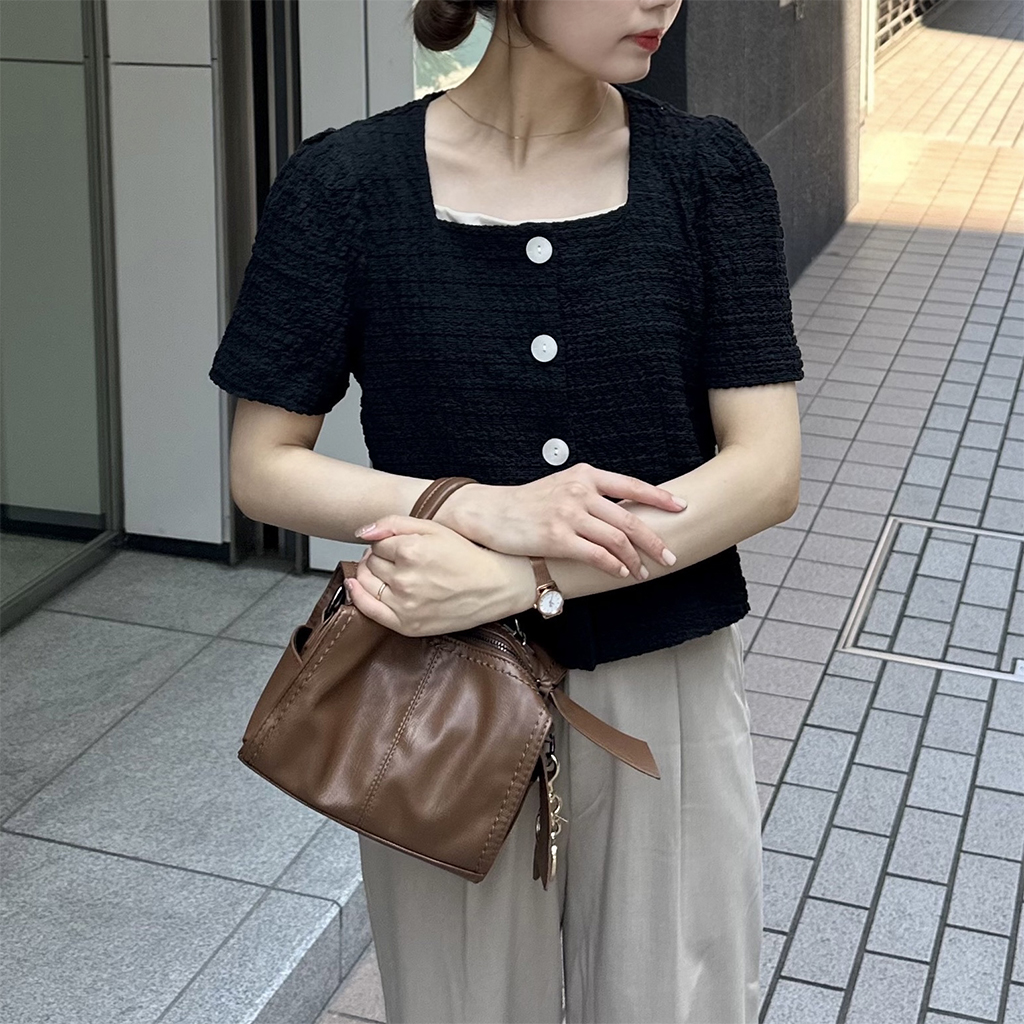 ステッチスクエアハンドバッグ