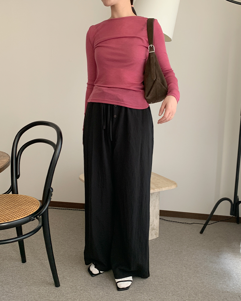 ボタンポイントワイドイージーパンツ