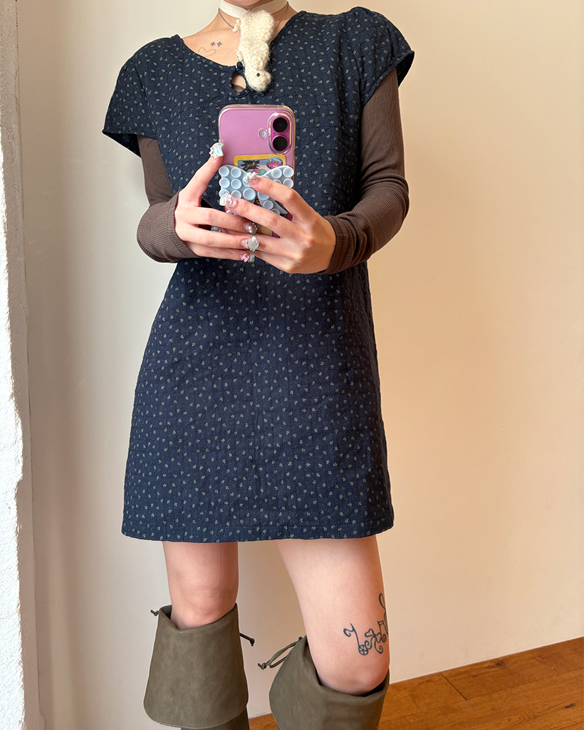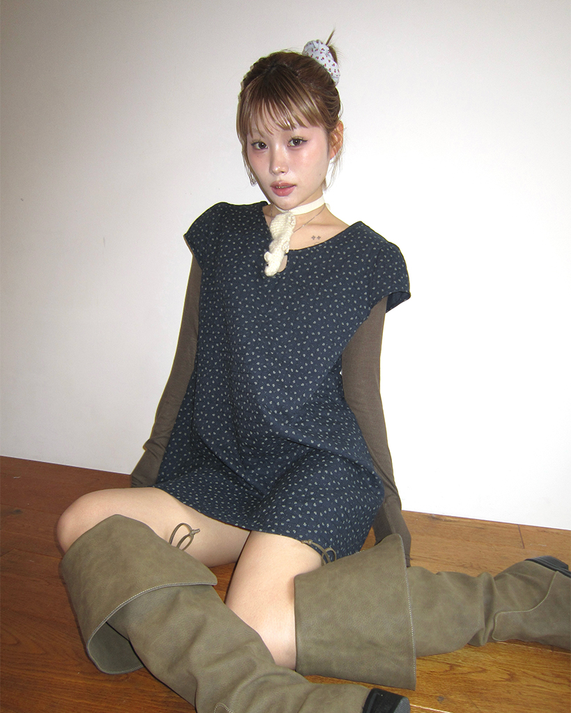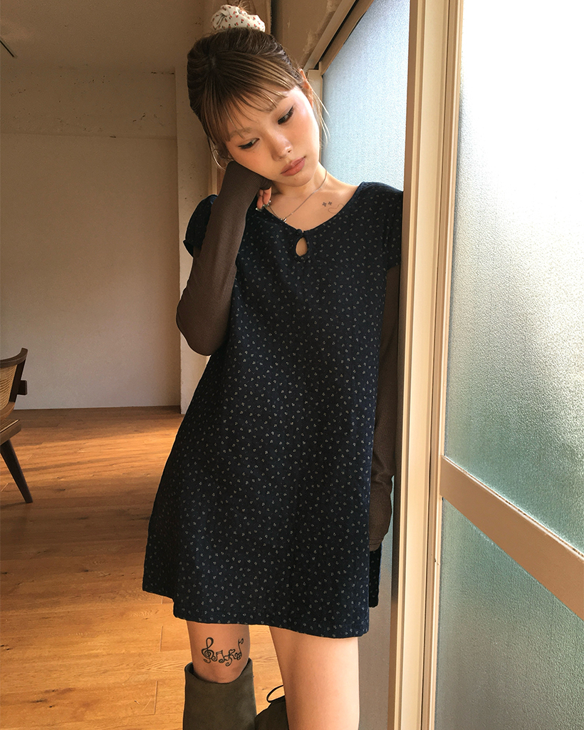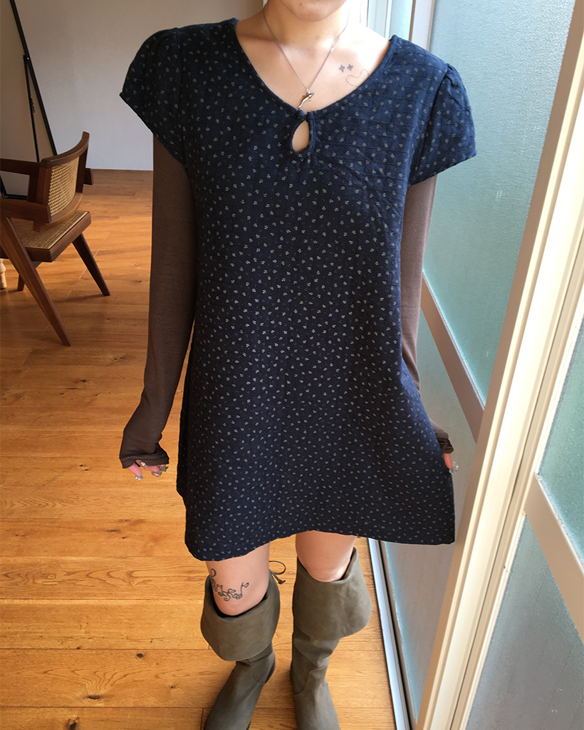 ティアドロップネックガーゼキルティングチュニック