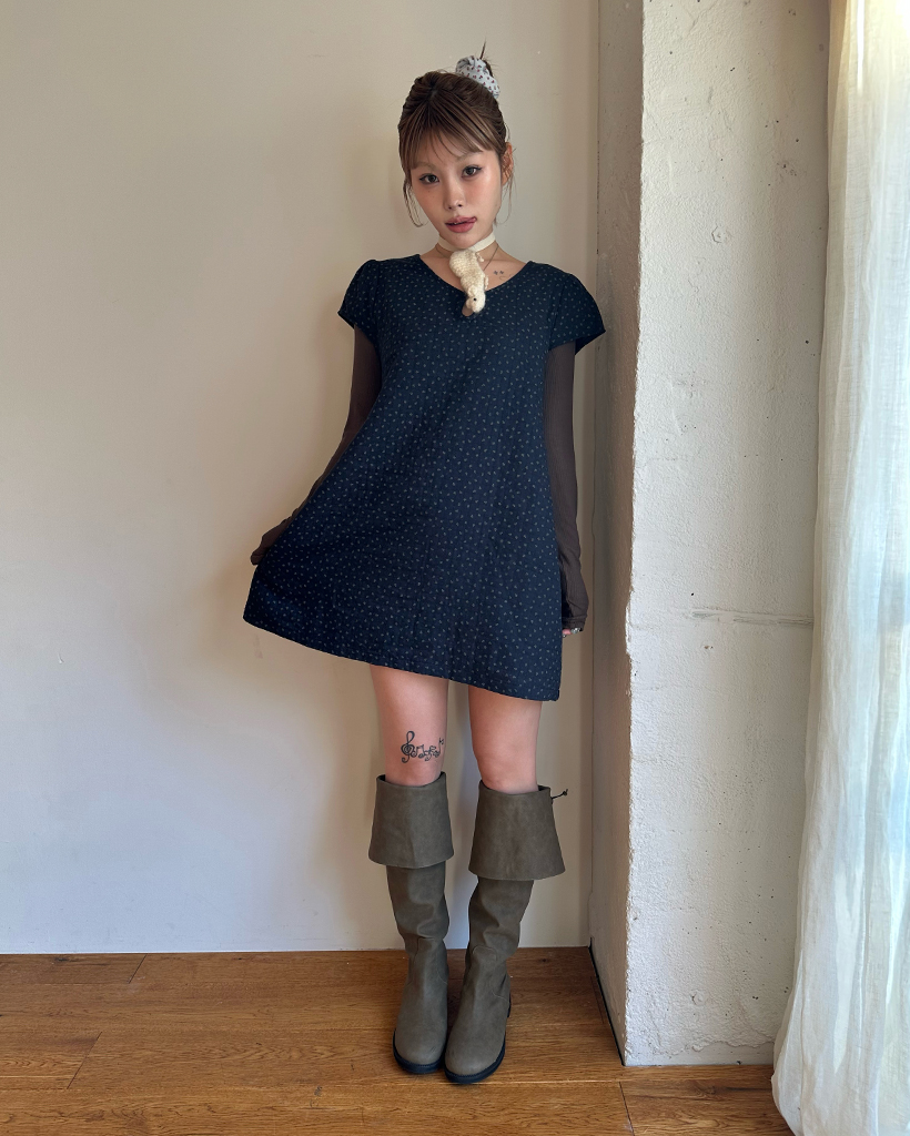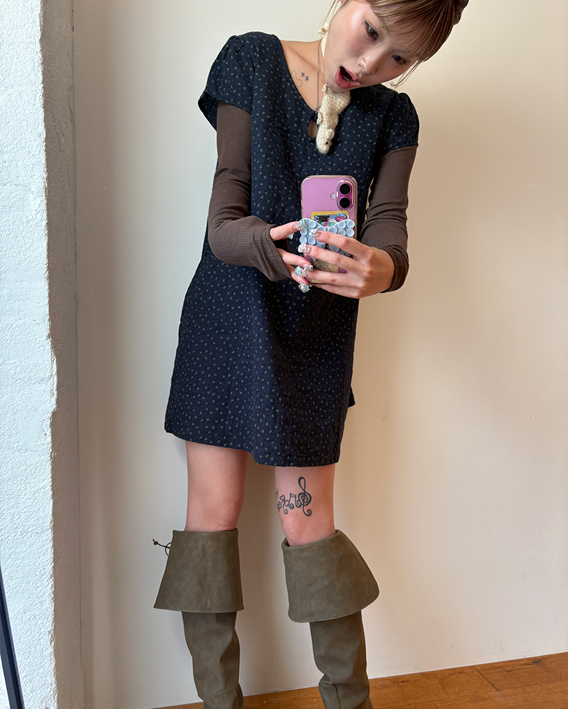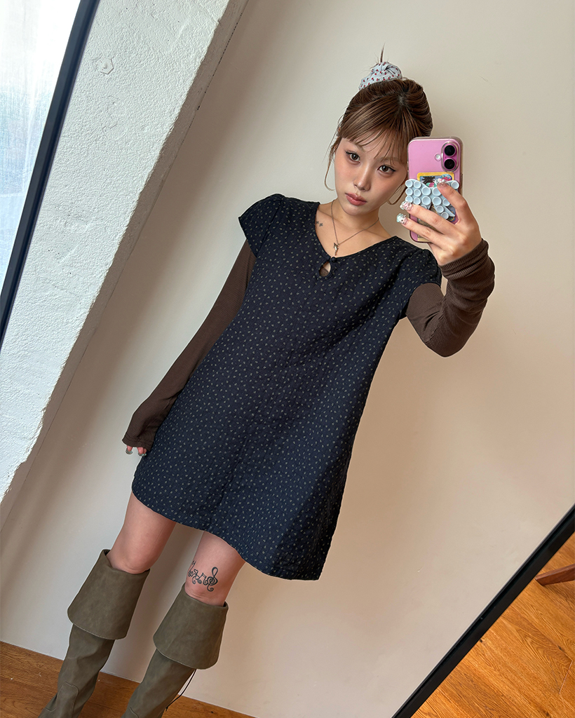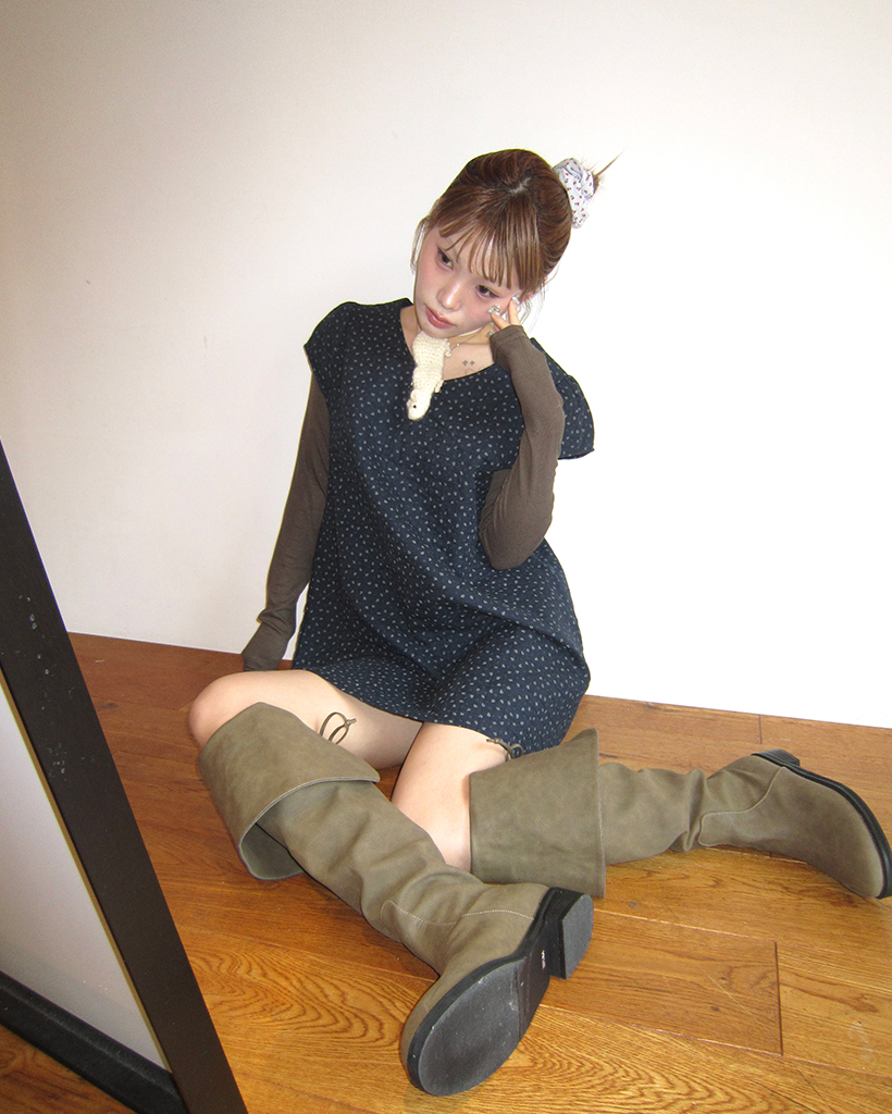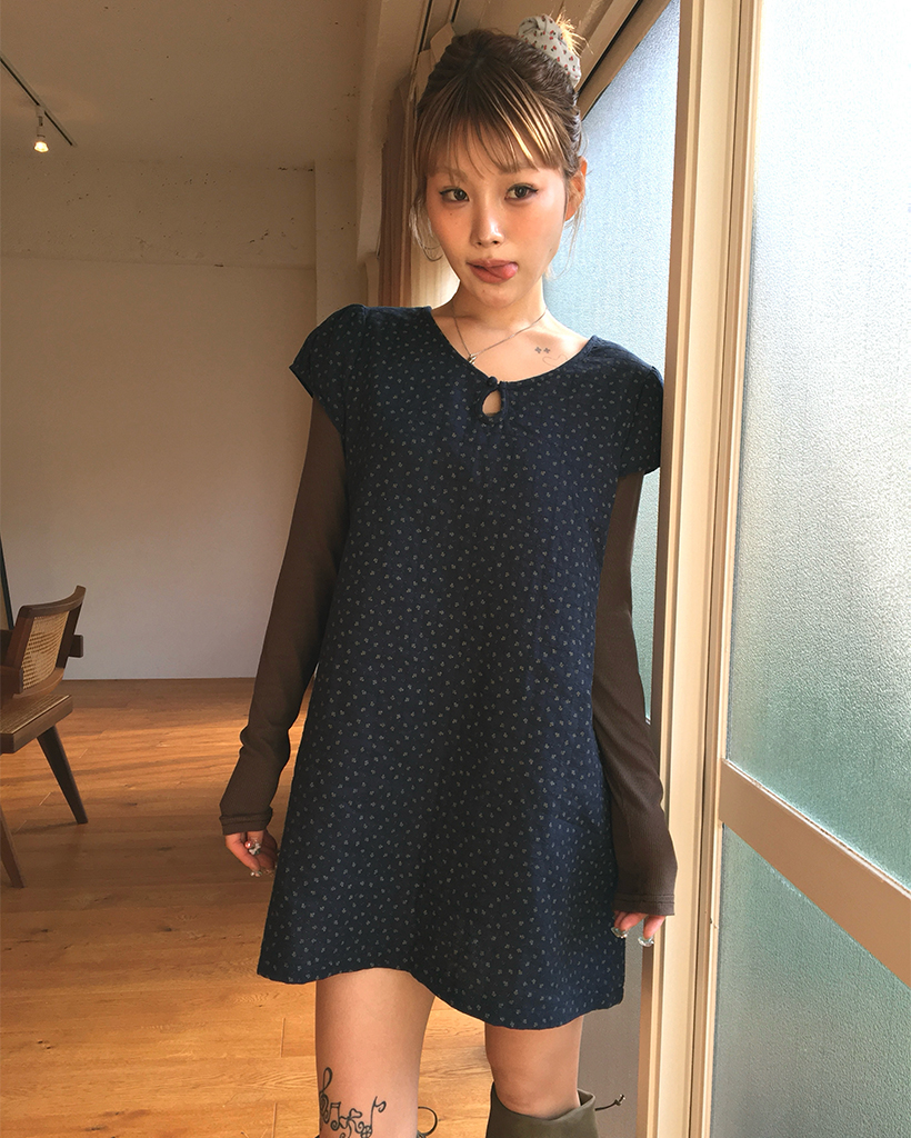 ティアドロップネックガーゼキルティングチュニック