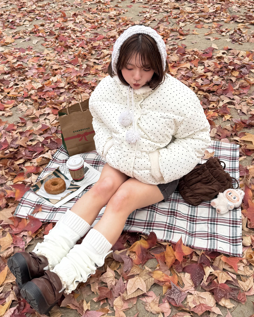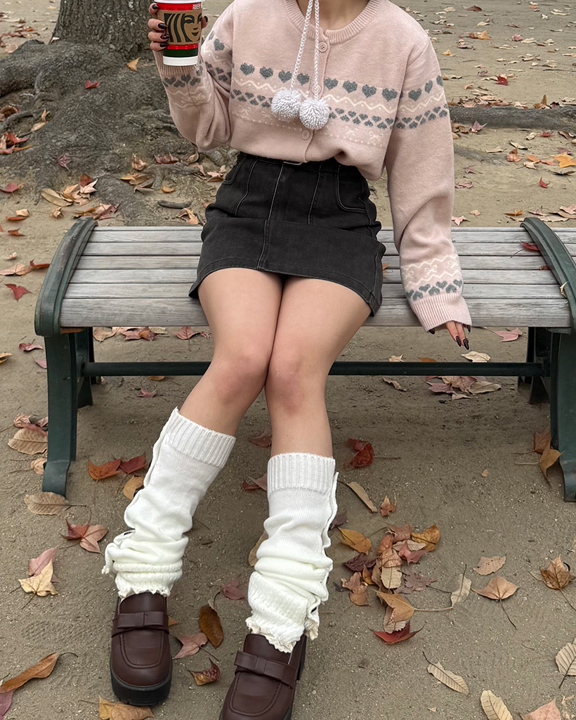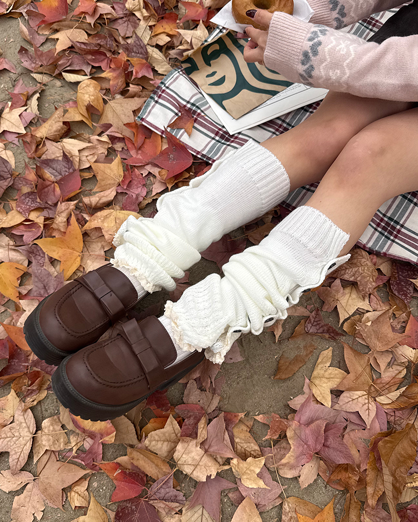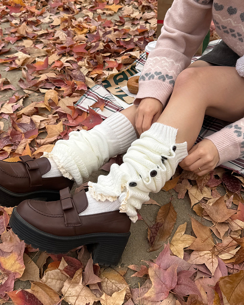 ボタンレースヘムニットレッグウォーマー