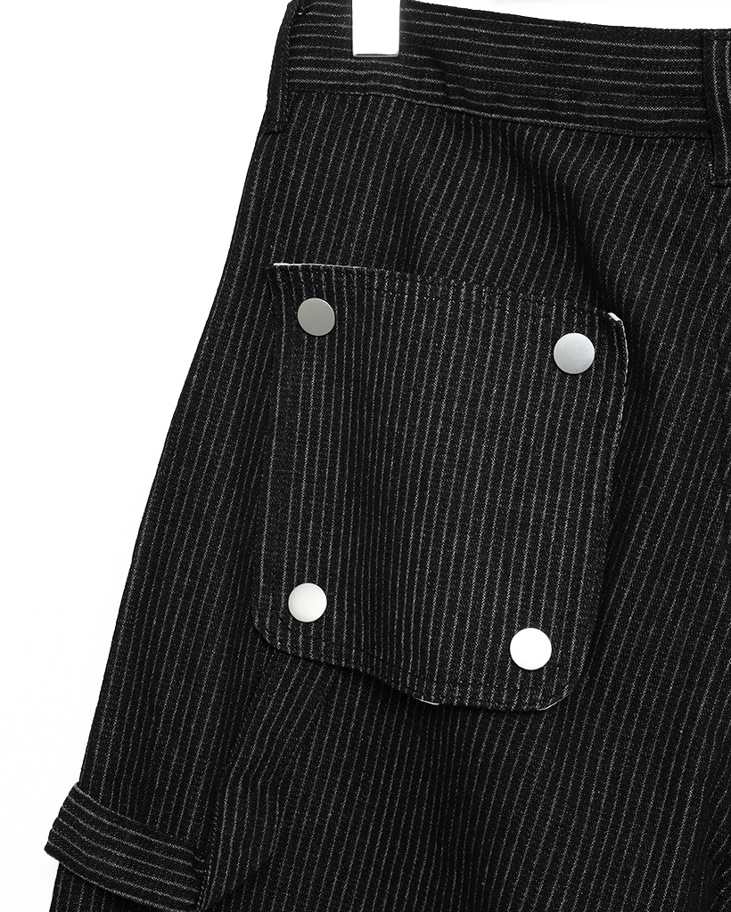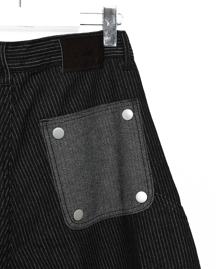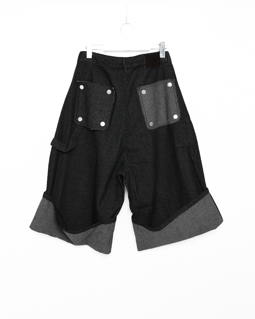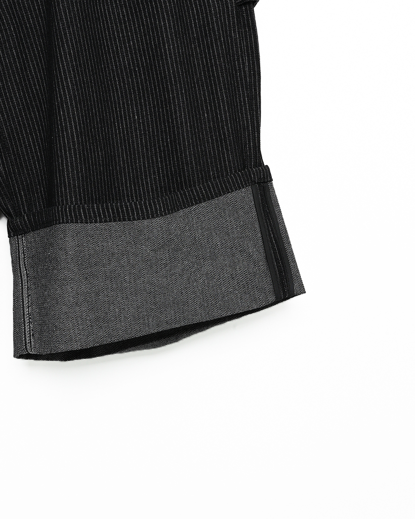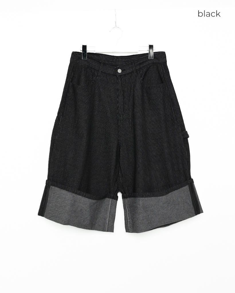 (ユニセックス)ストライプロールアップバミューダデニムパンツ