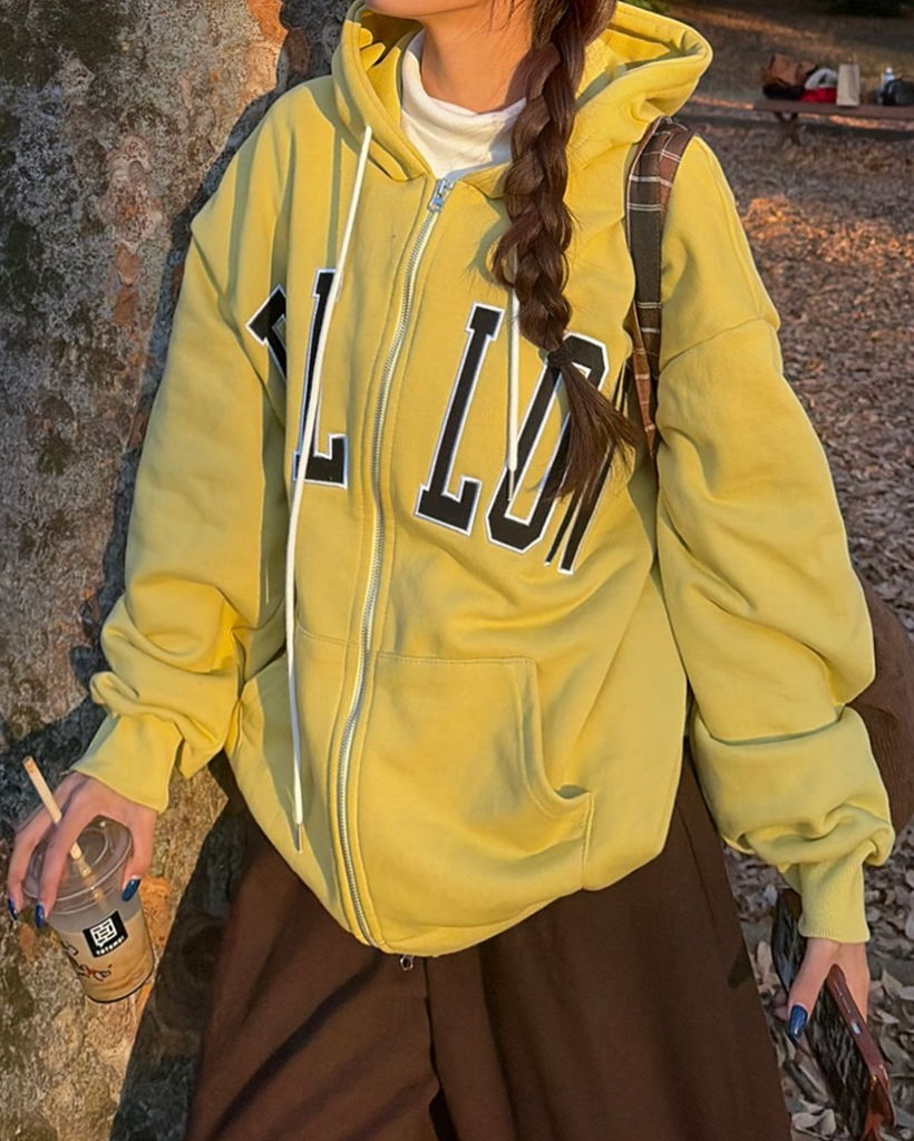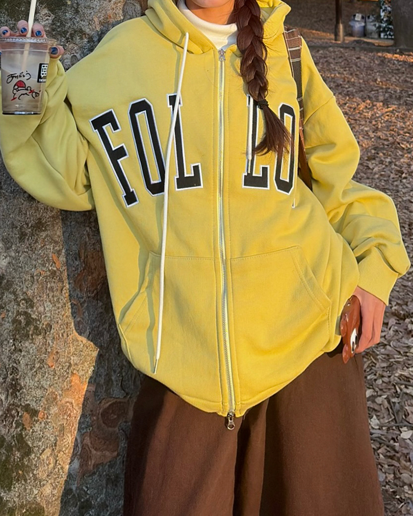 (ユニセックス)FOLLOWパッチダブルジップパーカー