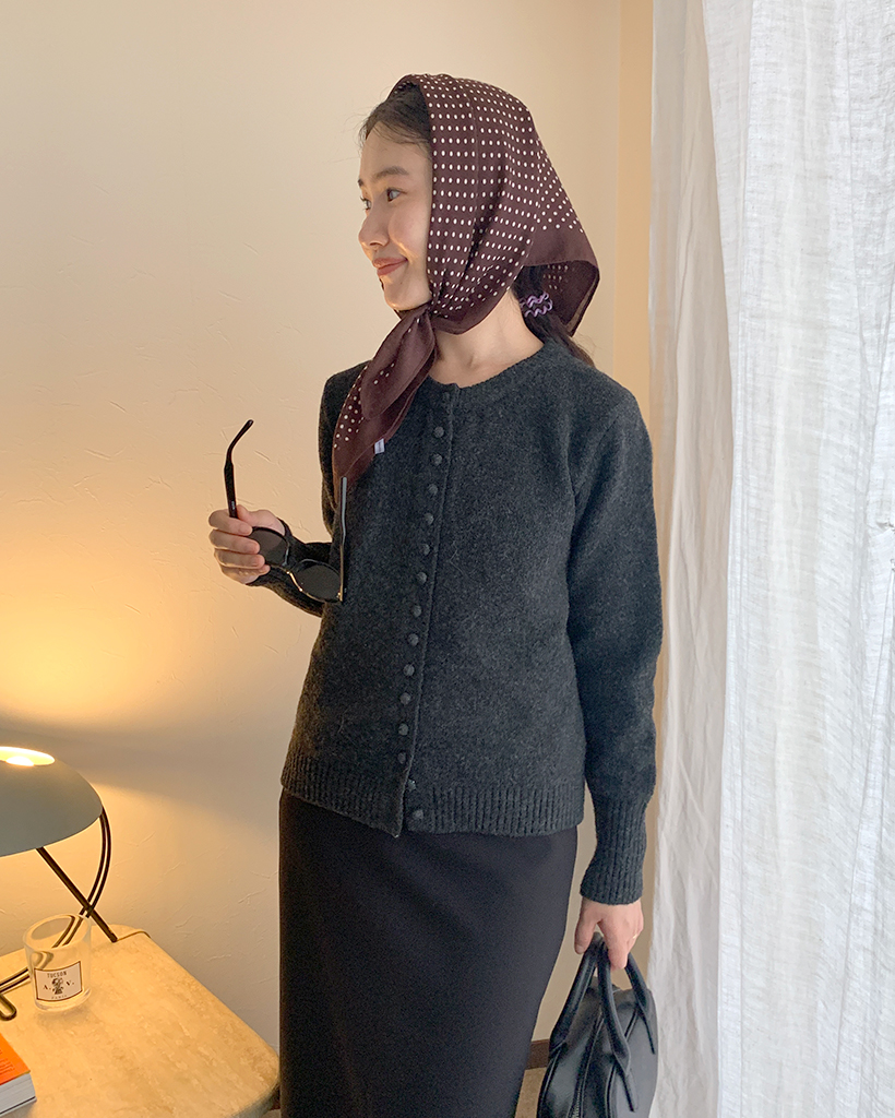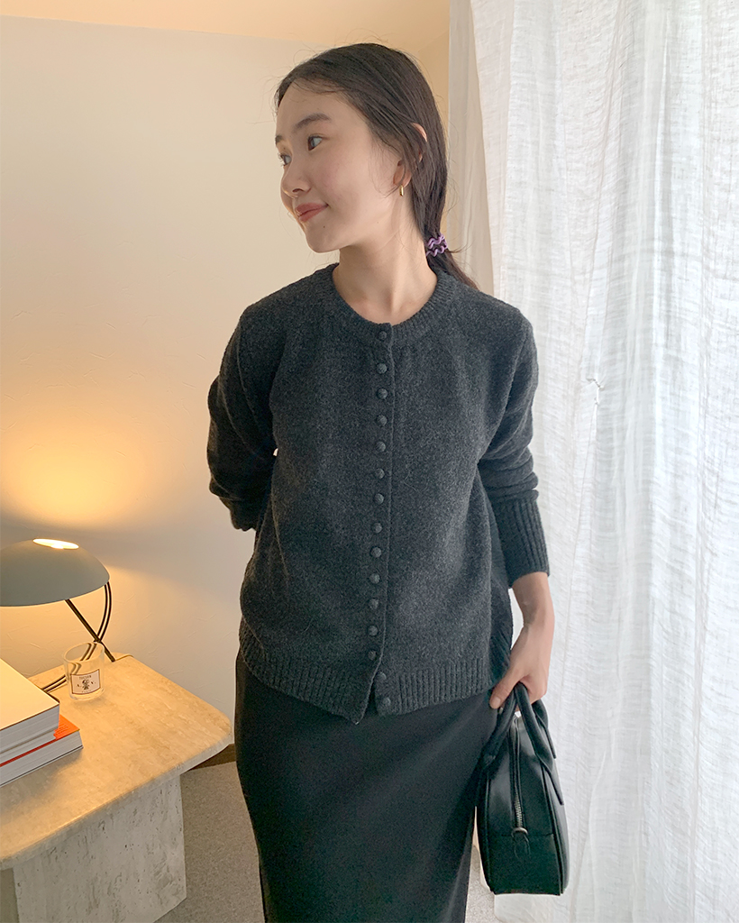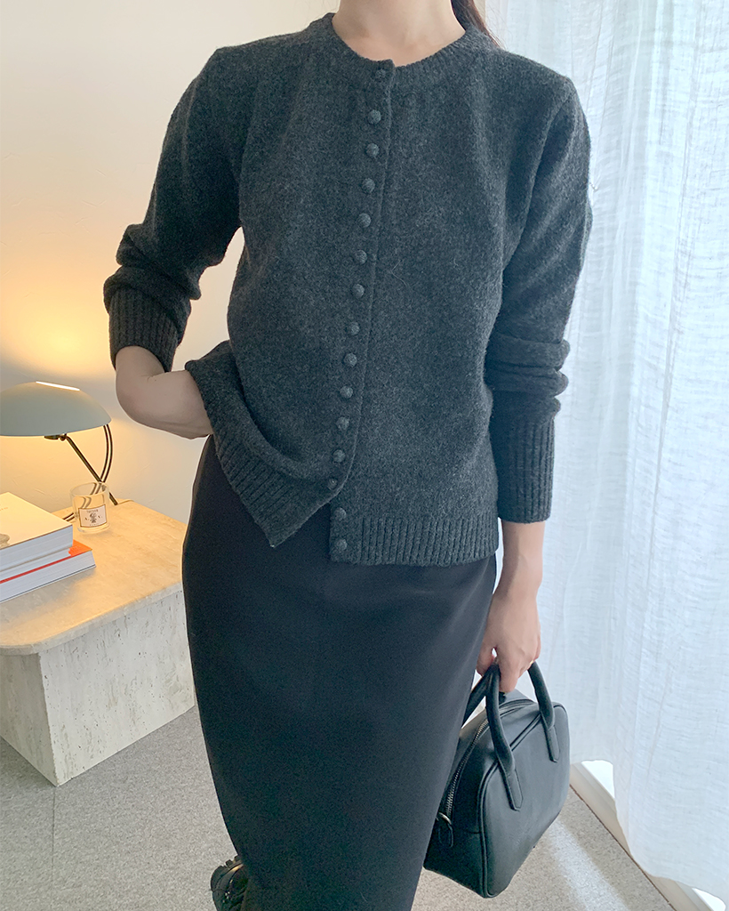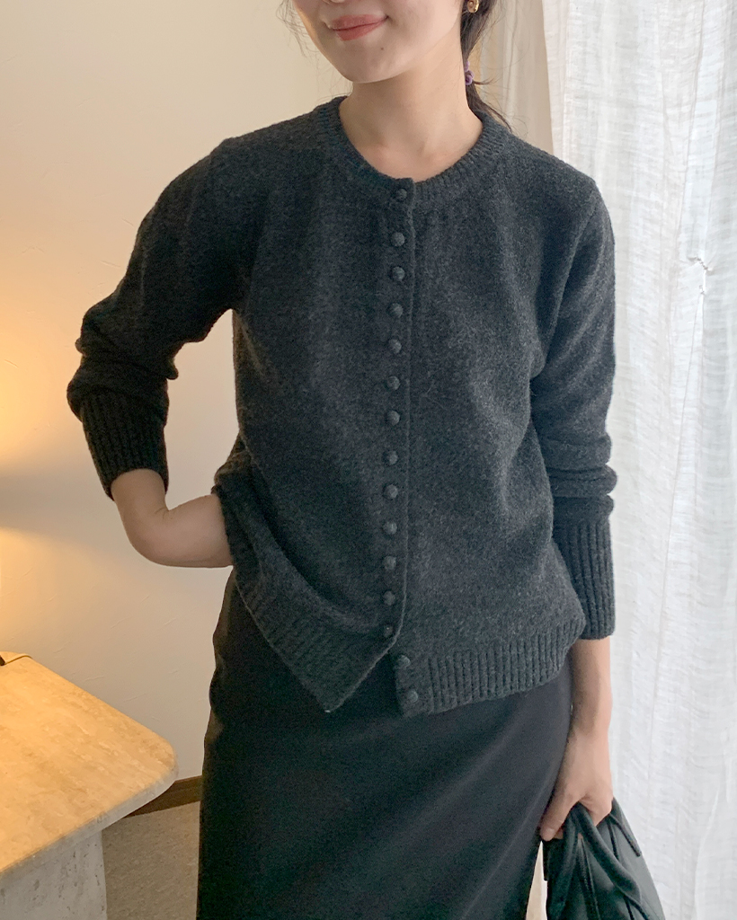 包みボタンモノニットカーディガン