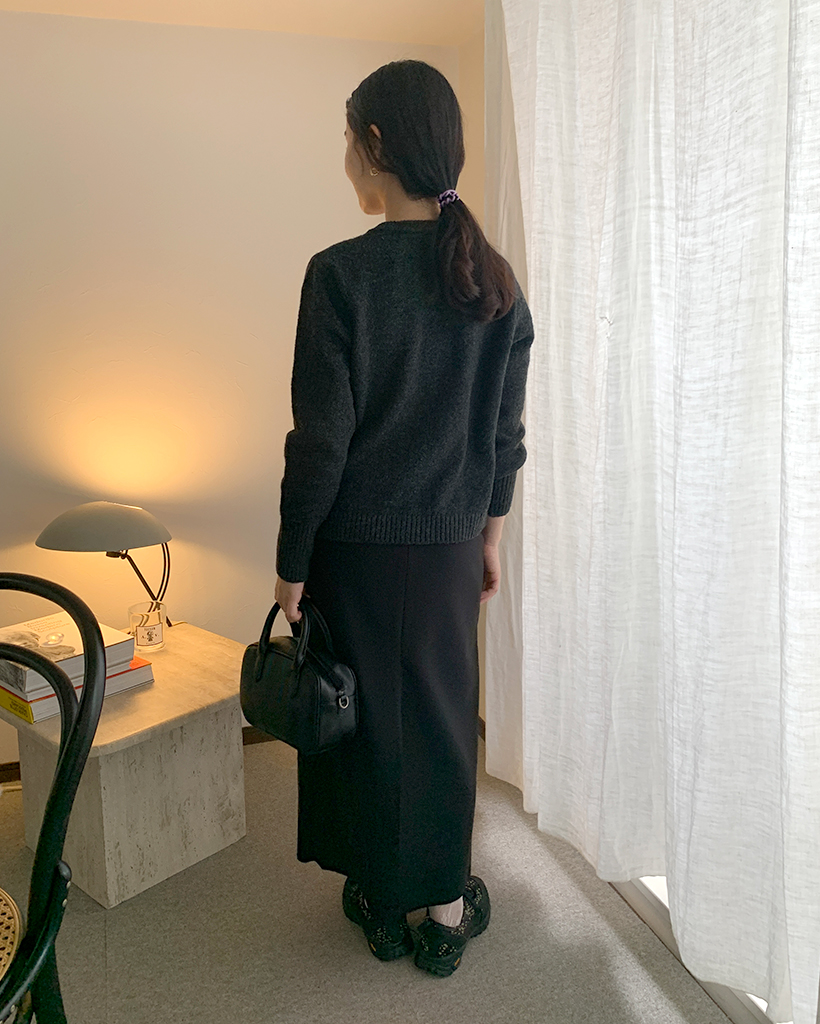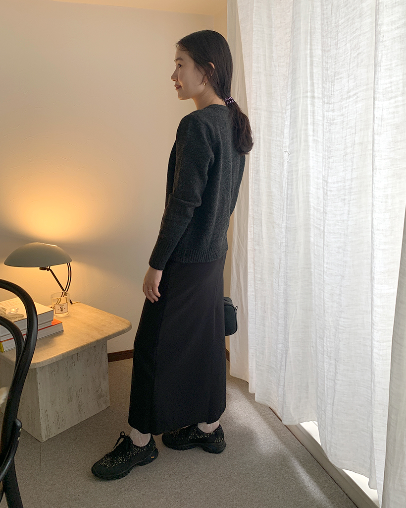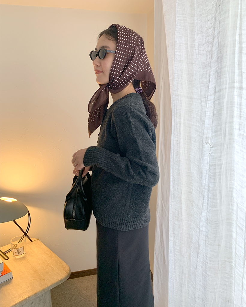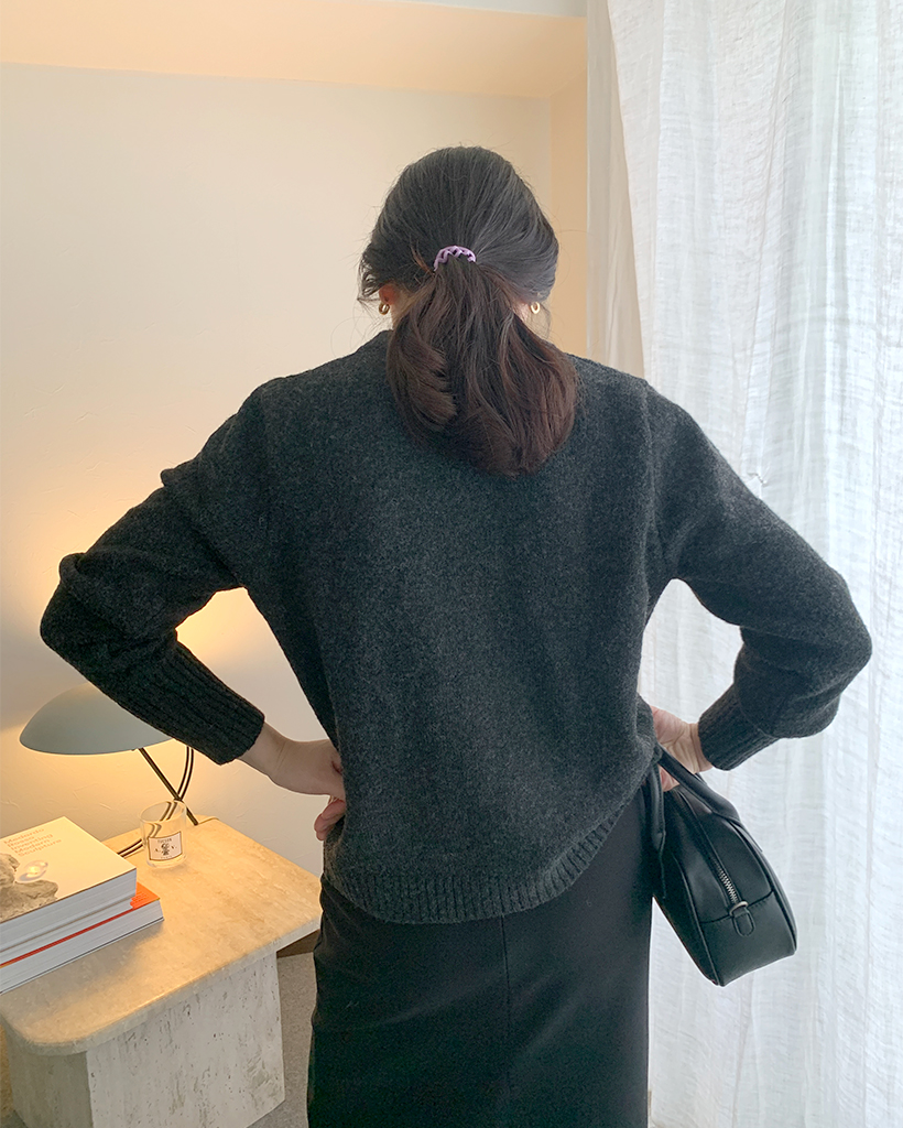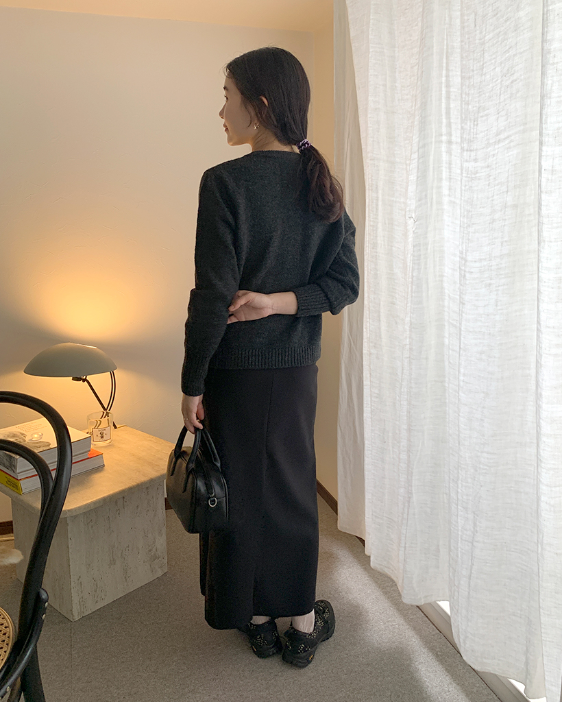 包みボタンモノニットカーディガン