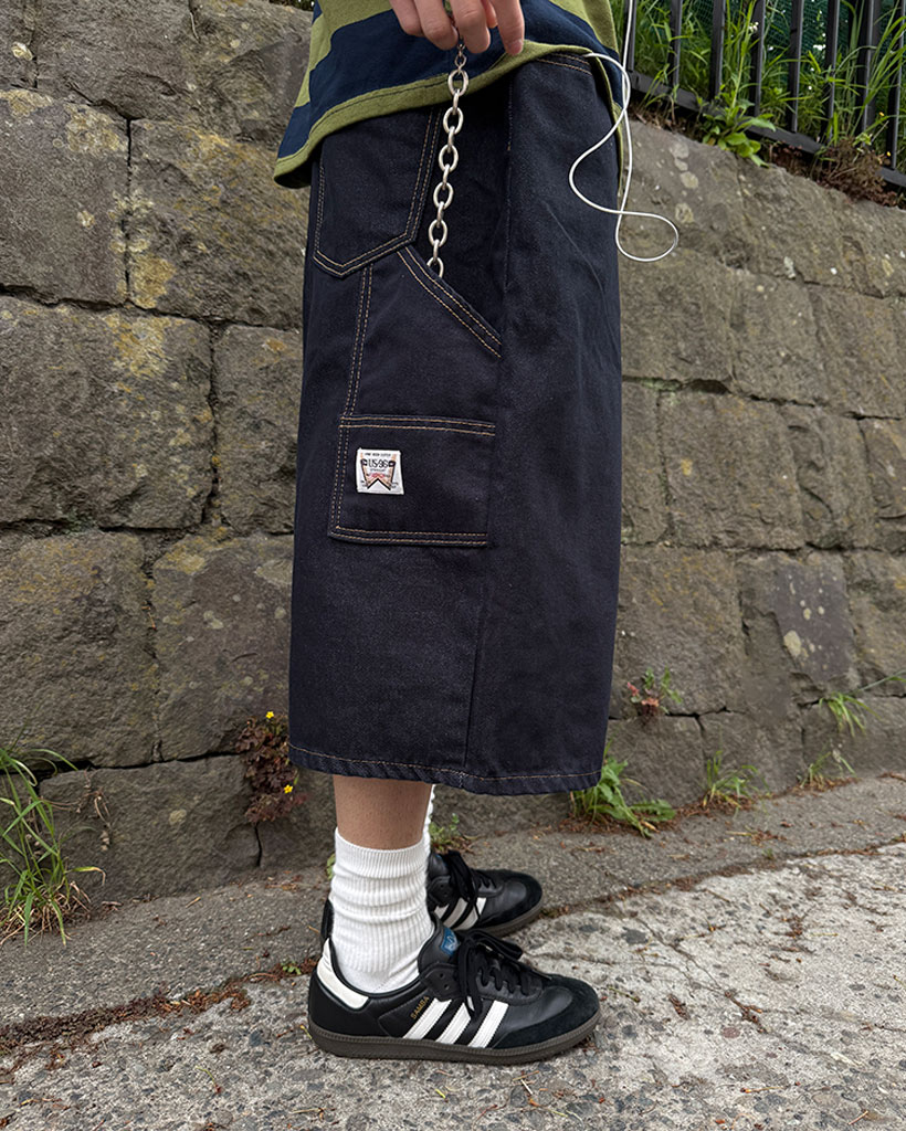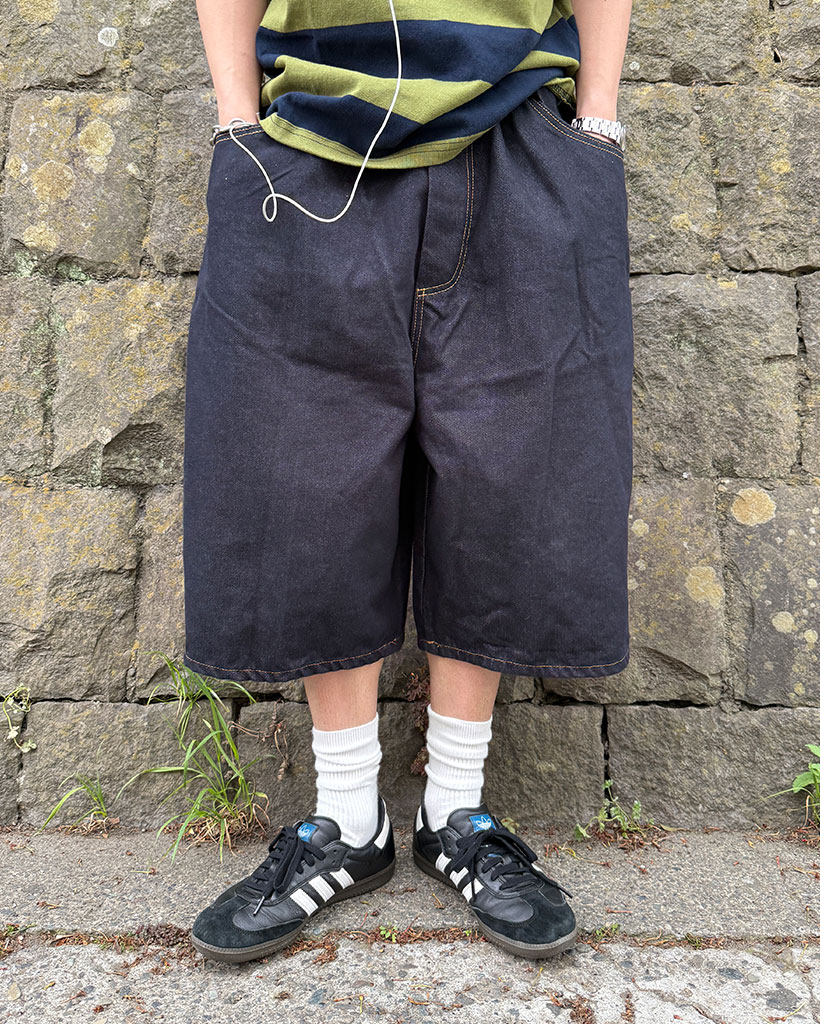 パッチデザインデニムバミューダパンツ