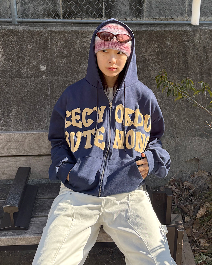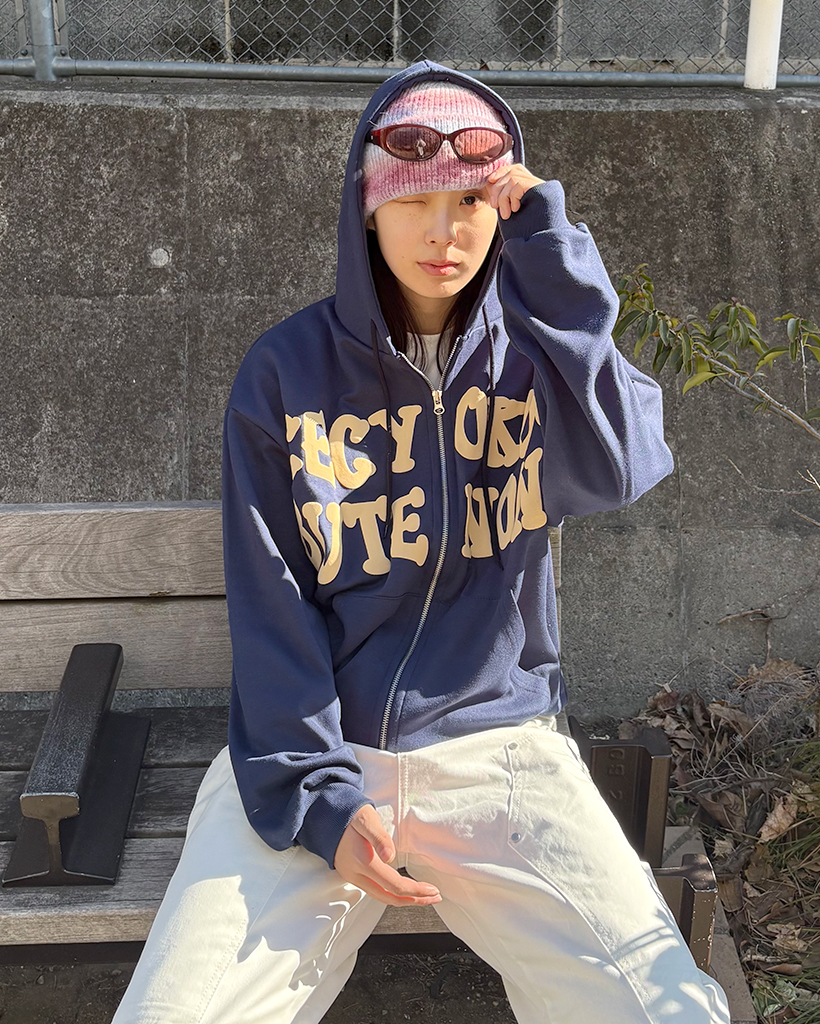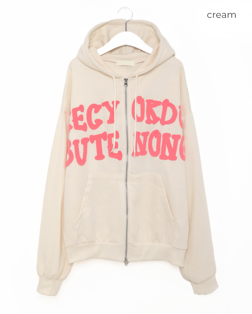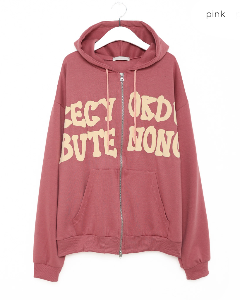 オーバーサイズレタリング2WAYフーディージップアップ