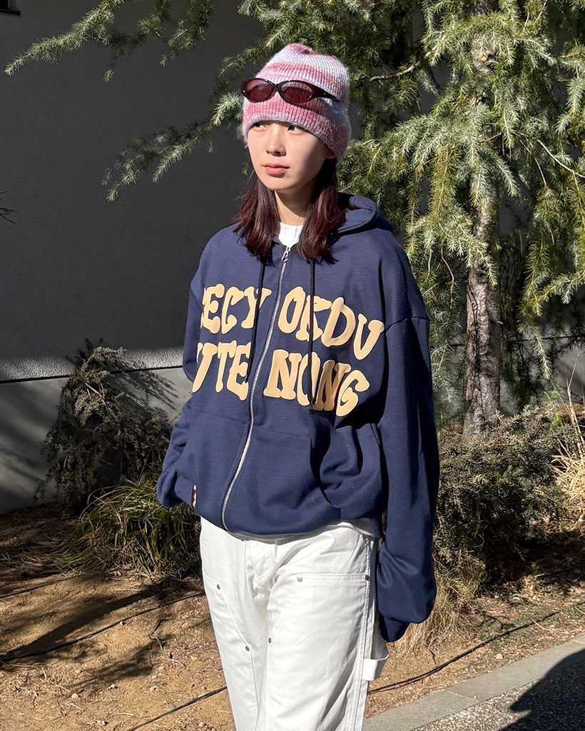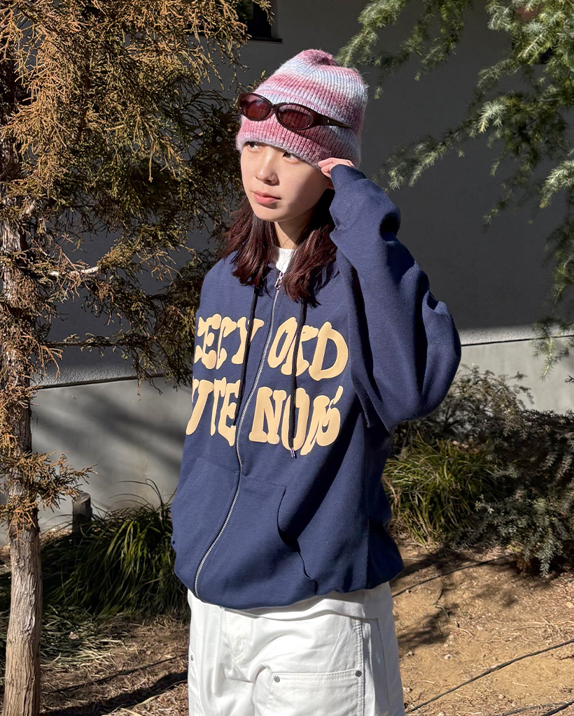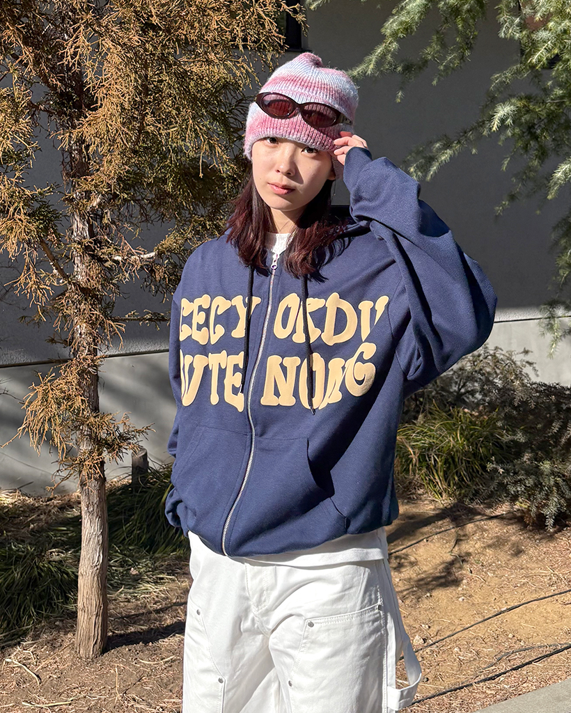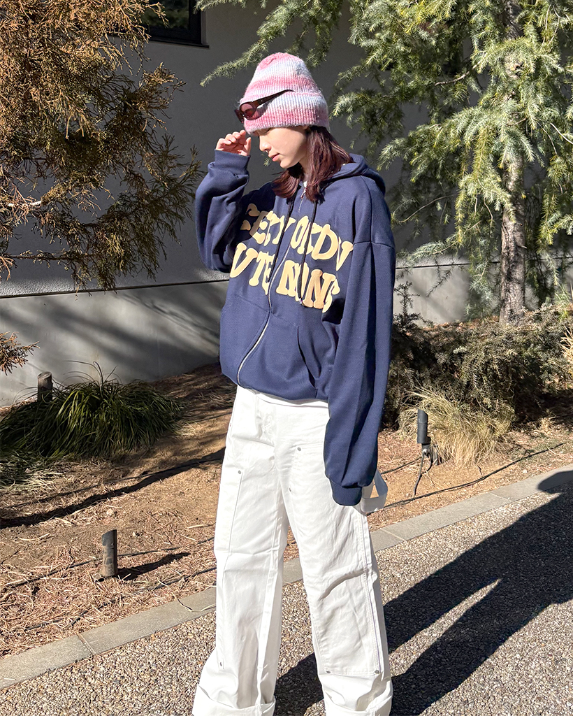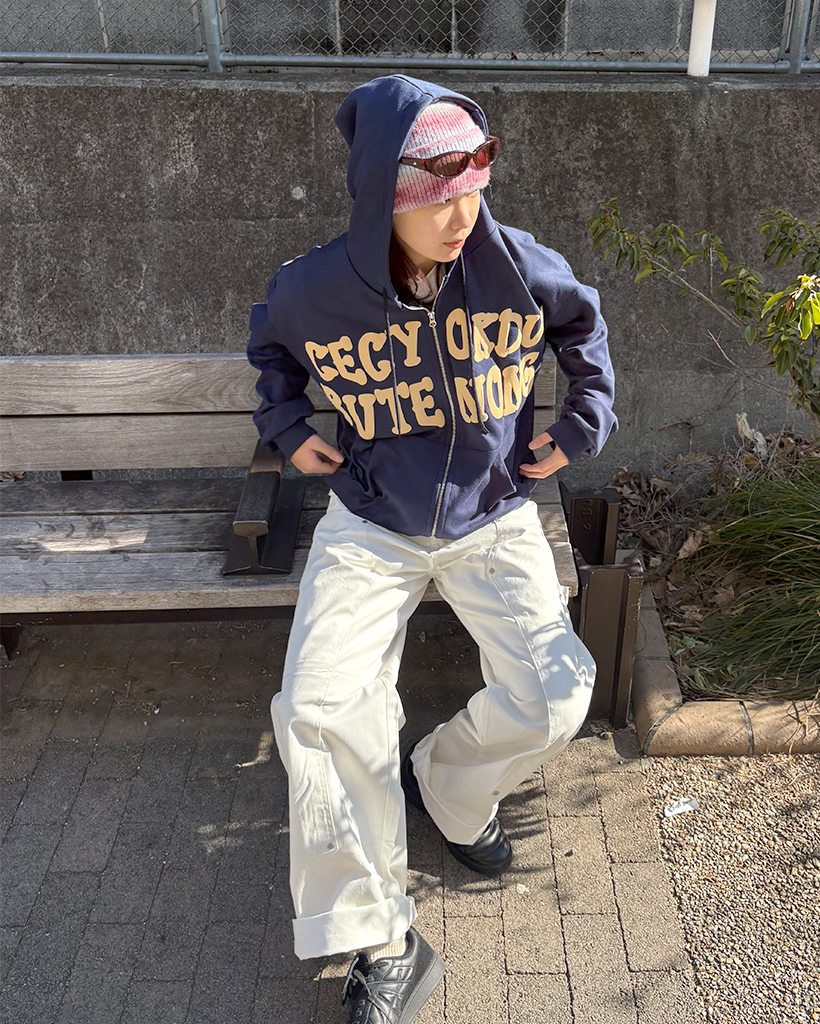 オーバーサイズレタリング2WAYフーディージップアップ