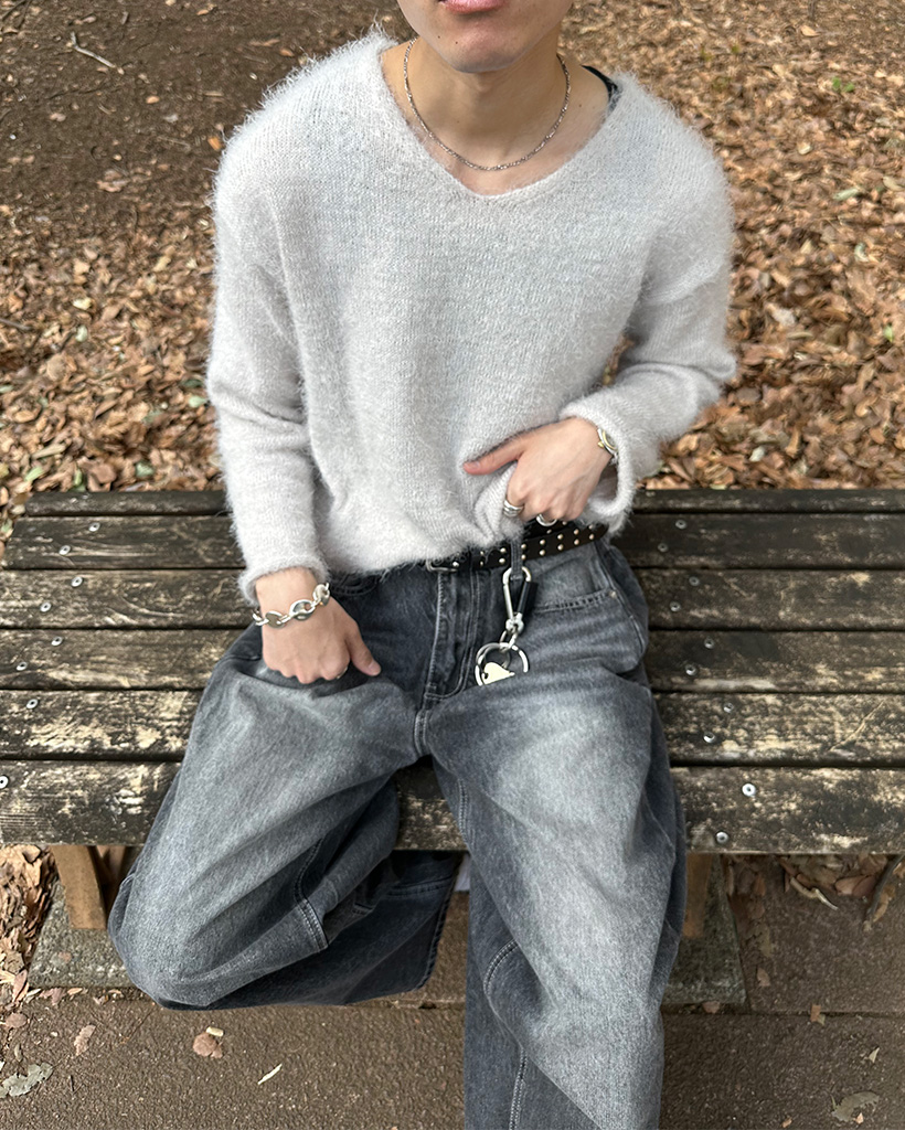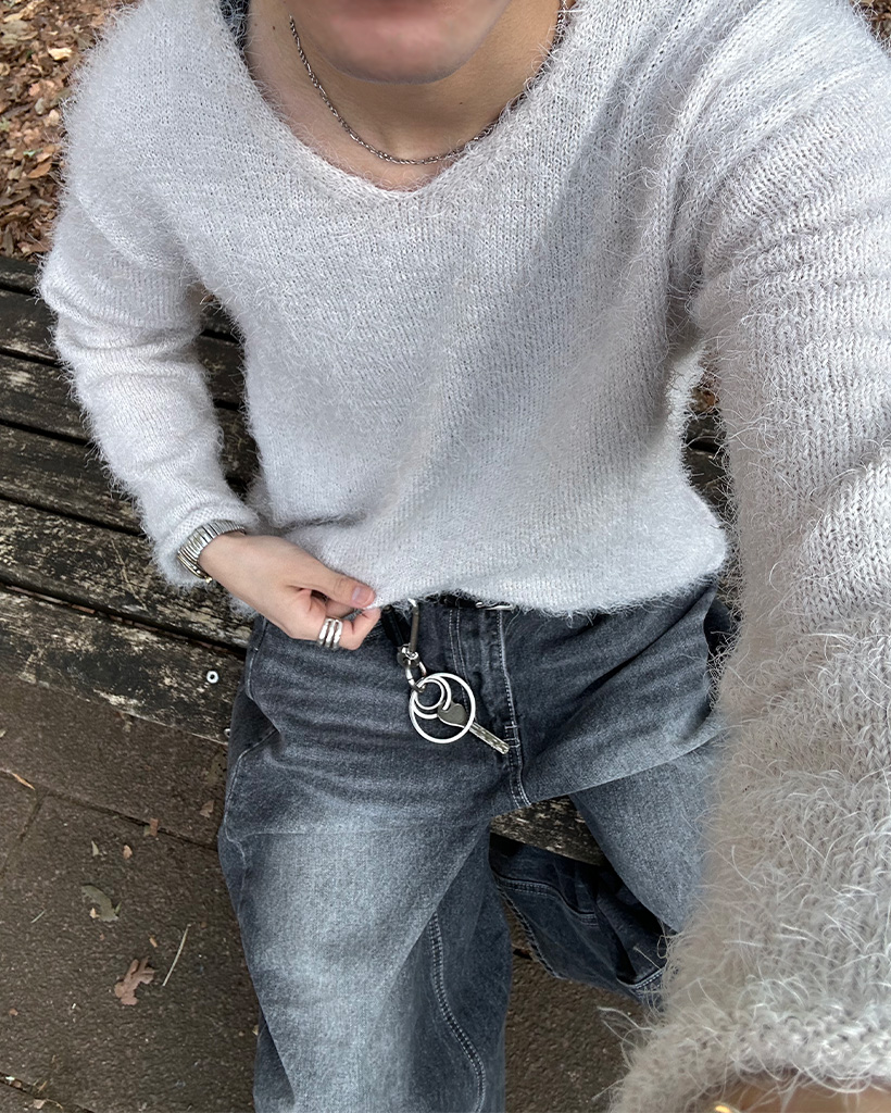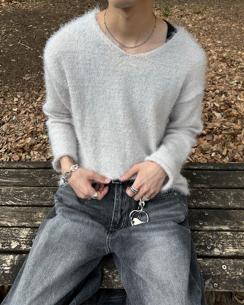 (ユニセックス)Vネックソフトニット