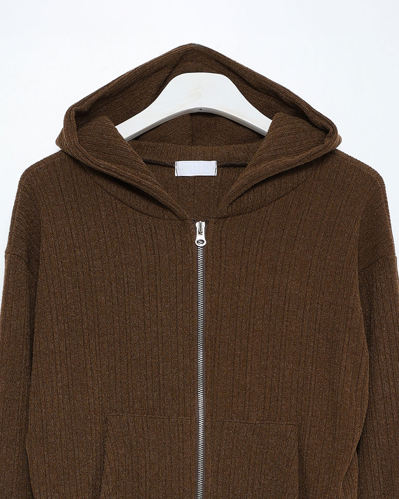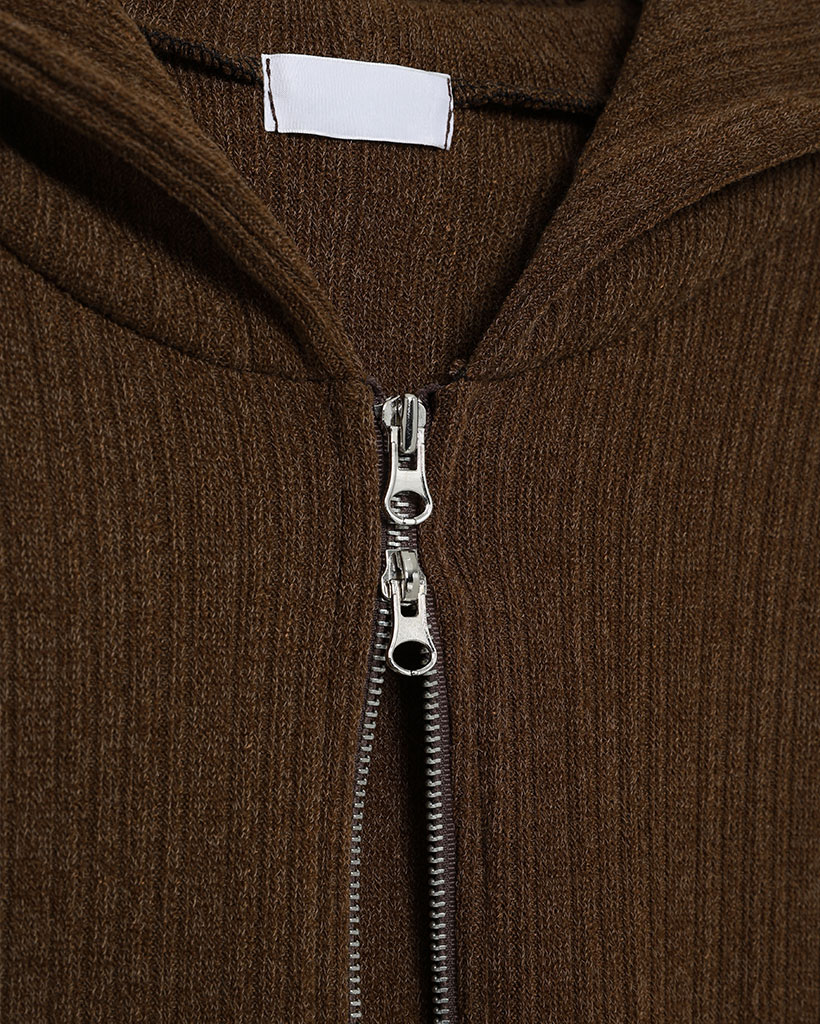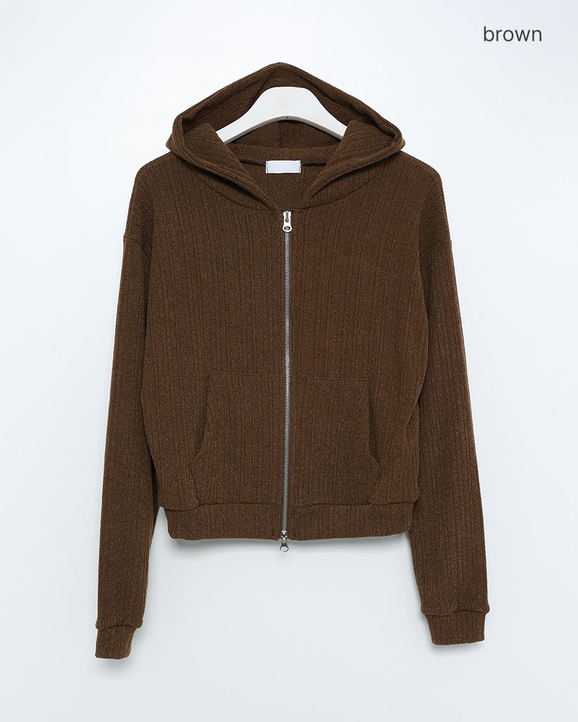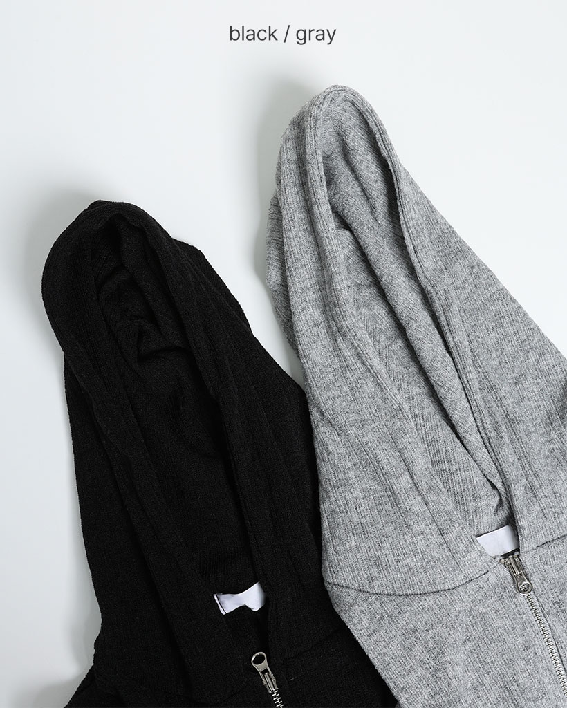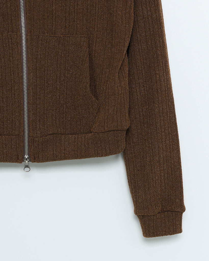 リブニットセミクロップドダブルジップパーカー