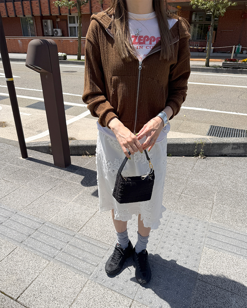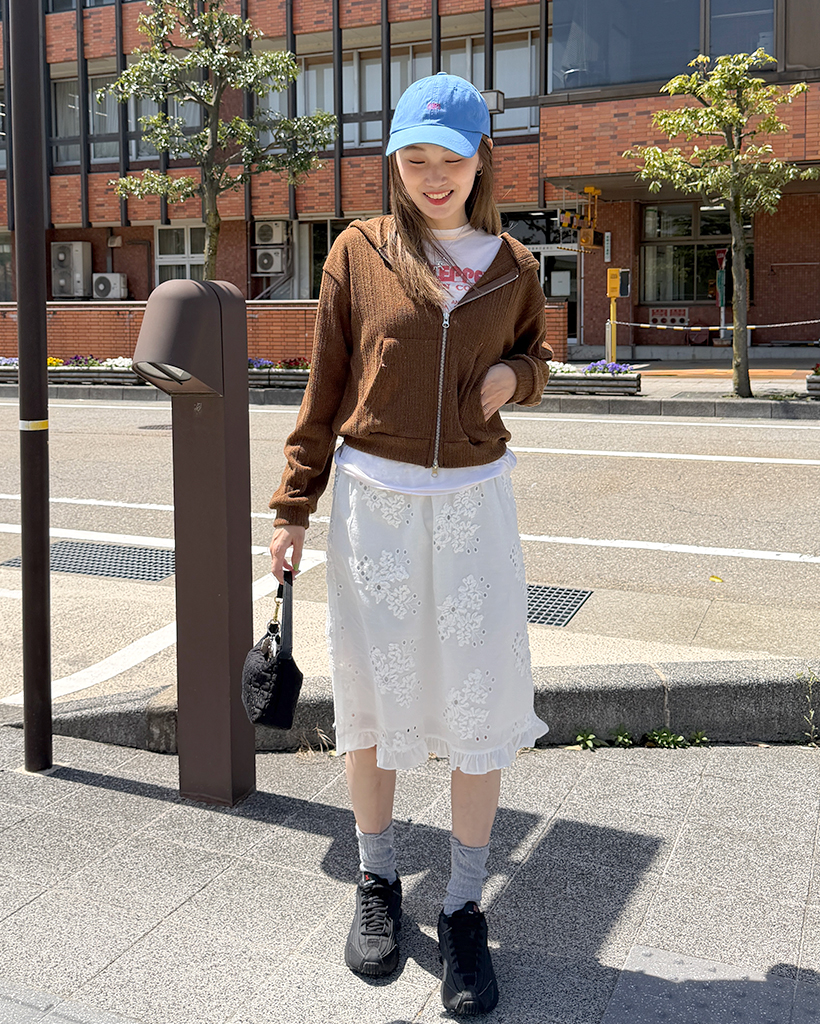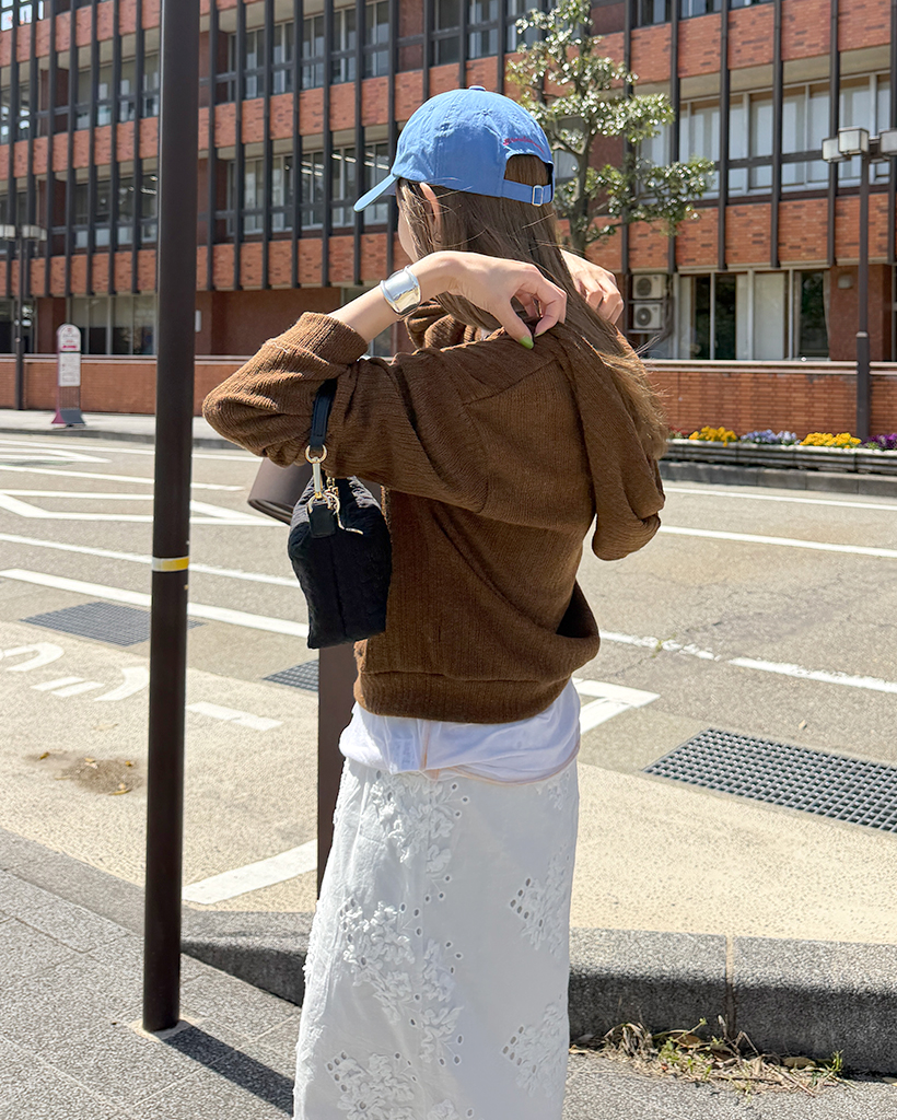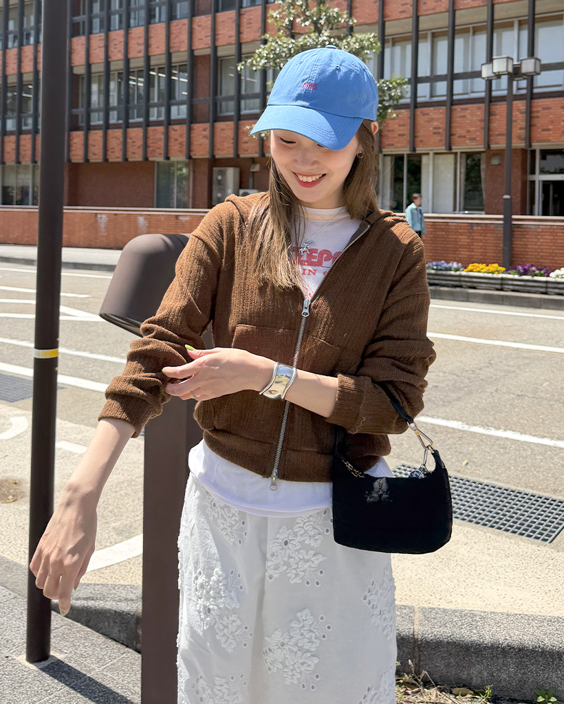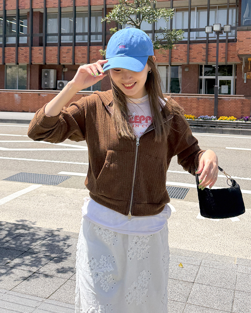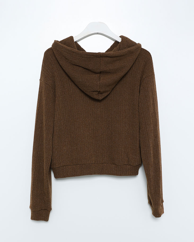 リブニットセミクロップドダブルジップパーカー