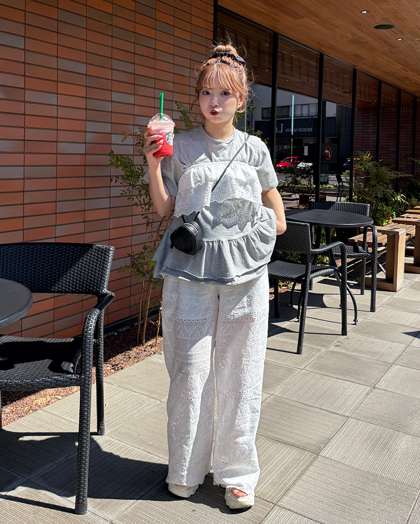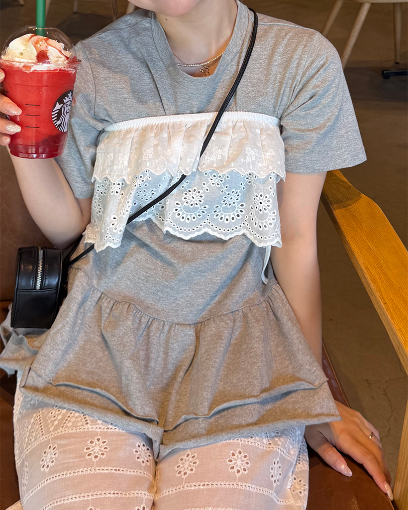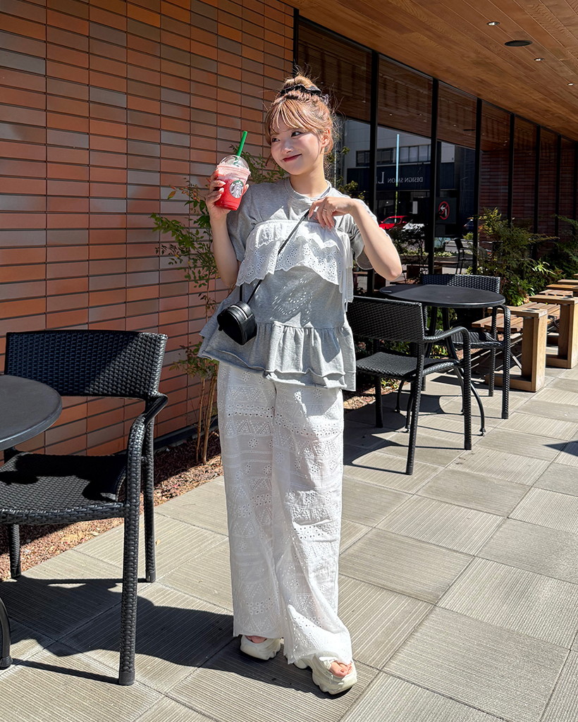 レースパンチングレイヤードスカート