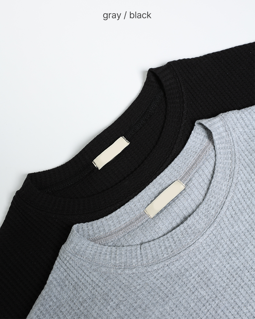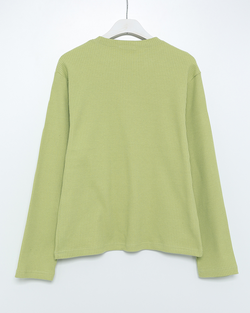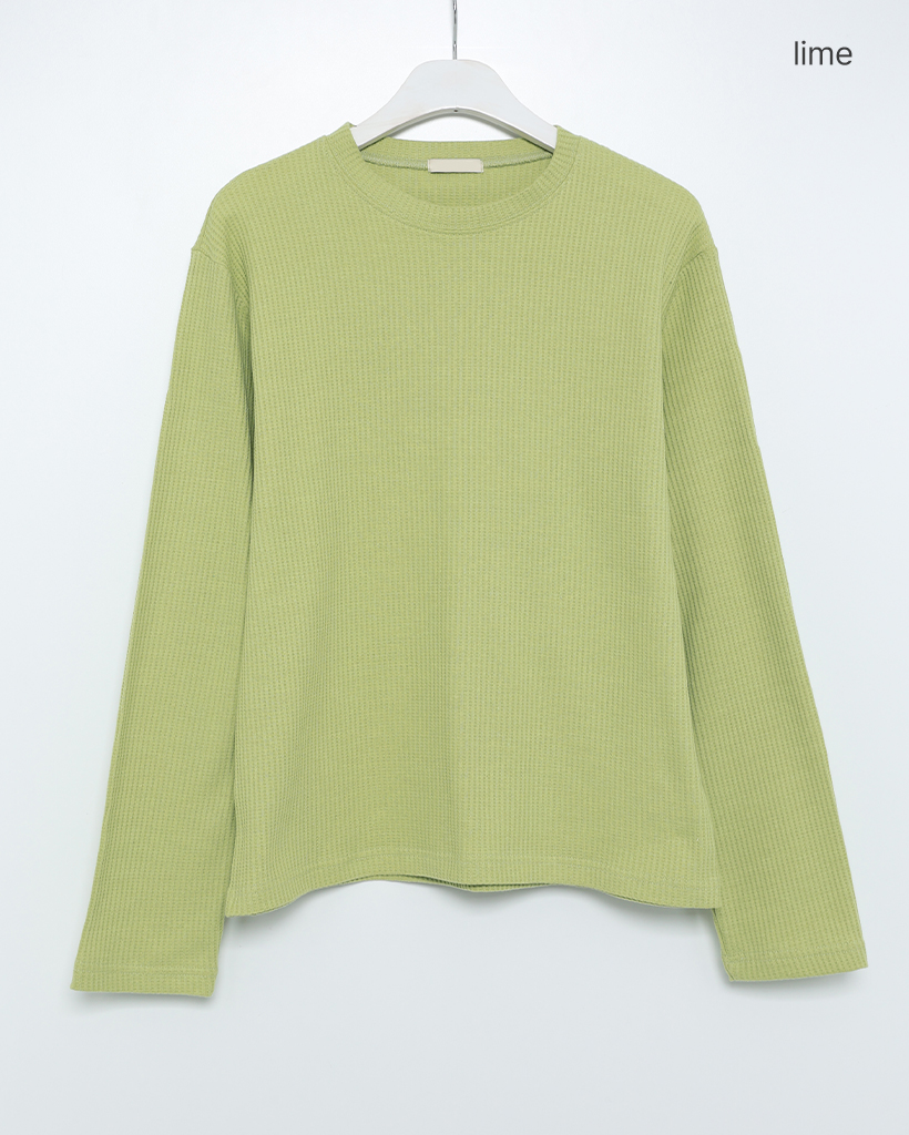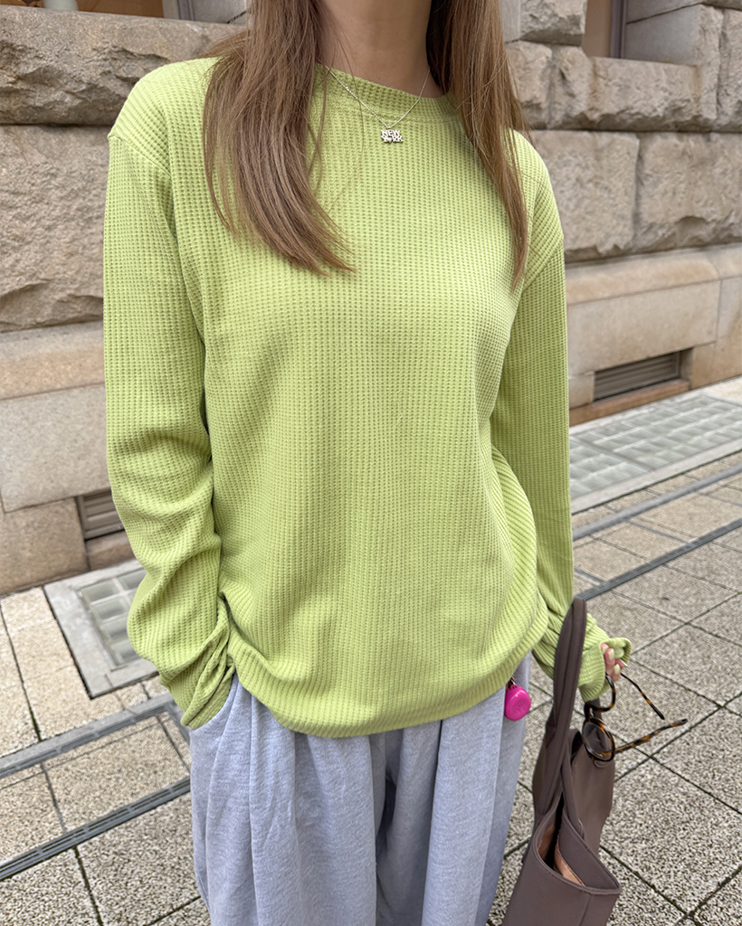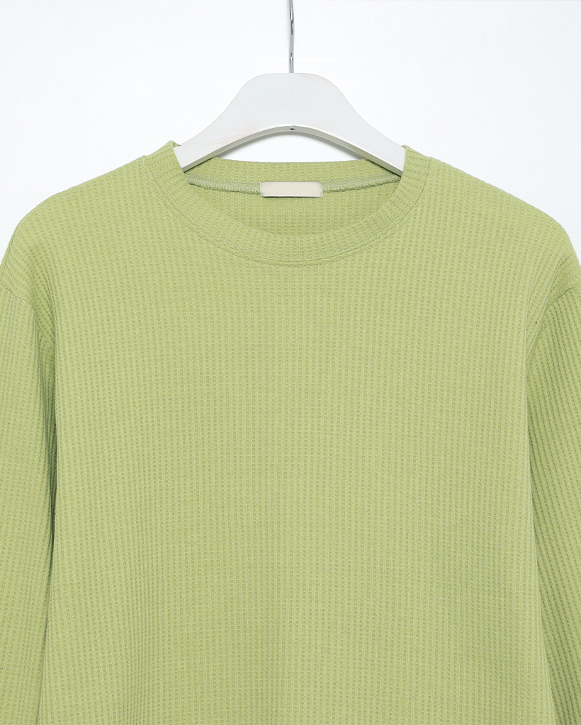 ラウンドネックワッフルロングTシャツ