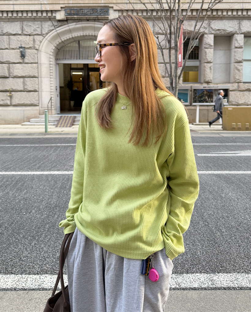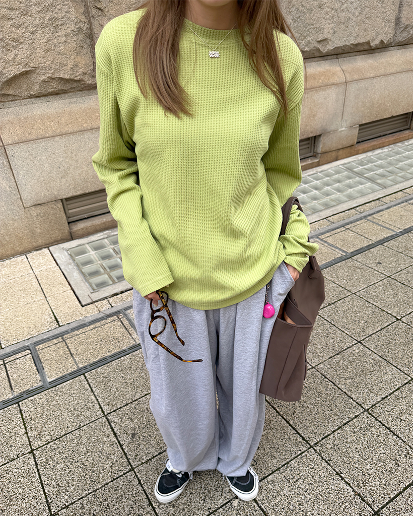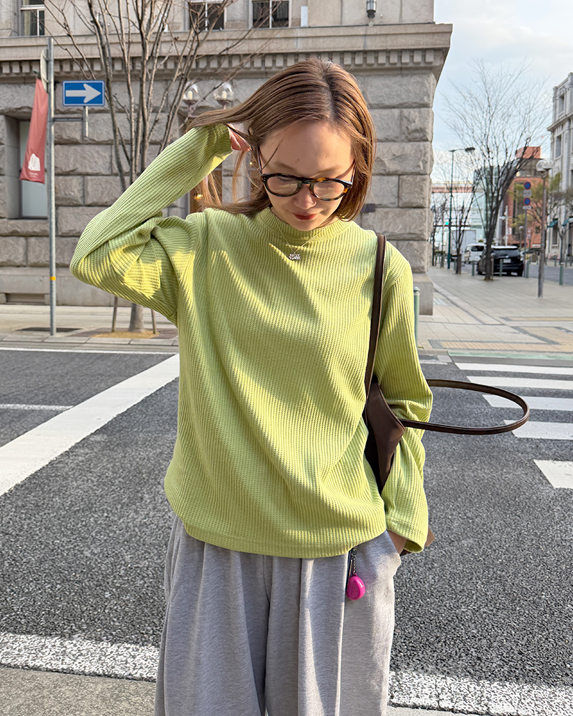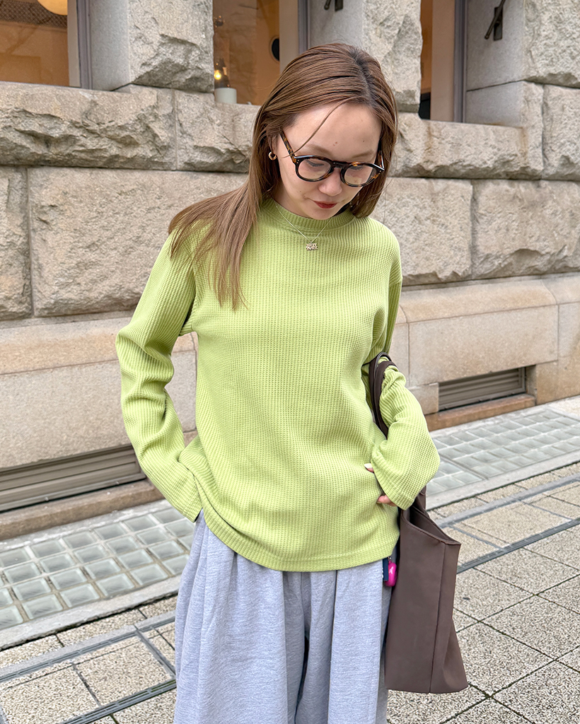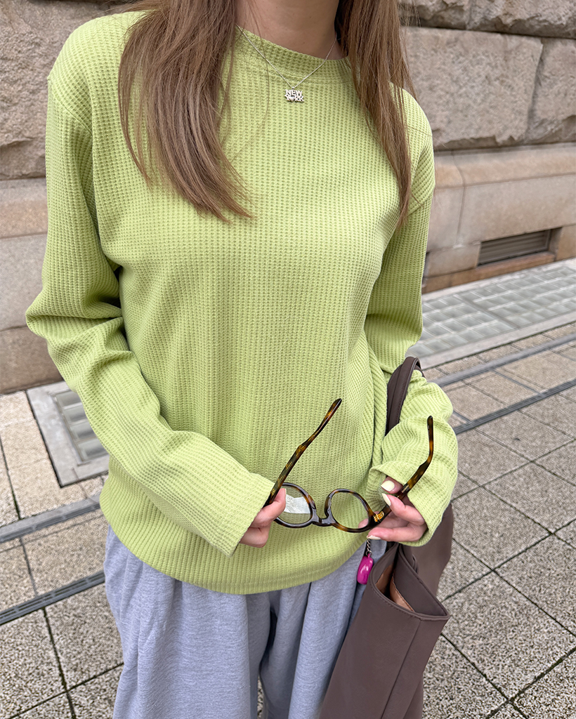 ラウンドネックワッフルロングTシャツ