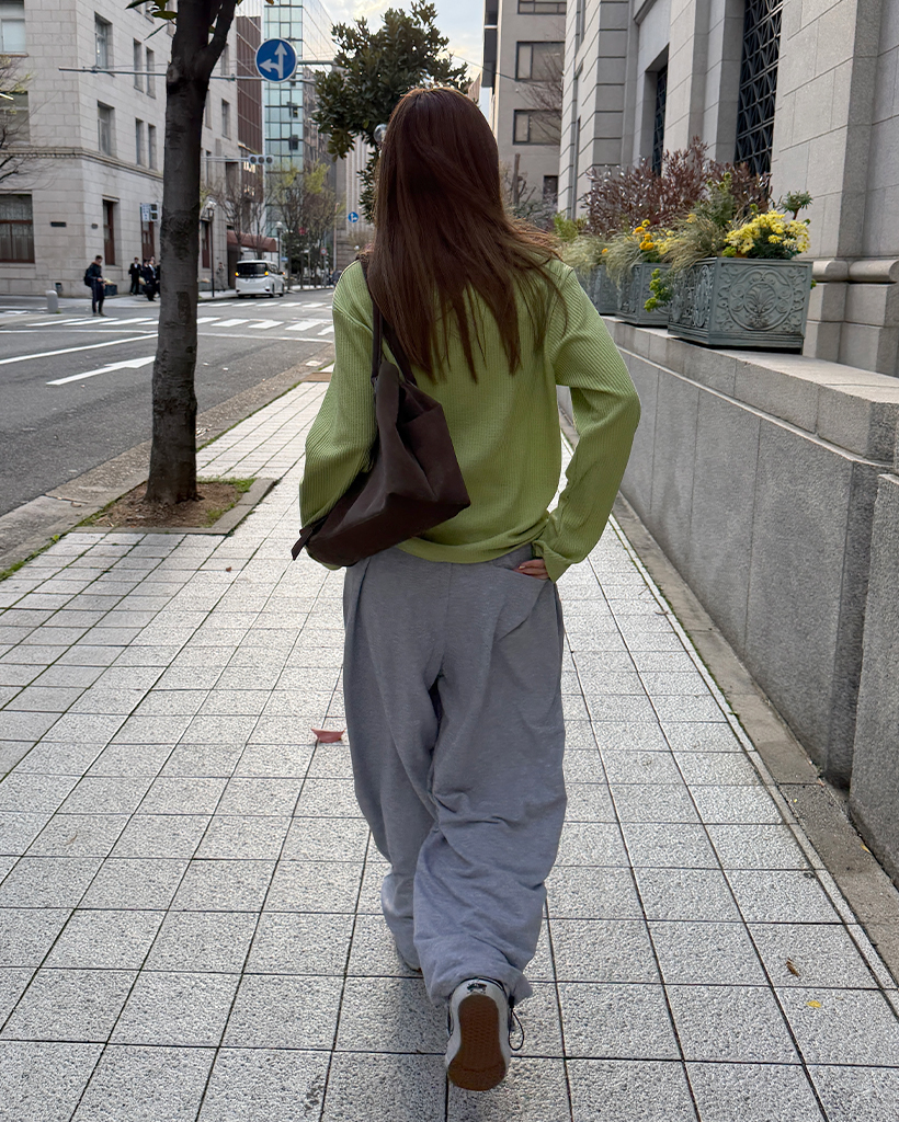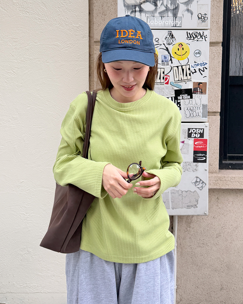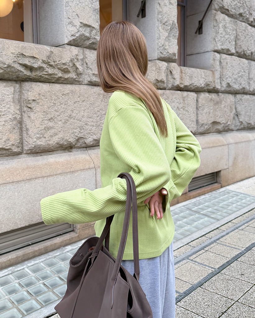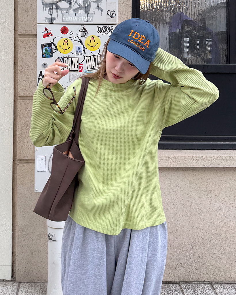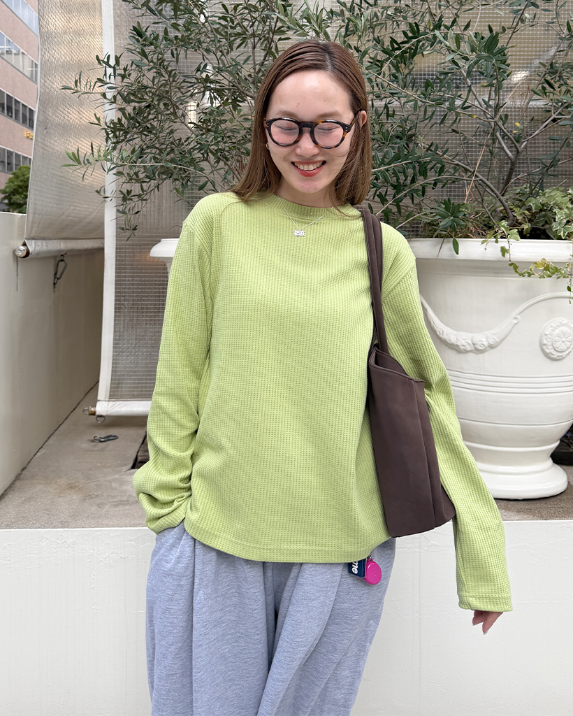 ラウンドネックワッフルロングTシャツ