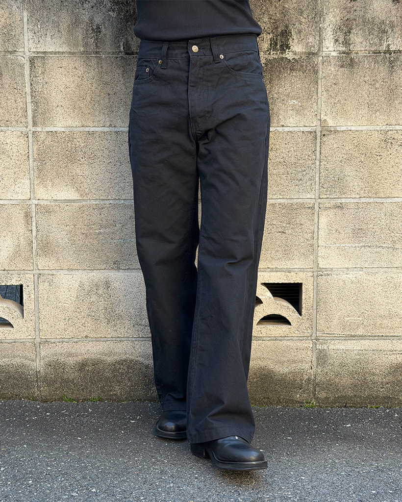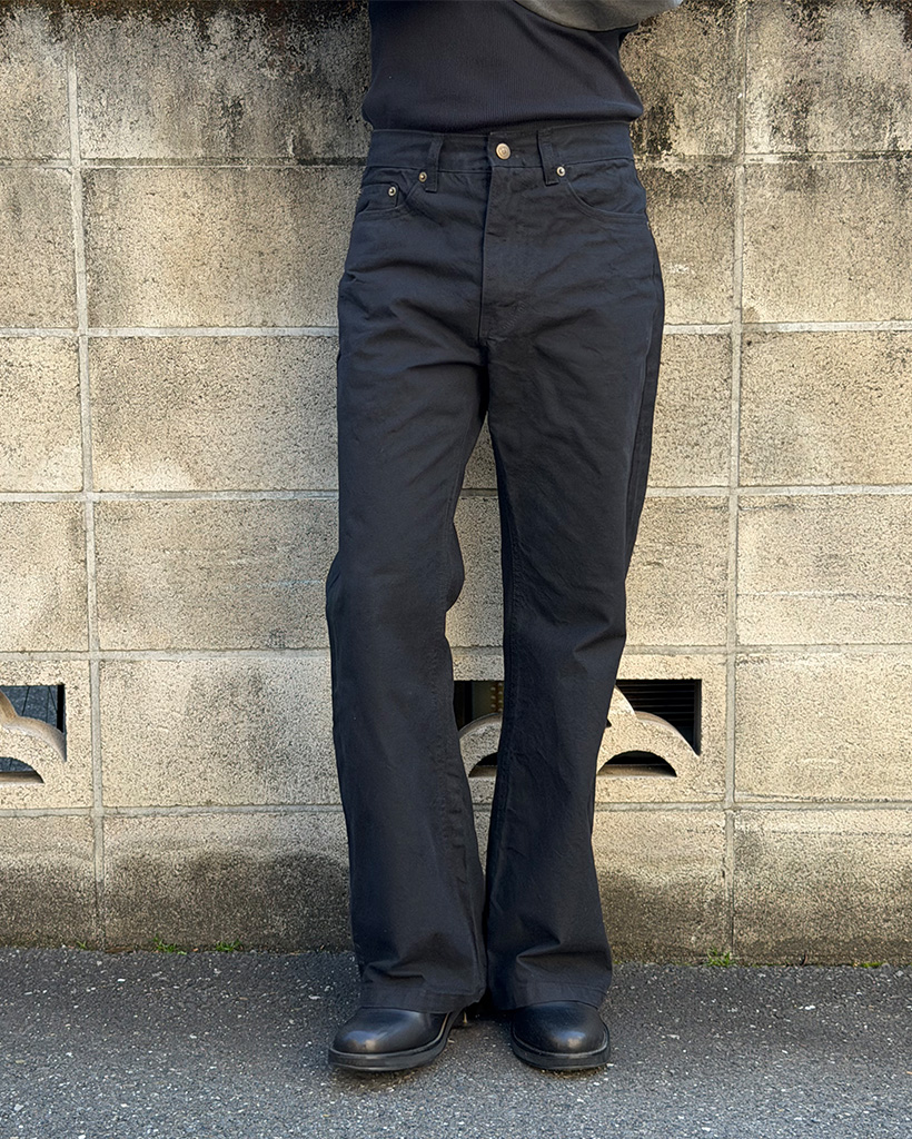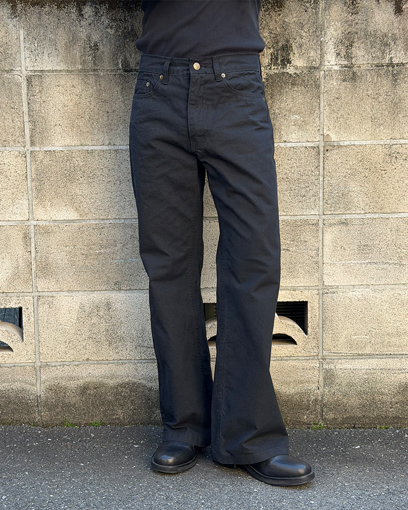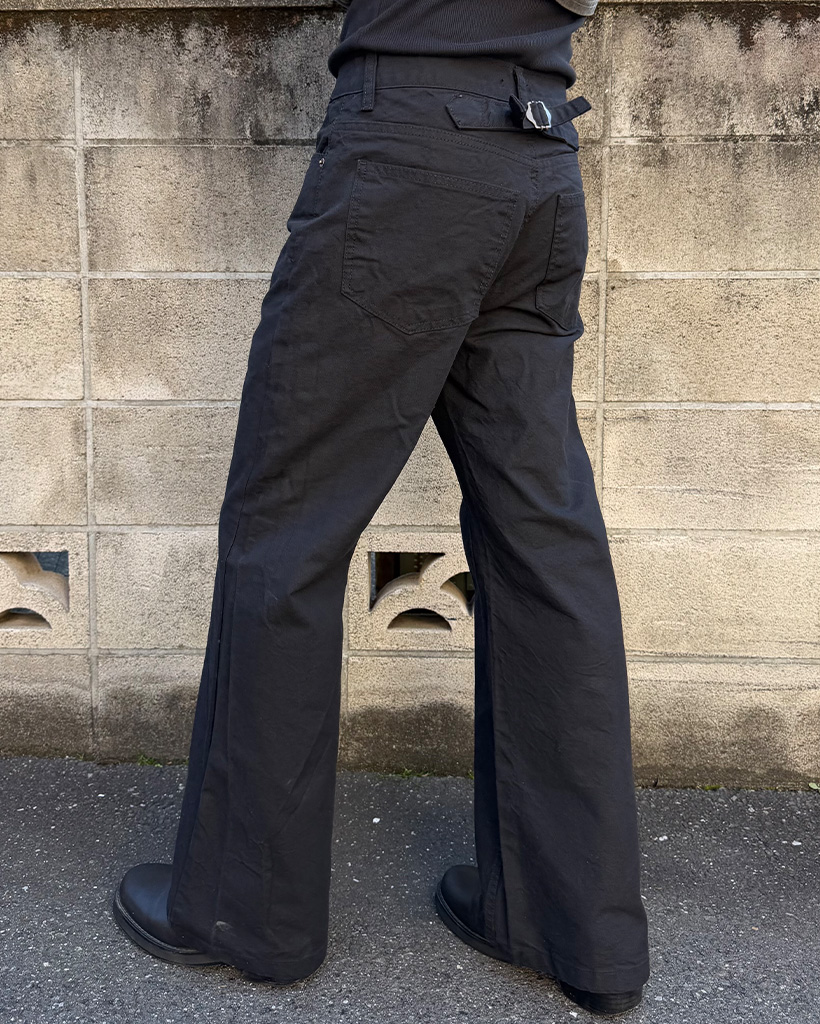 セミフレアフィットバックベルトポイントコットンパンツ