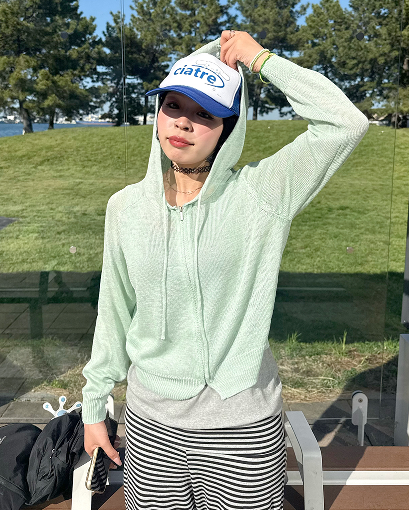 パステルサマーニットジップアップパーカー