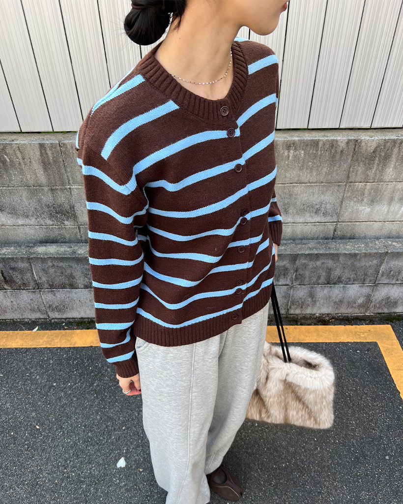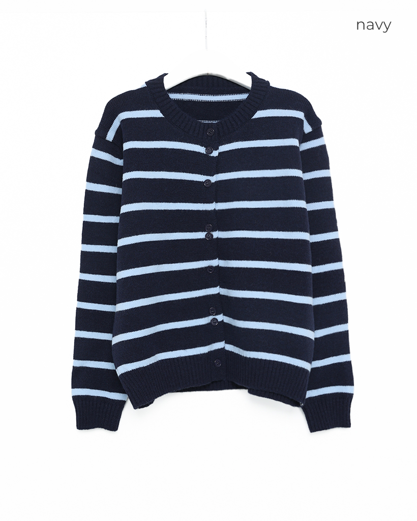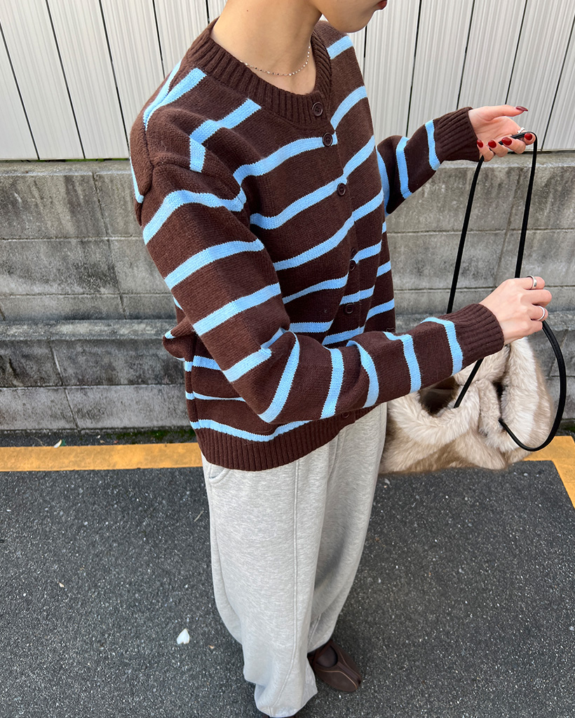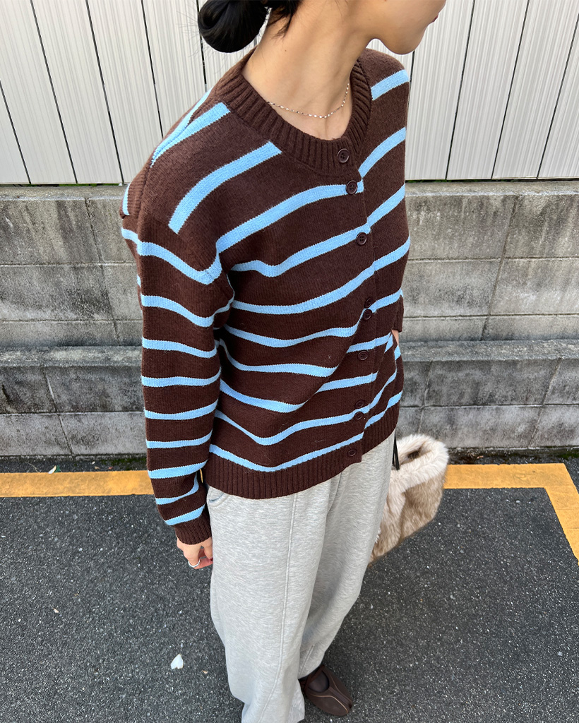 ボーダーラウンドネック長袖カーディガン