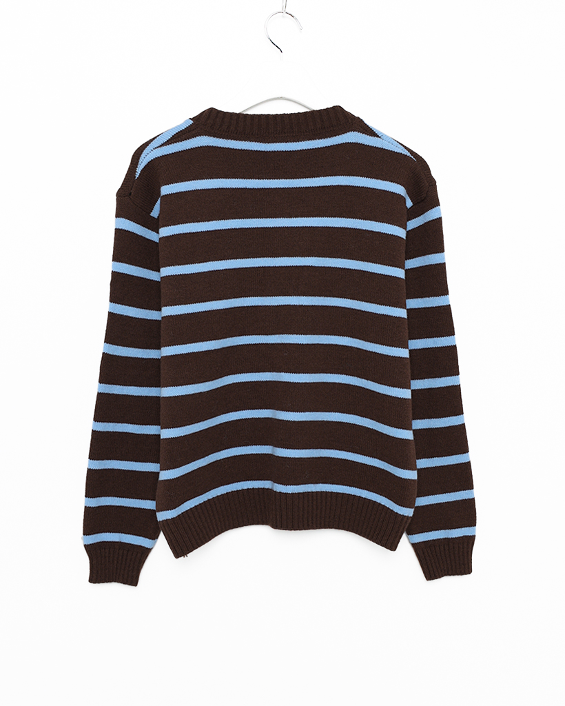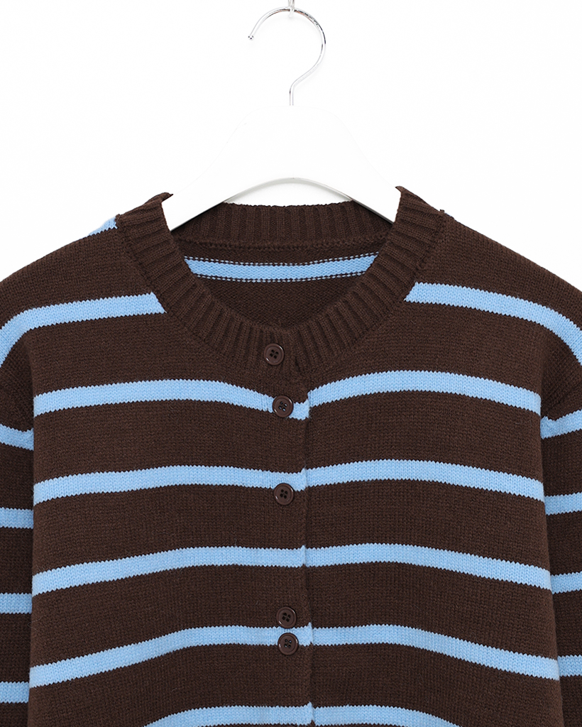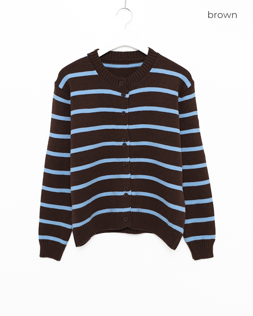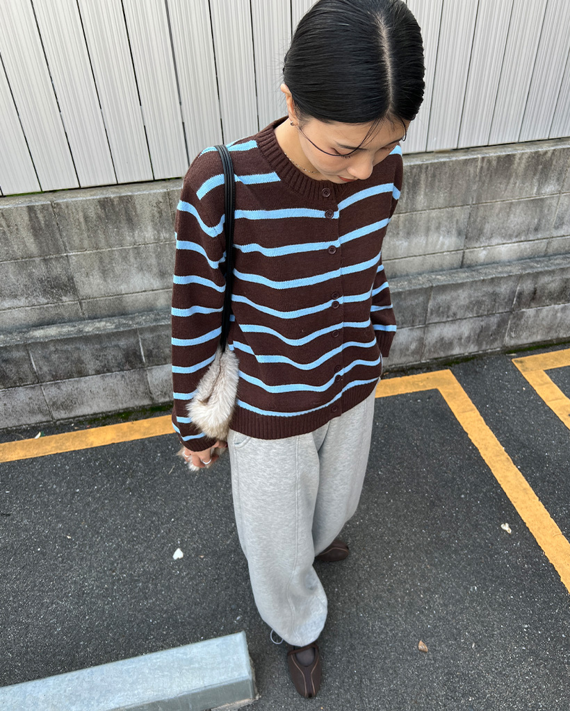 ボーダーラウンドネック長袖カーディガン