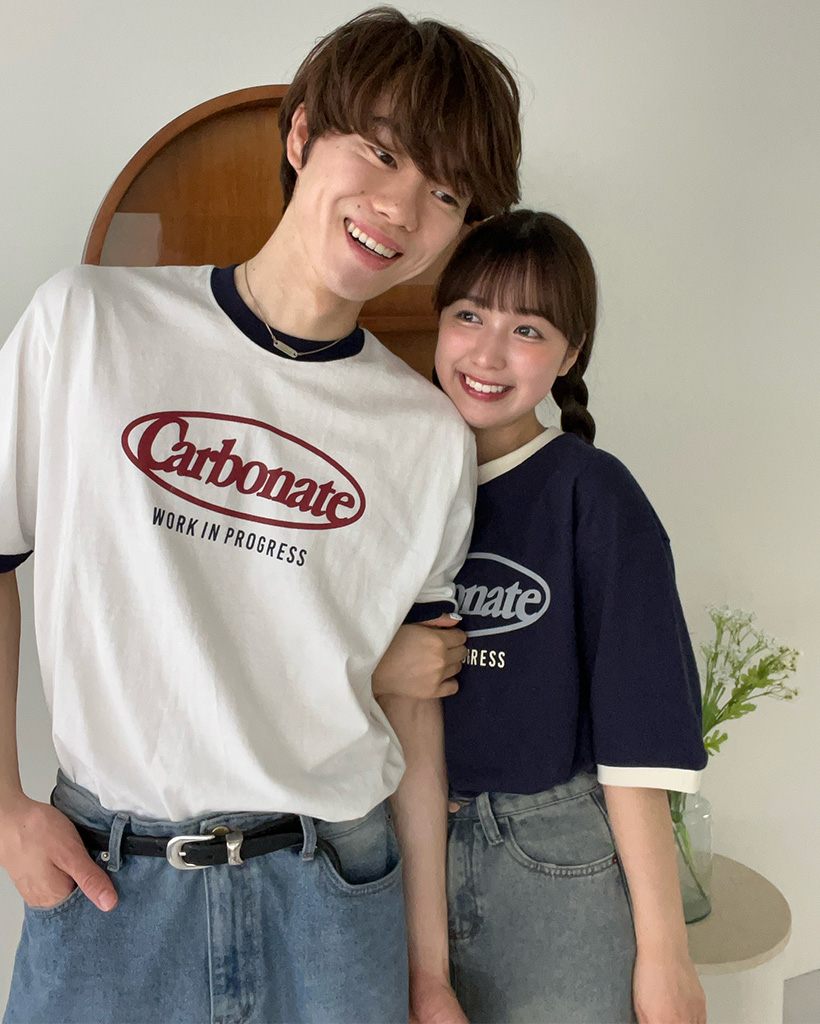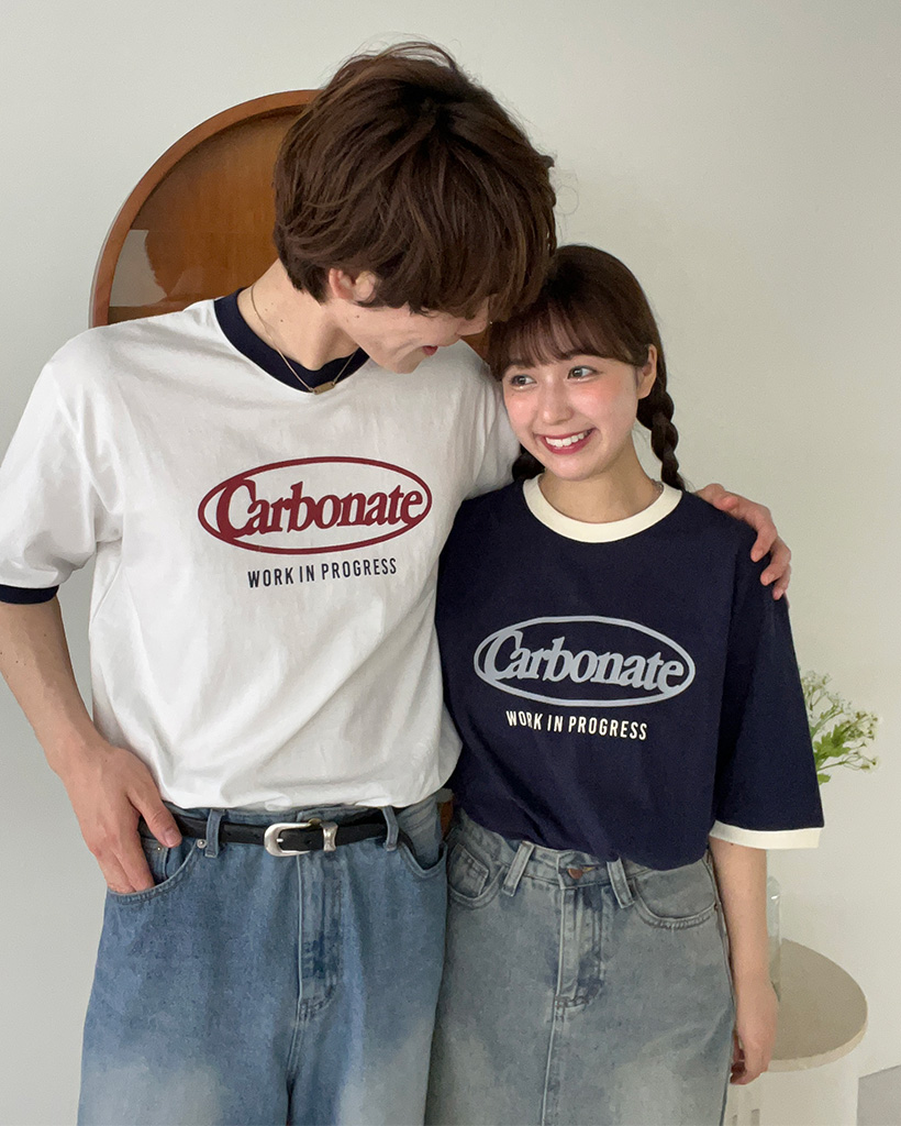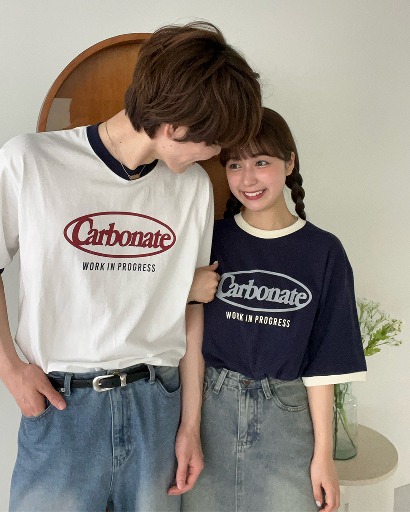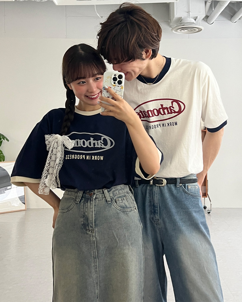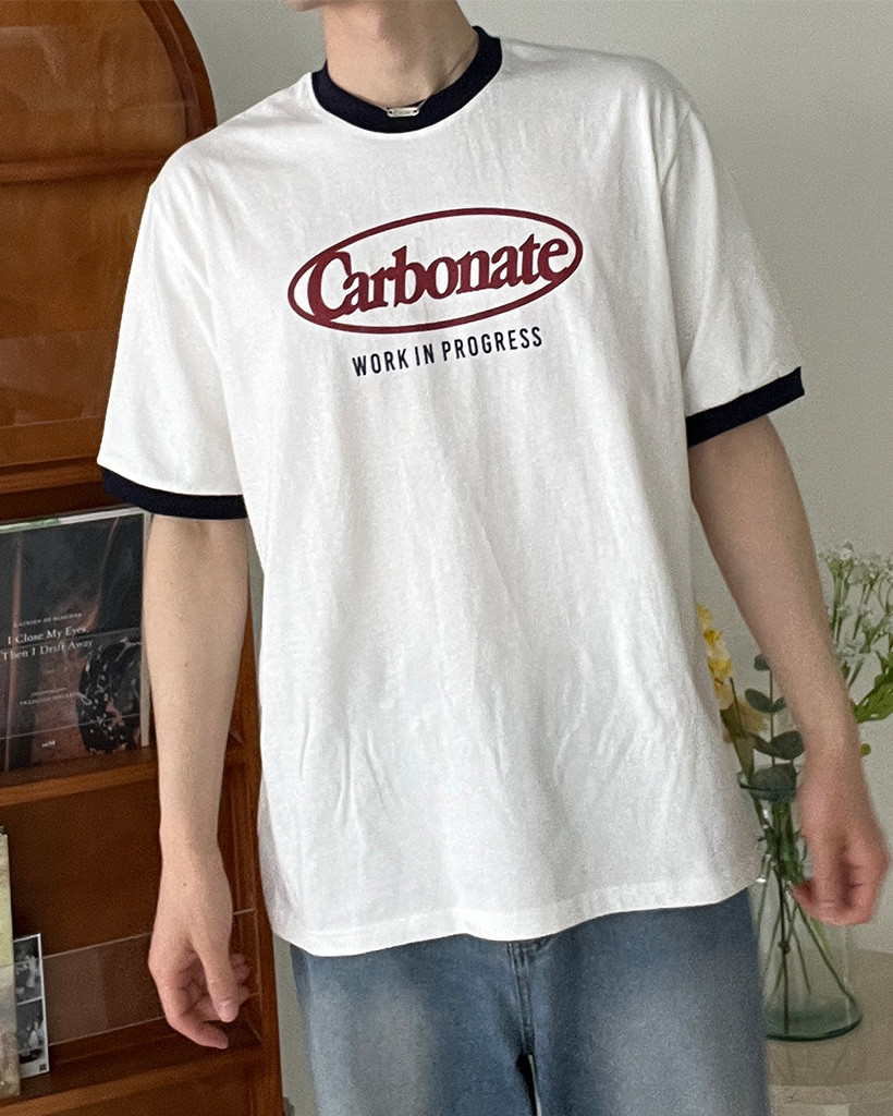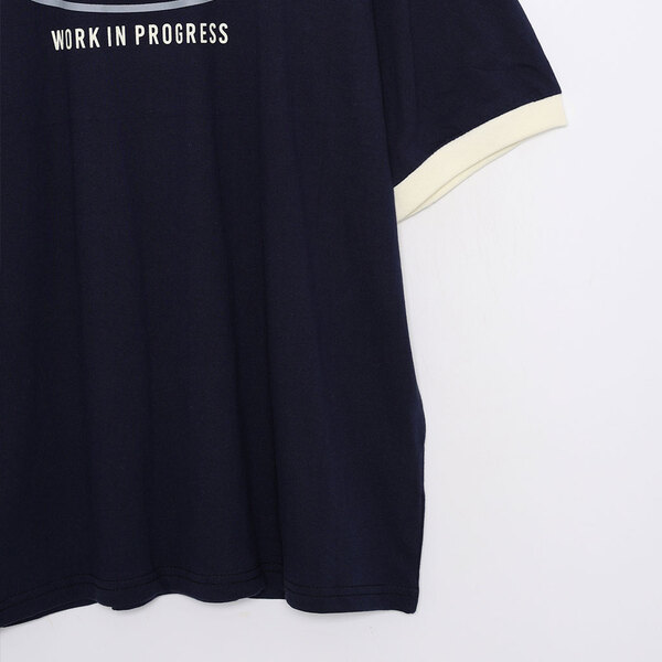 (ユニセックス)プリントリンガーバイカラー半袖Tシャツ