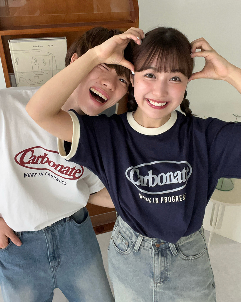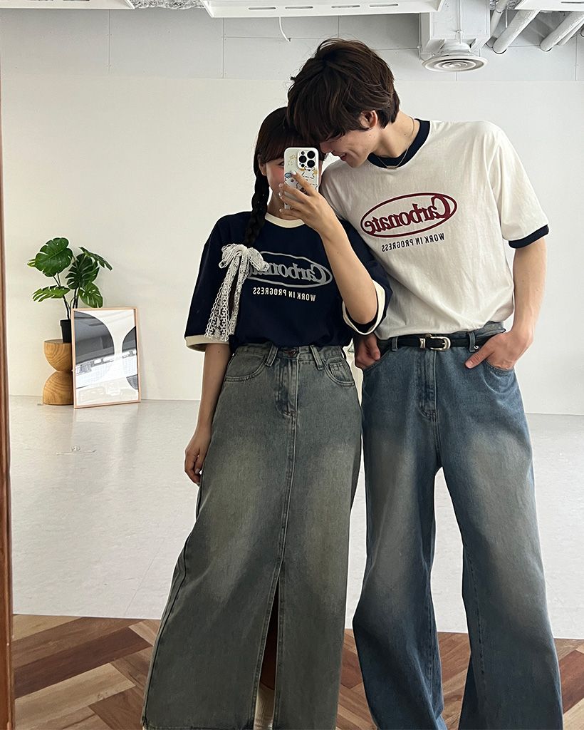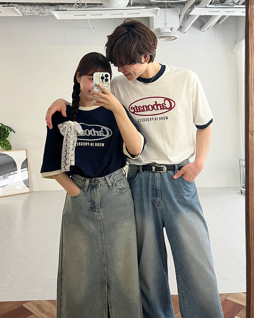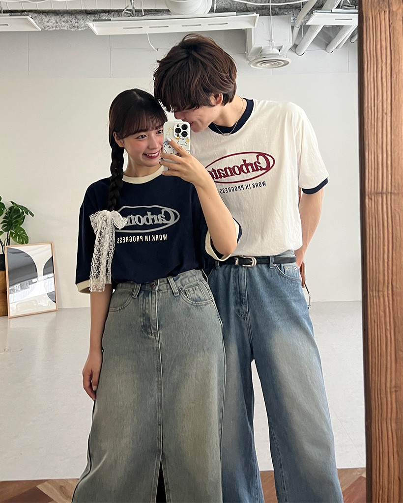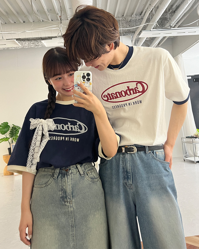 (ユニセックス)プリントリンガーバイカラー半袖Tシャツ