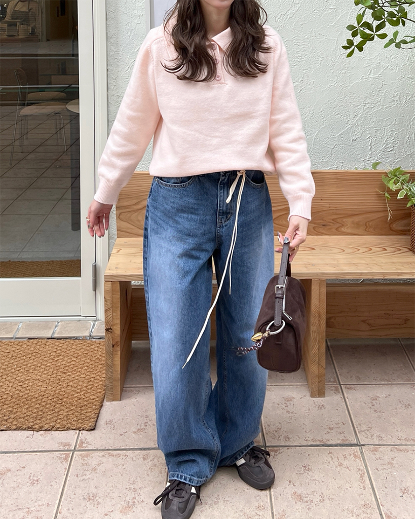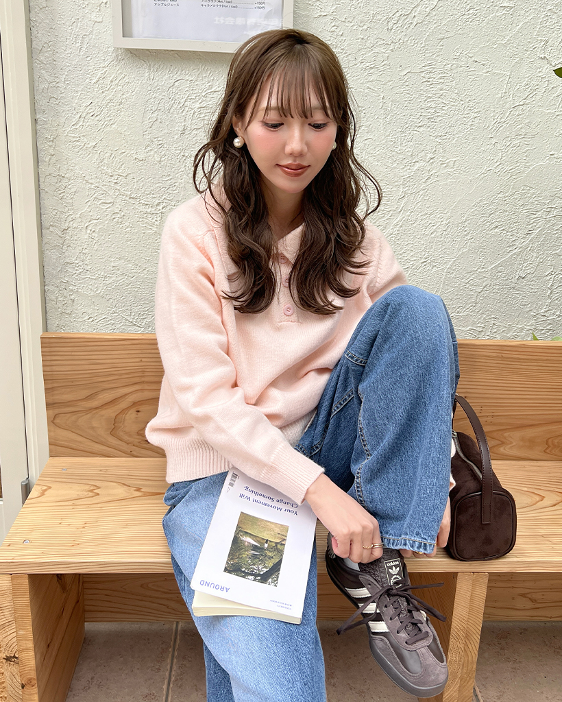 ベーシック襟ハーフオープンニット