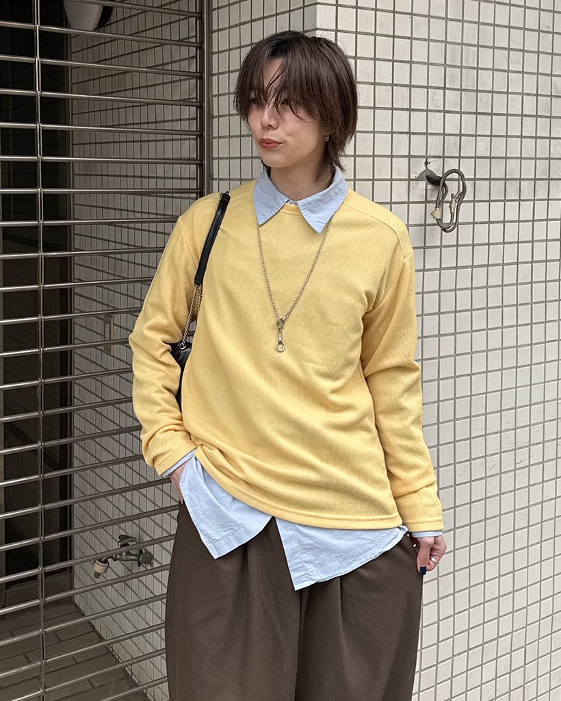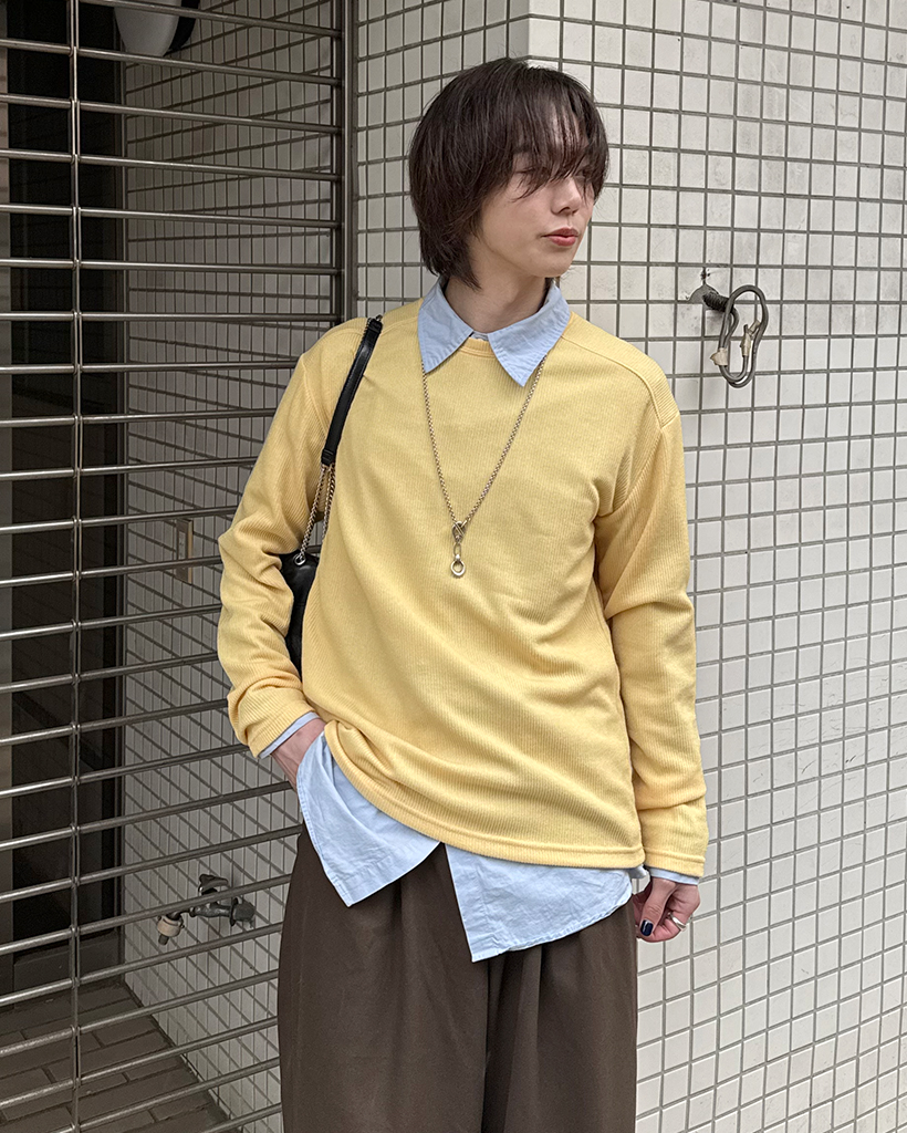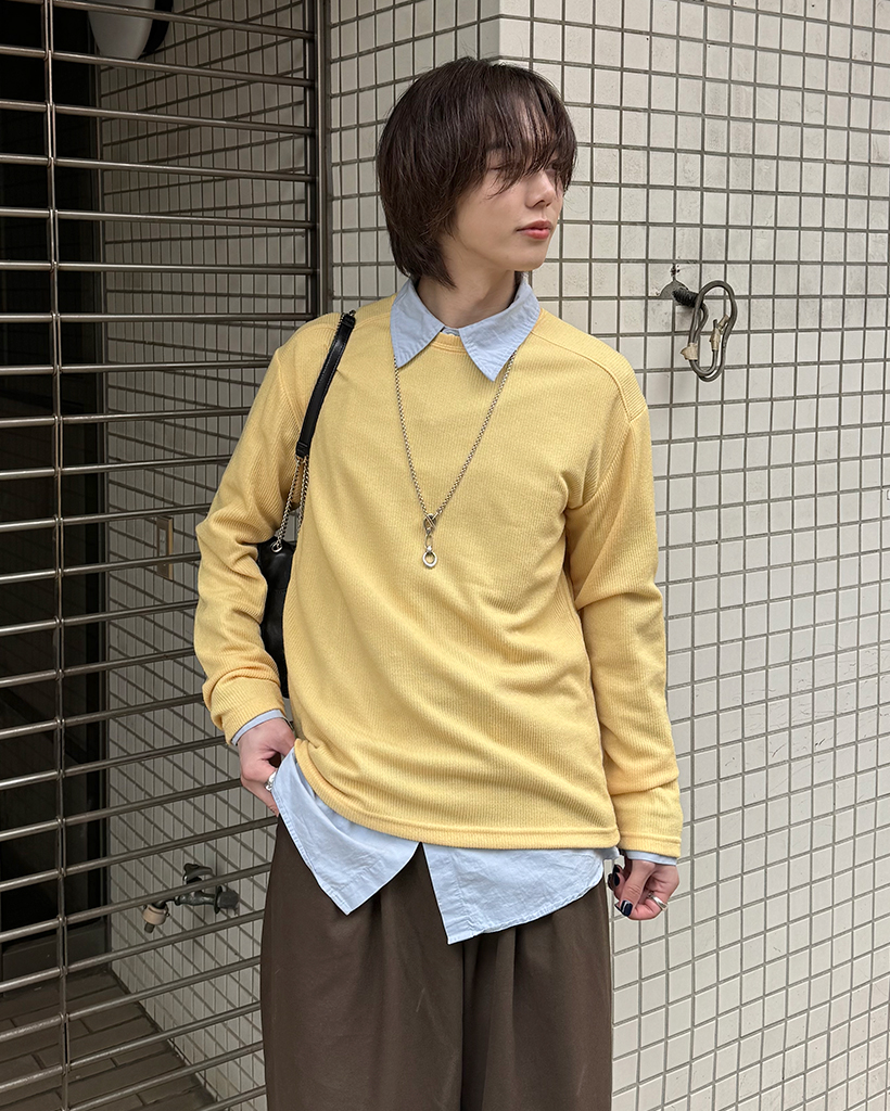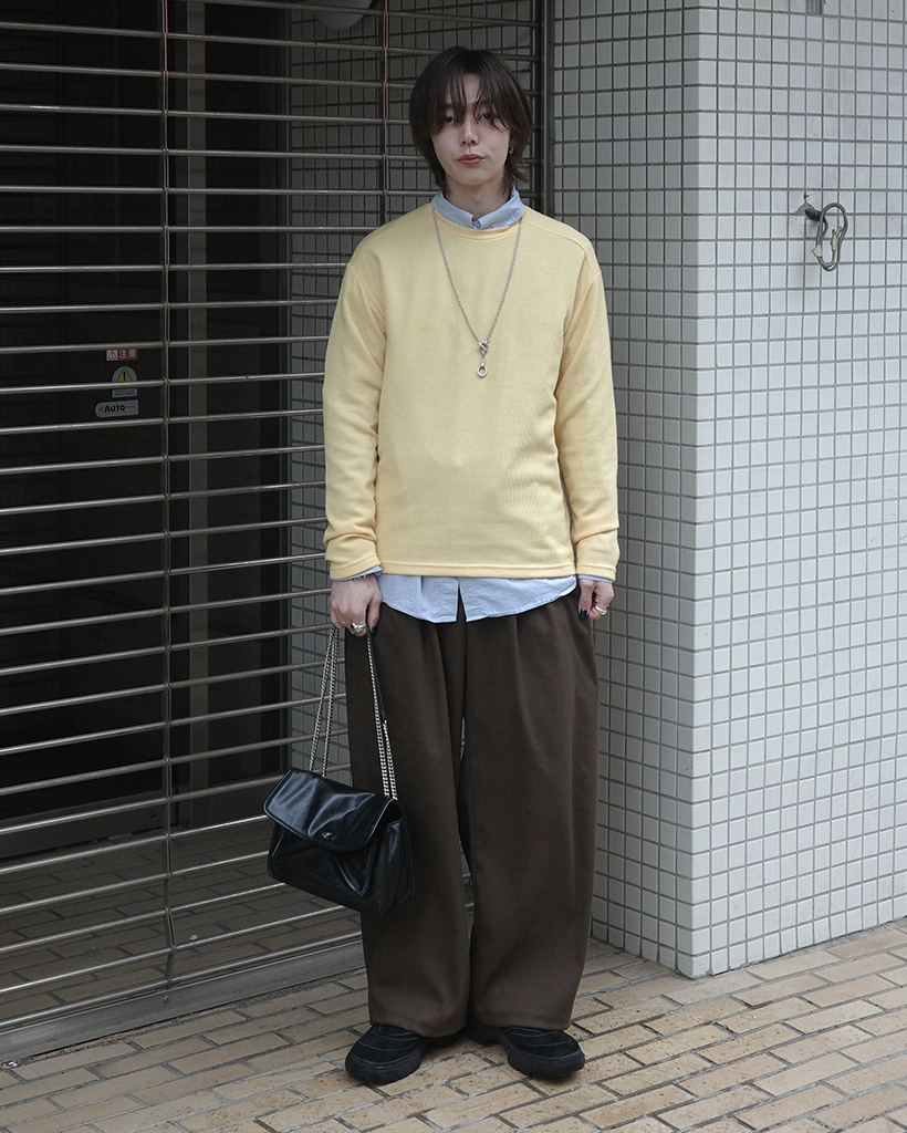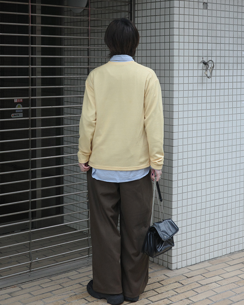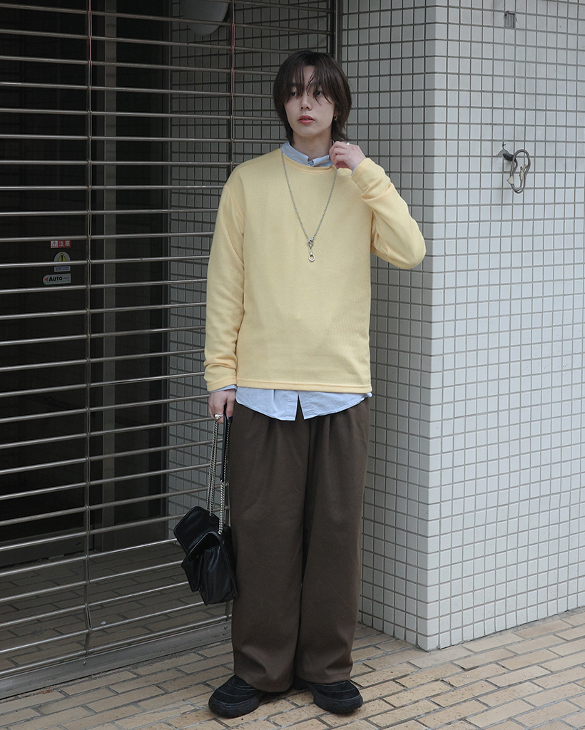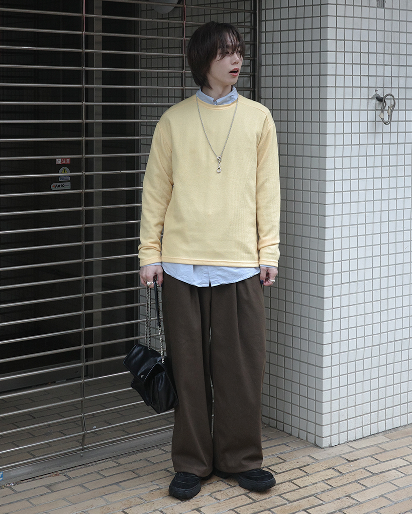 ワイドショルダーラウンドネックニット