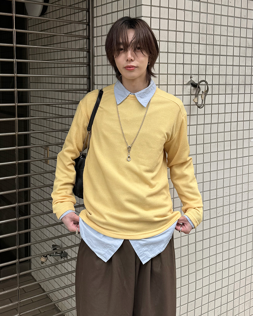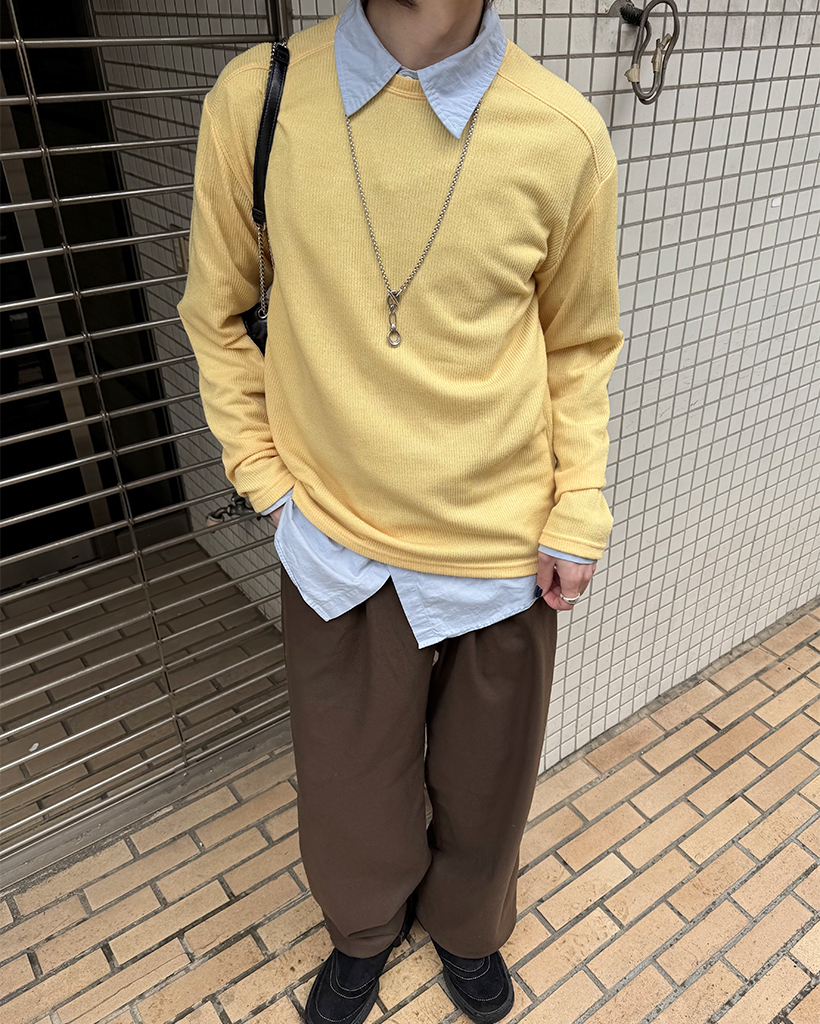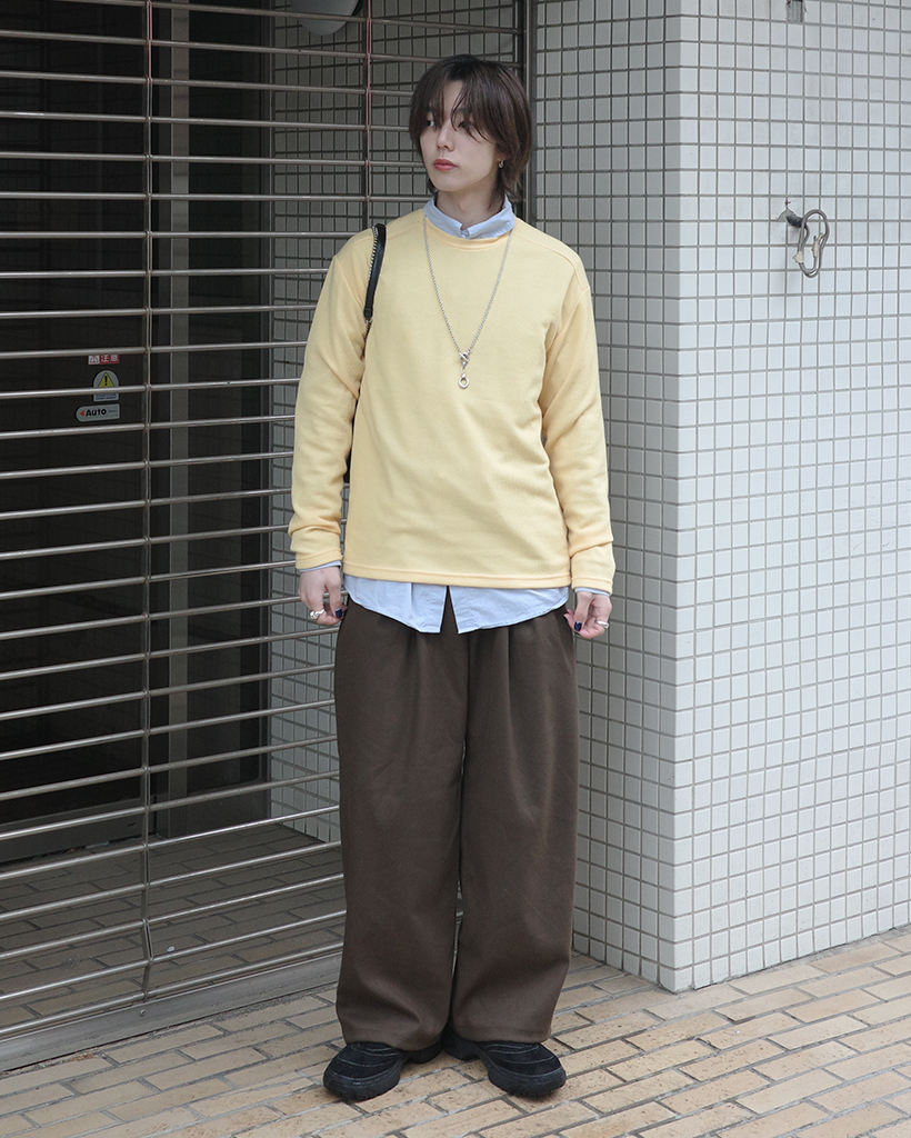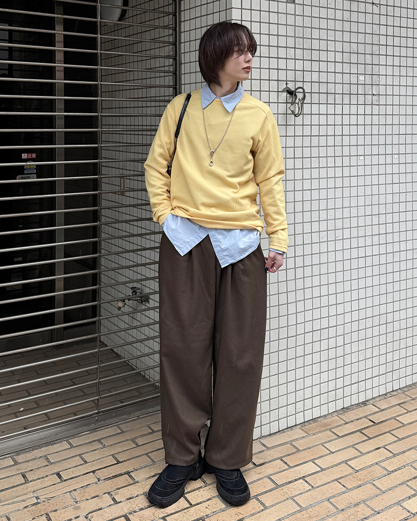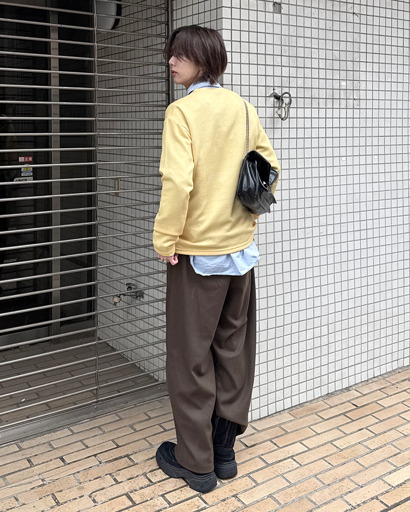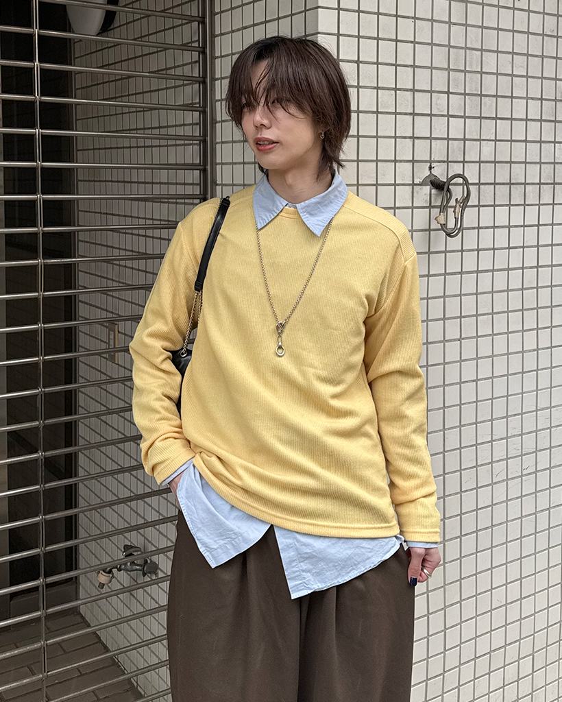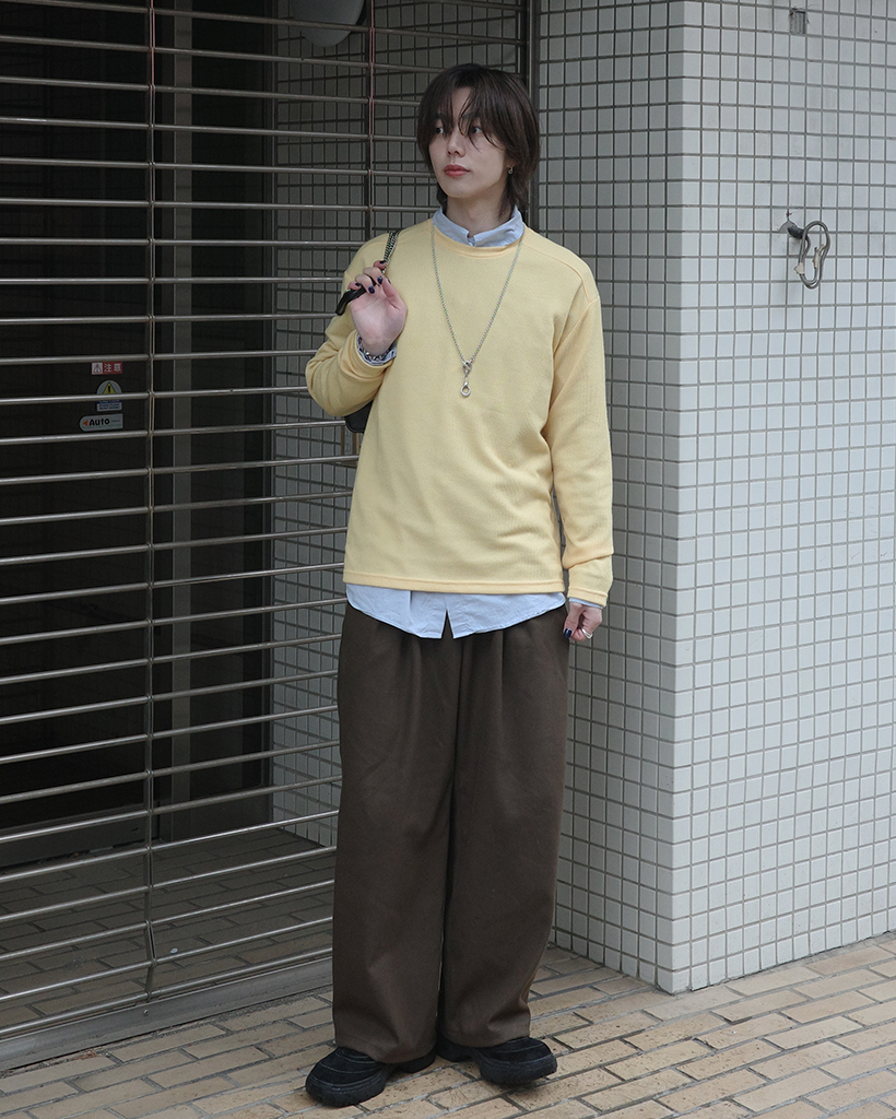 ワイドショルダーラウンドネックニット