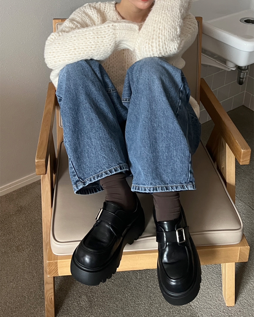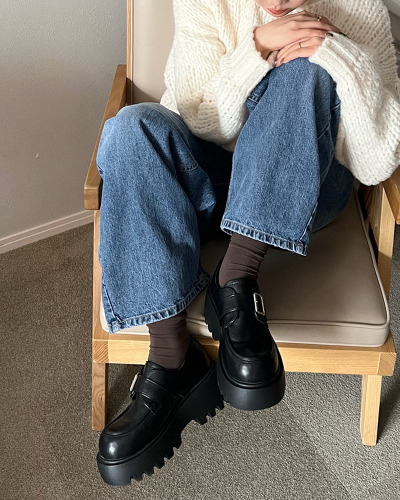バックルプラットフォームローファー