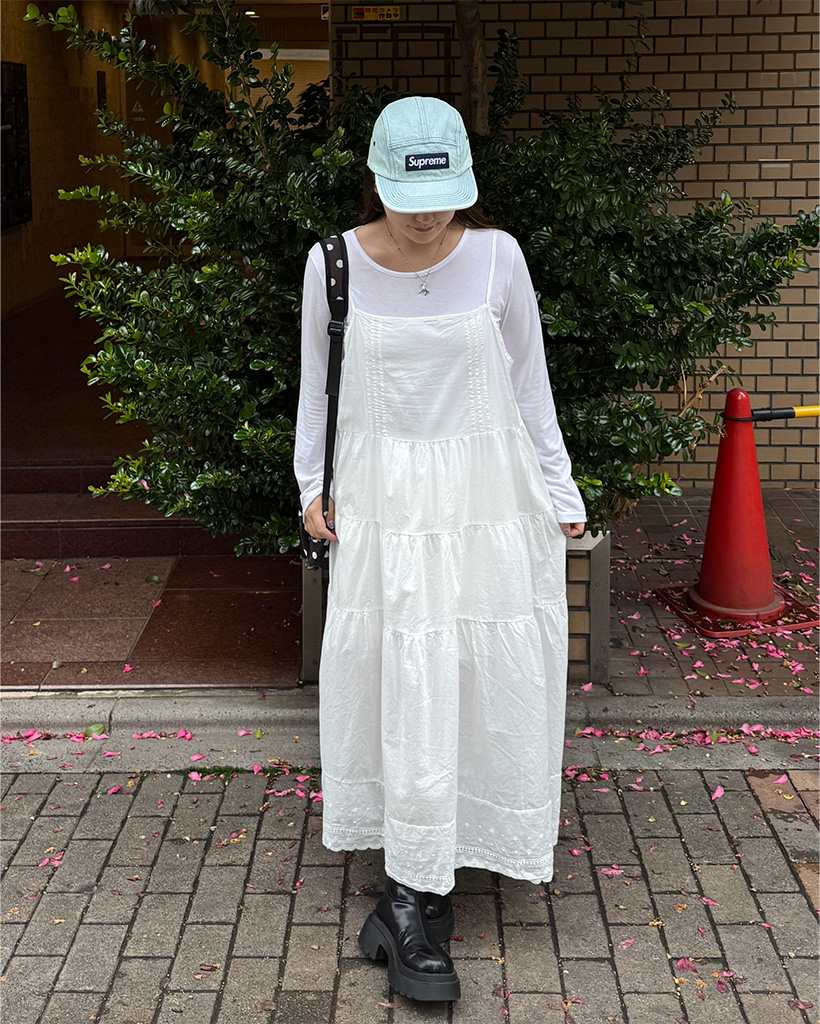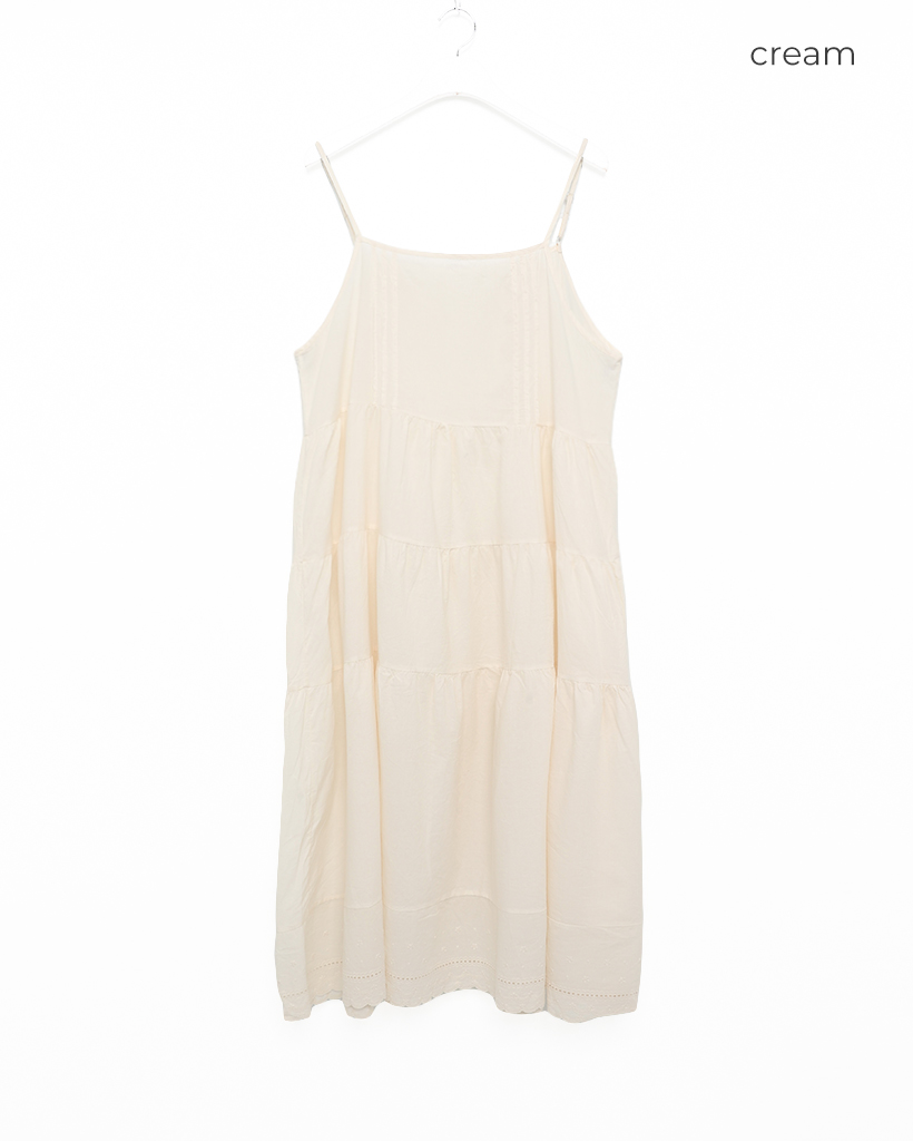 フラワーパンチングレースヘムキャミワンピース